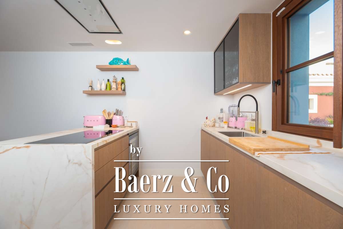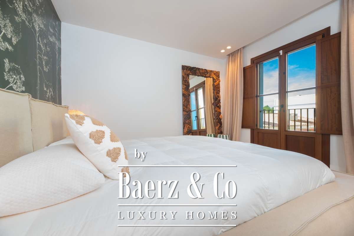 Furthermore, the property includes a private elevator, underfloor heating, individually controlled air conditioning in every room, a guest toilet and a practical locker room for additional storage. Two underground parking spaces complete the comfort of this home. Everything is finished with premium materials, from flooring to lighting, giving this townhouse exceptional quality and style. The furniture is not included in the sale price, but can be purchased optionally.The Outdoor AreasThe outdoor areas of this townhouse are a true extension of the indoor living space. The rooftop terrace is a real showpiece, featuring a private swimming pool and panoramic views over the charming village – the perfect spot to relax or enjoy atmospheric evenings under the stars. In addition, the spacious terrace invites you to enjoy long summer evenings surrounded by the tranquillity of the garden. With its modern architecture, sustainable installations such as a heat pump, and the unique combination of privacy, comfort and location, this townhouse is a rare gem in the heart of Santa Gertrudis. A place where modern living and authentic island charm come together seamlessly.