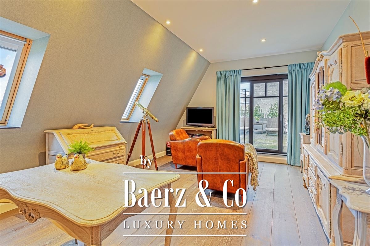 This duplex apartment Schilde stands quietly just outside the town center, situated in Zandhoven yet easily accessible from Schilde, and offers sweeping, uninterrupted vistas over the Albertkanaal. The property blends understated design with tailored comforts across its 364m² living area. On arrival, a landscaped front garden leads you to multiple parking options, including a garage with automated entry, carport, and a extended basement of 182m². The private entrance hall, accessible via lift or stairs, introduces a thoughtfully arranged interior highlighted by oak and natural stone finishes.