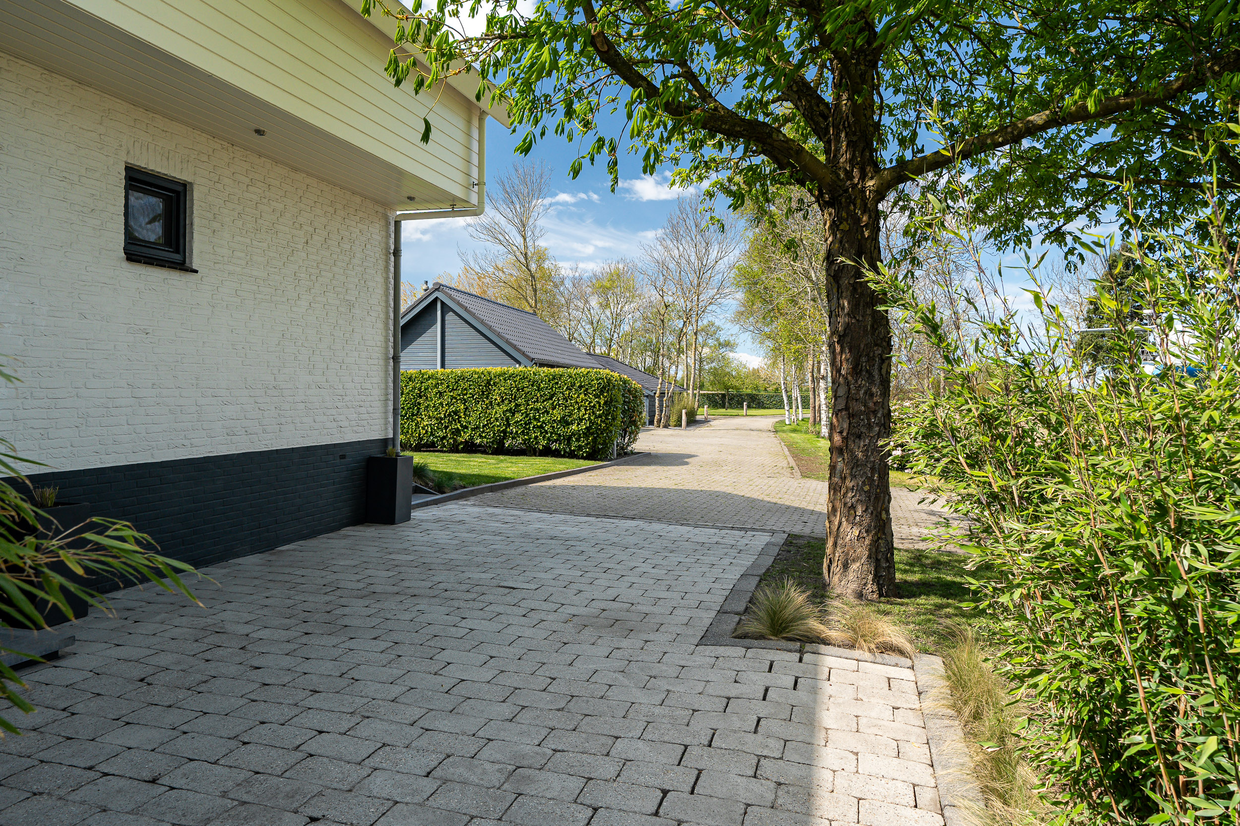In a prime location near the IJsselmeer, adjacent to a marina with direct access to all waterways in Friesland, this villa was completely renovated in 2004 and is situated on a spacious, fenced plot with full privacy and stunning Frisian panoramas. The tranquility, greenery, water, ever-changing skies, and sense of freedom are the defining features of this home. This well-insulated villa of 245m² is designed for lifelong living, featuring a spacious living area, four bedrooms, two bathrooms, a luxurious kitchen with utility room, and a beautiful veranda with scenic views. The double garage with an upper floor offers an abundance of space and possibilities. The fully insulated home office, studio, or guesthouse with breathtaking views of nature serves as a true source of inspiration. The architecturally designed garden, maintained with a robotic lawn mower, is easy to care for and playfully arranged with various fruit trees, hedges, and reed-lined waterways. The stylishly paved driveway and entrance gate highlight the transition to the lush green garden that remains vibrant year-round.