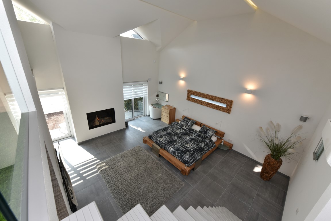 De 2e en 3e slaapkamer bevinden zich aan de achterzijde, direct boven de living. De beide slaapkamers hebben een volwaardige indeling waarbij de grote kamer beschikt over een complete badkamer en-suite en beide slaapkamers toegang hebben tot het balkon met zicht over de tuin en het zwembad. Mocht u meer slaapkamers wensen dan is een andere indeling vrij eenvoudig te realiseren en blijven de afmetingen per kamer nog steeds volwaardig.