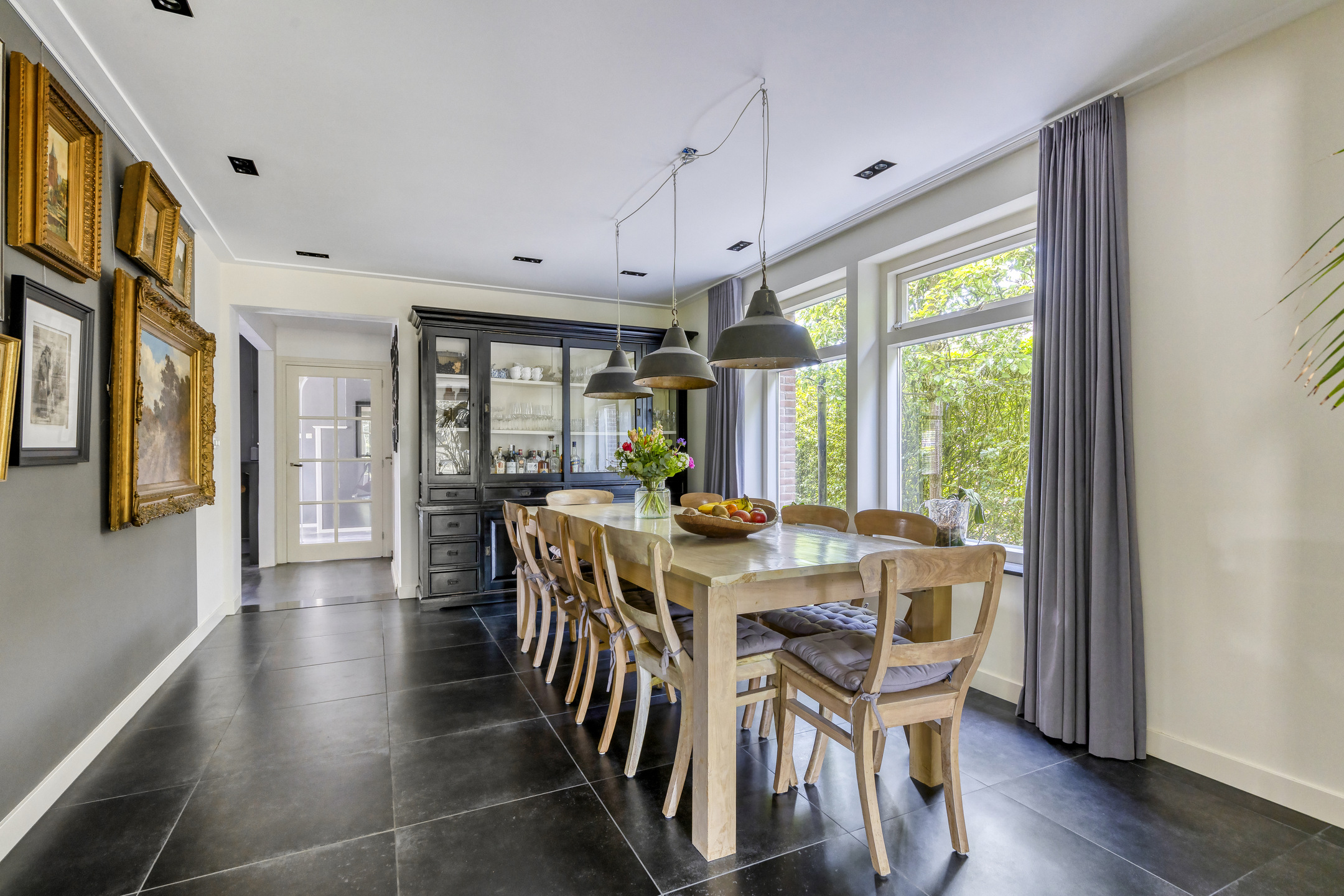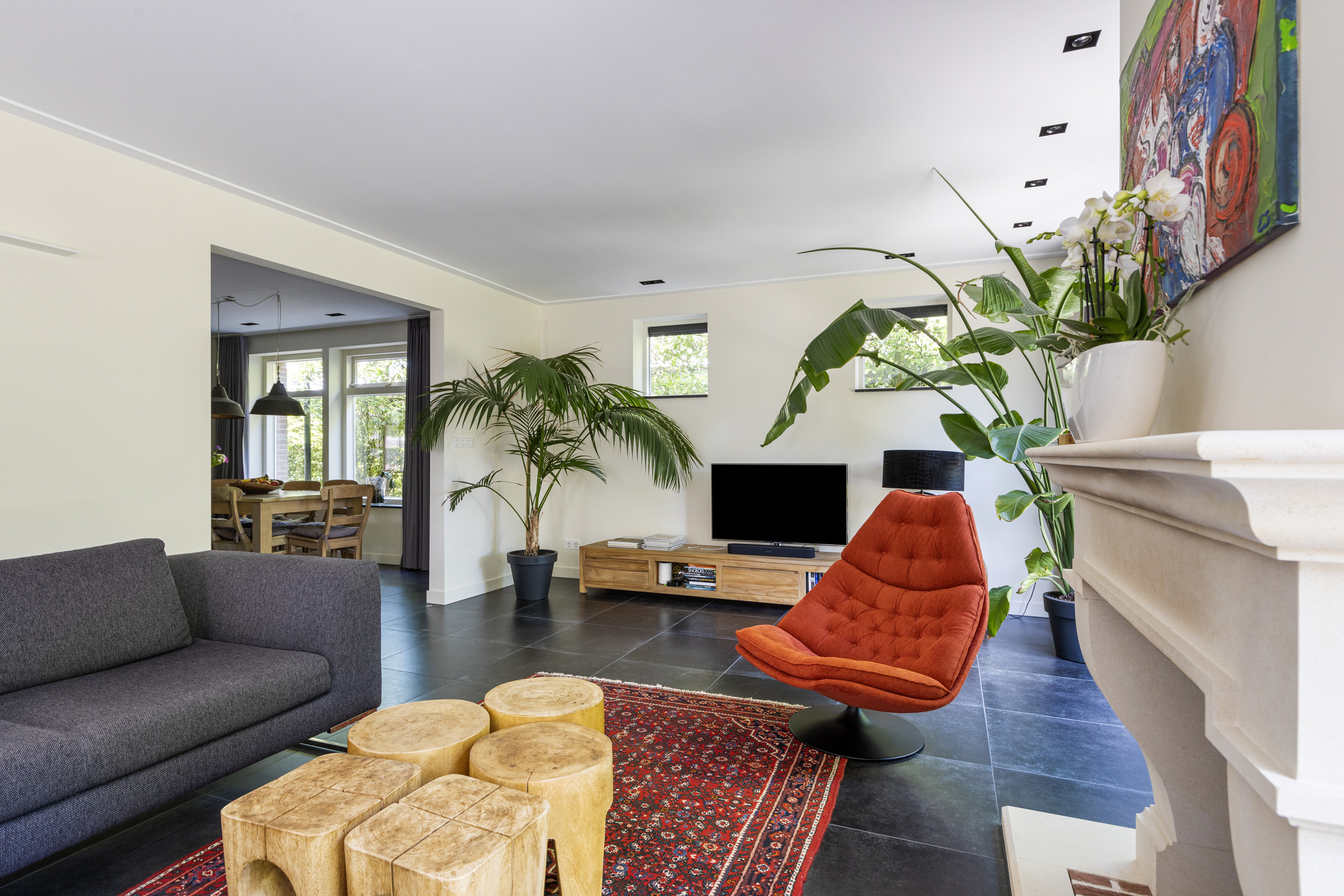 De royale en sfeervolle woonkamer bevindt zich aan de achterzijde met zicht op de tuin. Tevens bevindt zich op de begane grond ook een keuken en bijkeuken.