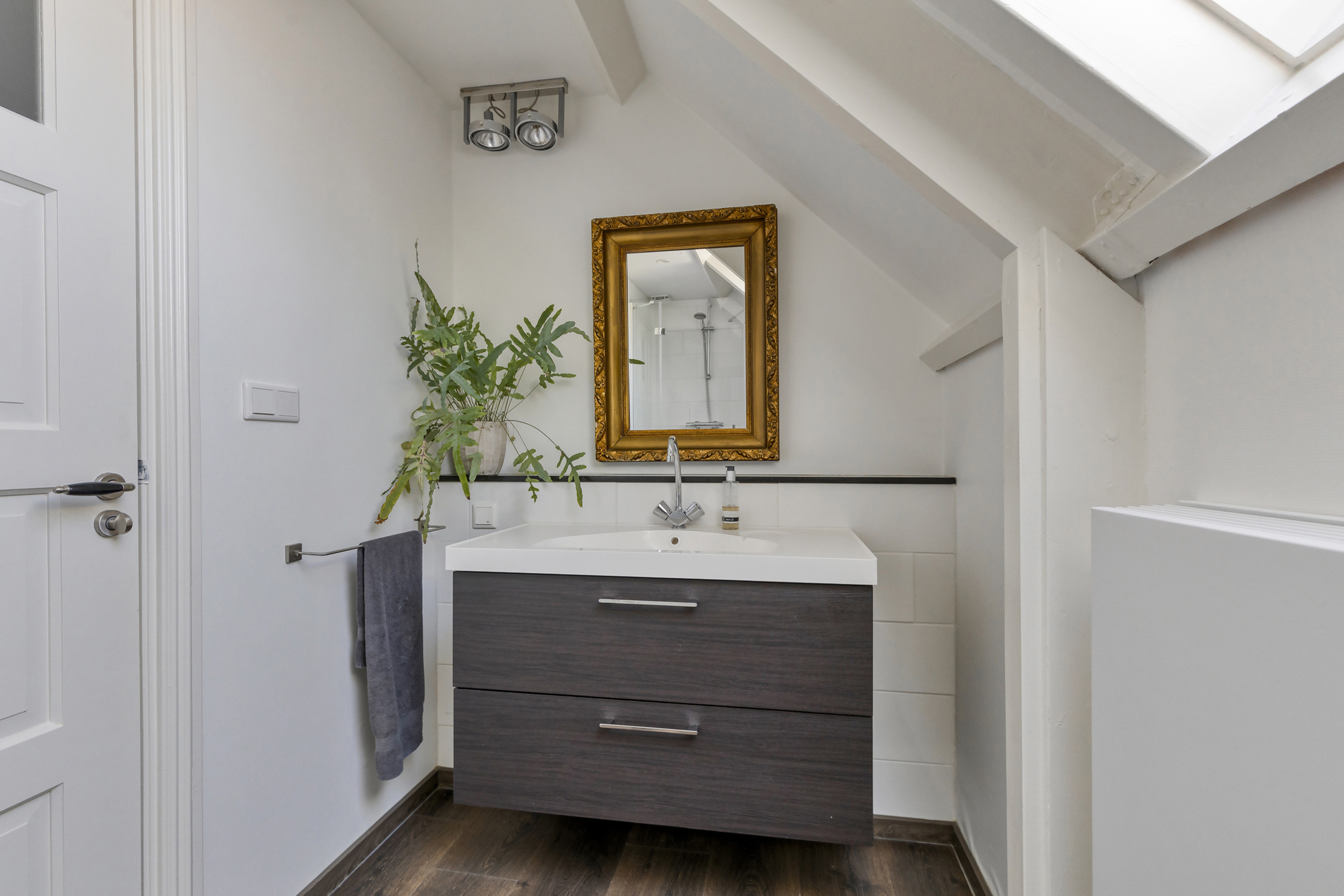 betegelde badkamer, voorzien van een douchecabine, badkamermeubel met een wastafel en mechanische ventilatie;
