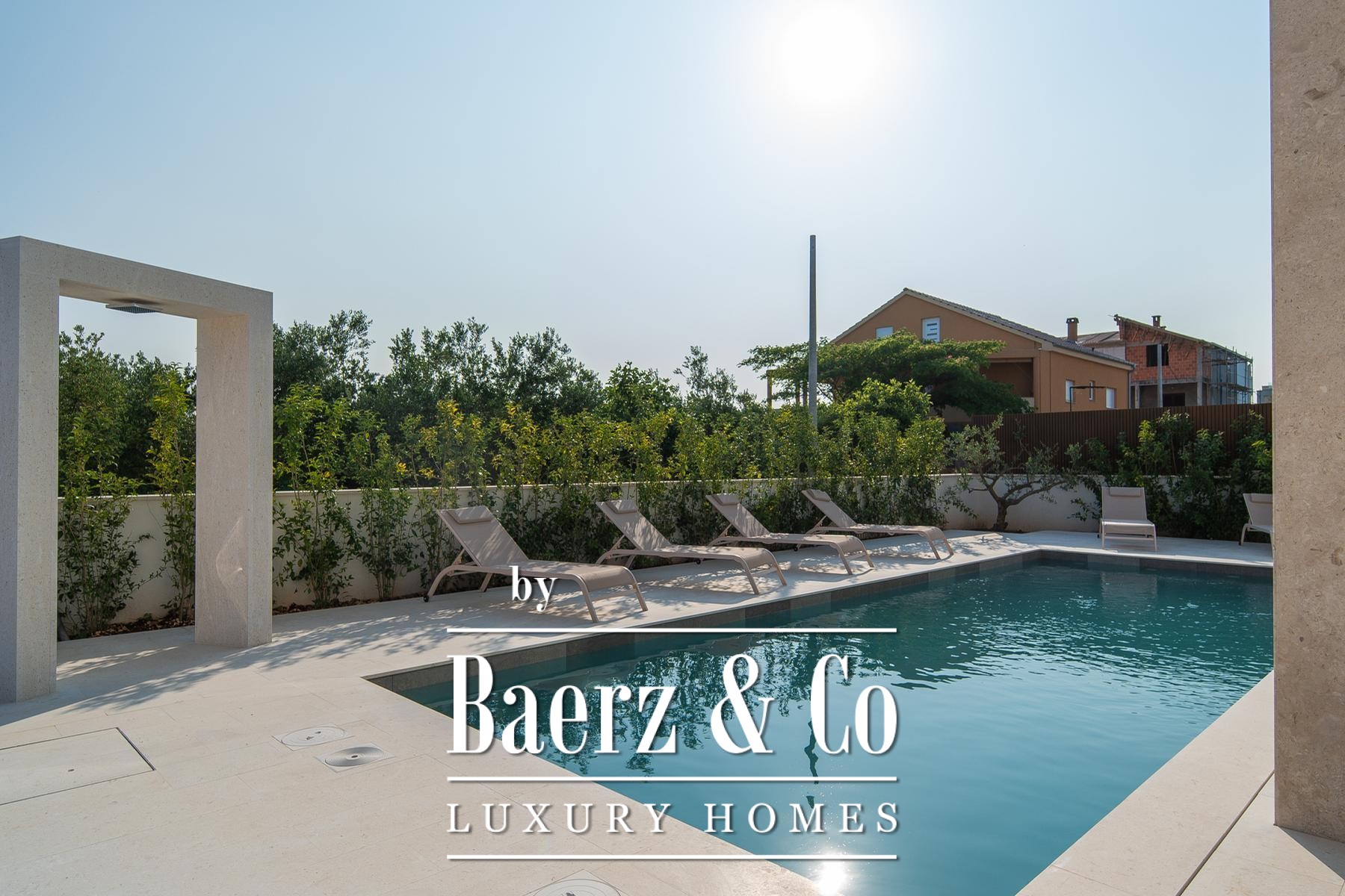 The generous 544 m² plot includes a private swimming pool, a focal point for leisure and entertaining. Located just 350 metres from the sea, this house stands in Turanj, a village poised between Zadar and Biograd na Moru, ideal for those valuing tranquility yet proximity to vibrant destinations. Completion is scheduled for spring 2025, making this property an appealing investment in the heart of Croatia's coastline.