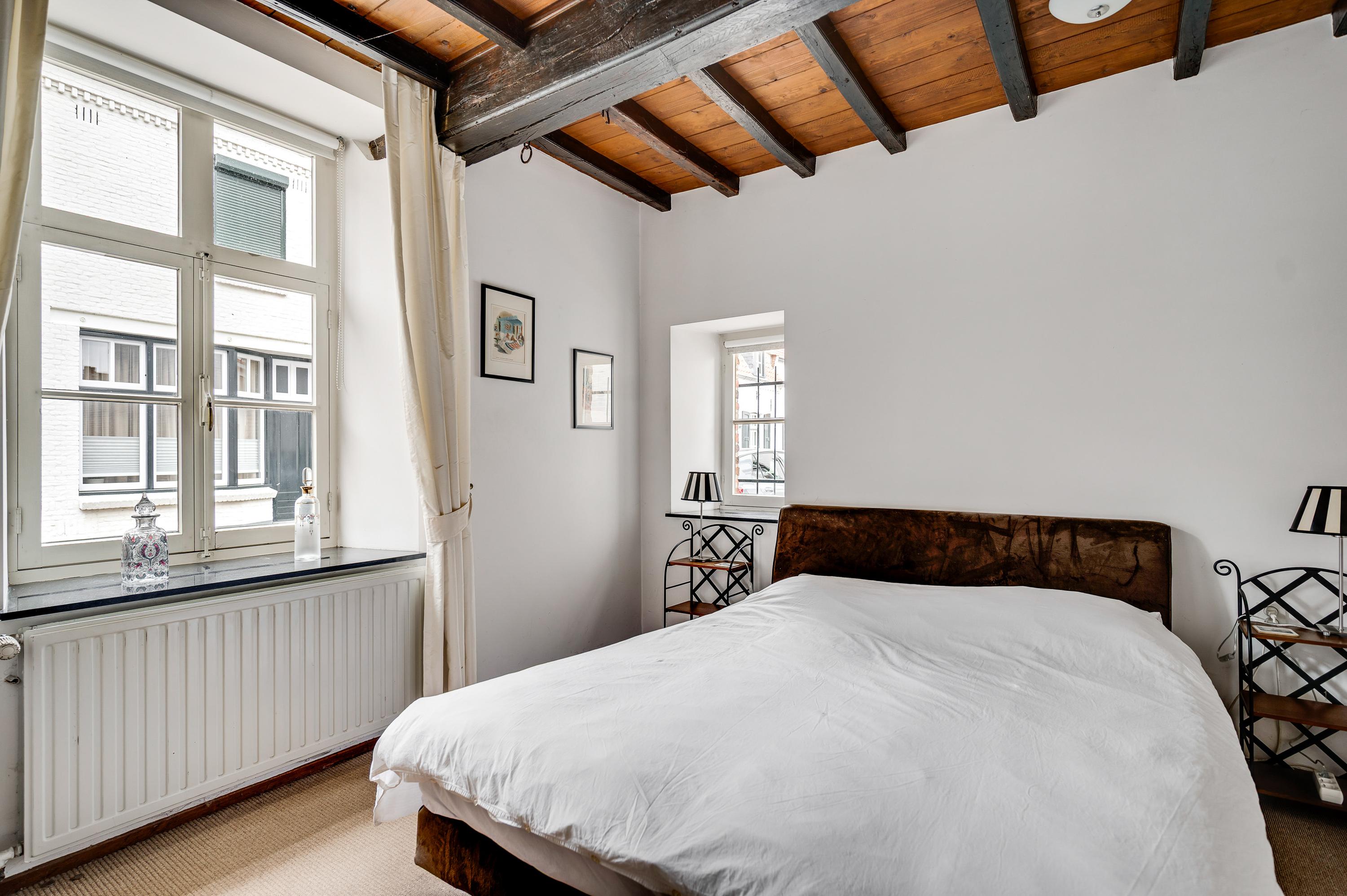 The garden seamlessly blends in with the house and offers plenty of privacy, despite its central location in the historic town center. The back garden is accessible via a private rear entrance and features several patios – one of which is covered – a lawn, and attractive flower beds.