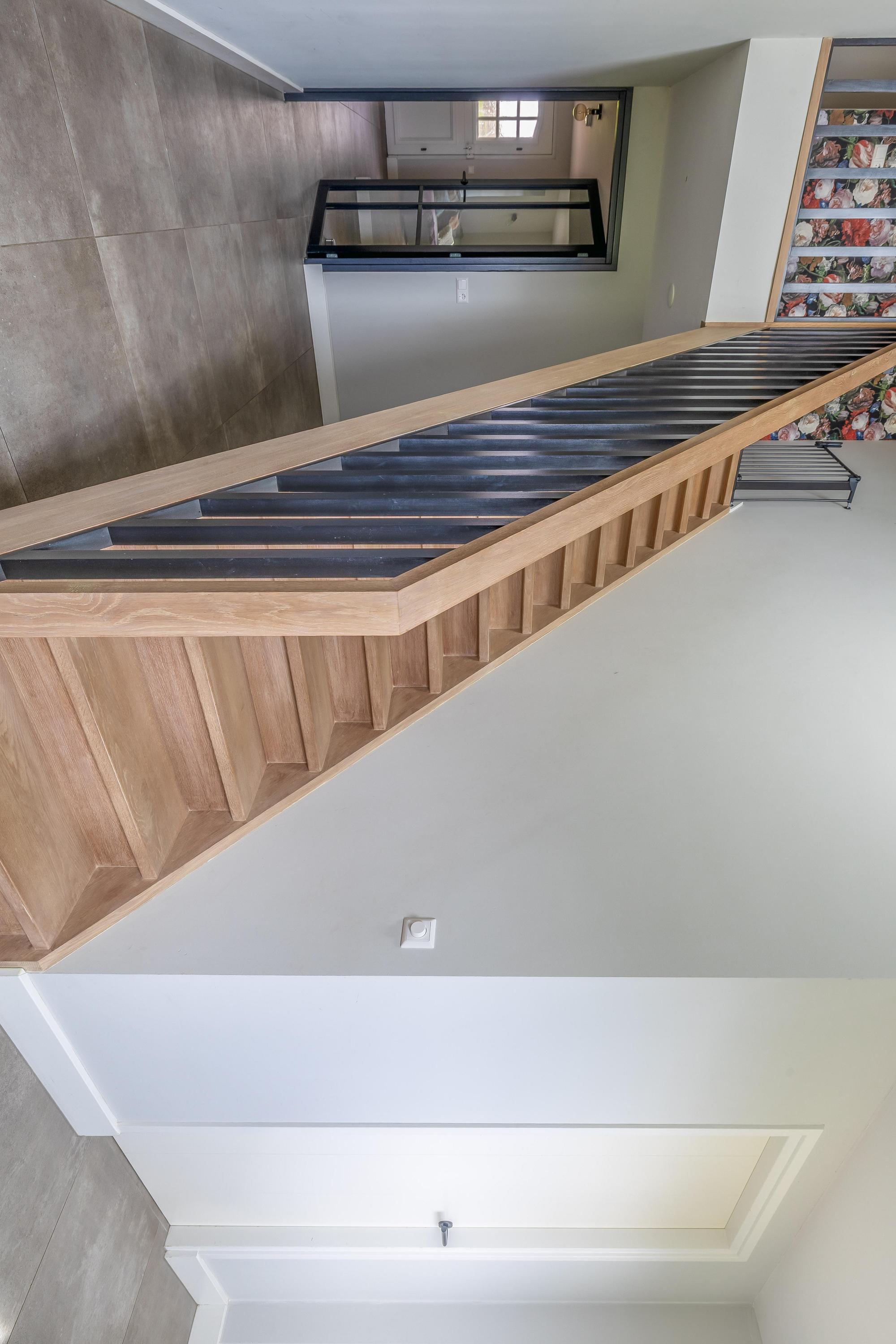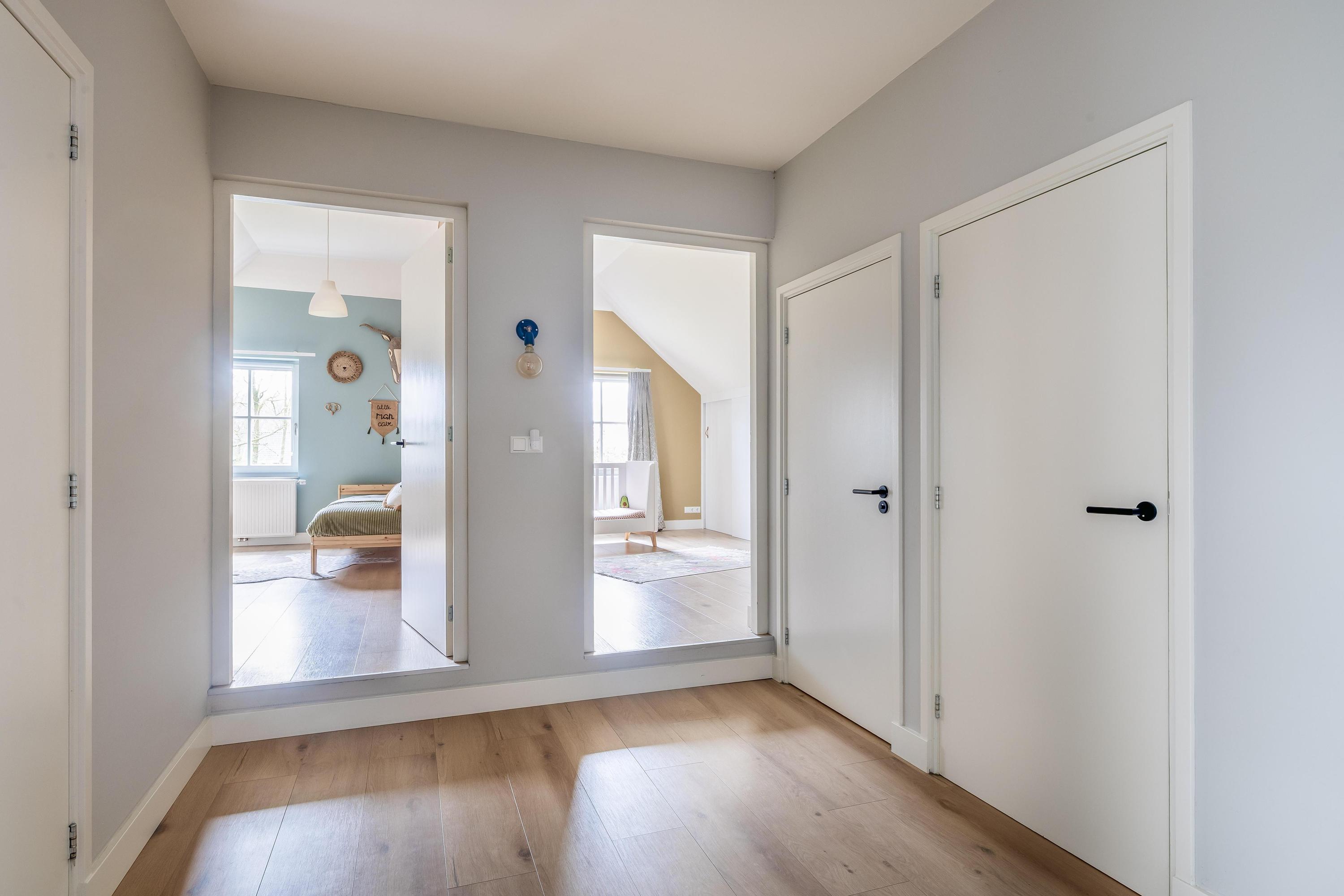 With a living area of 226 m², the property offers a comfortable and move-in ready living space. The living areas are spacious and light, flowing logically into one another. The layout is well thought-out, featuring, among other things, a kitchen-diner and a bedroom on the ground floor. Upstairs, there are three spacious bedrooms and a modern bathroom, where exposed timber structures contribute to the atmosphere and authentic character of the whole.