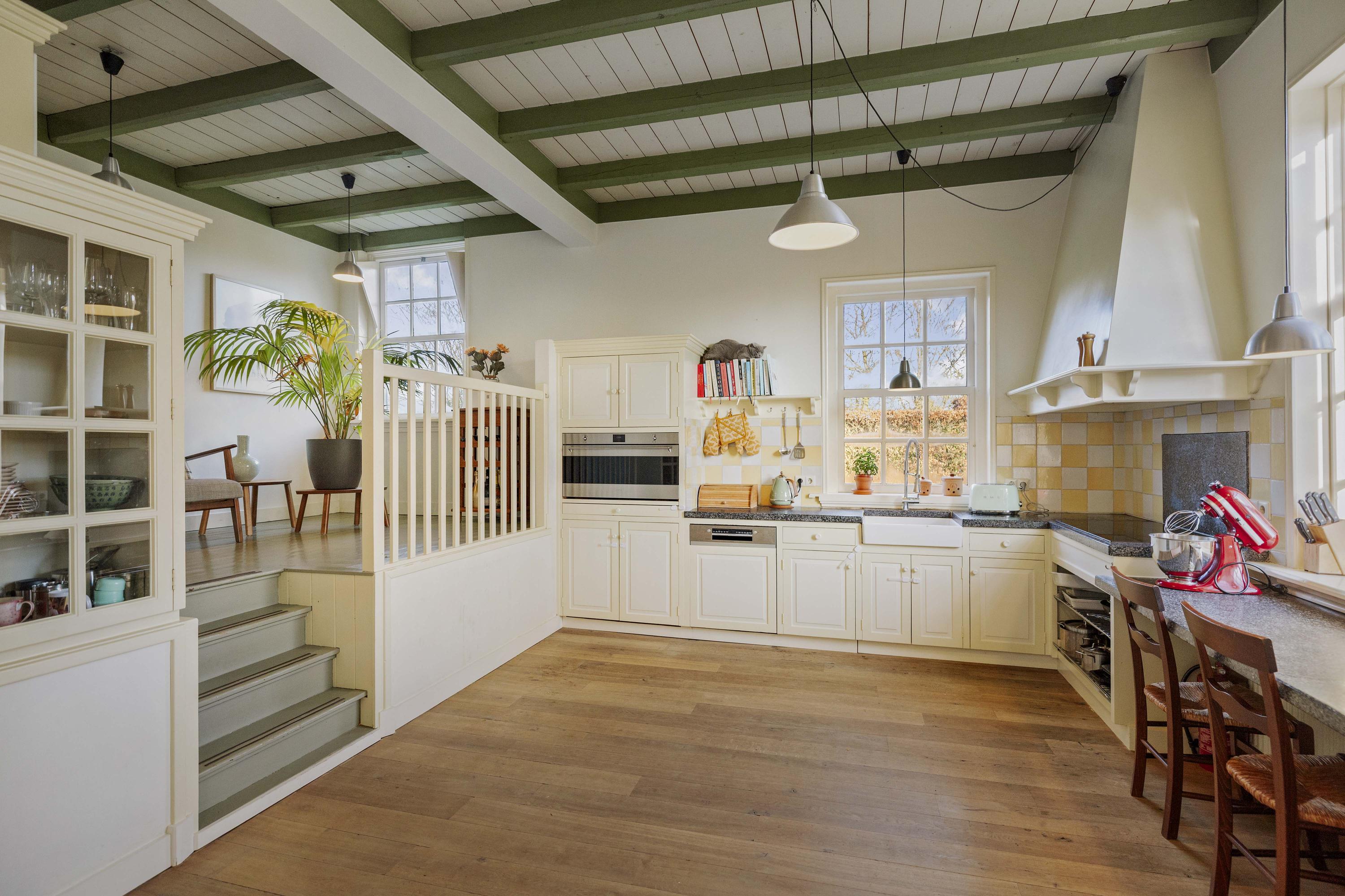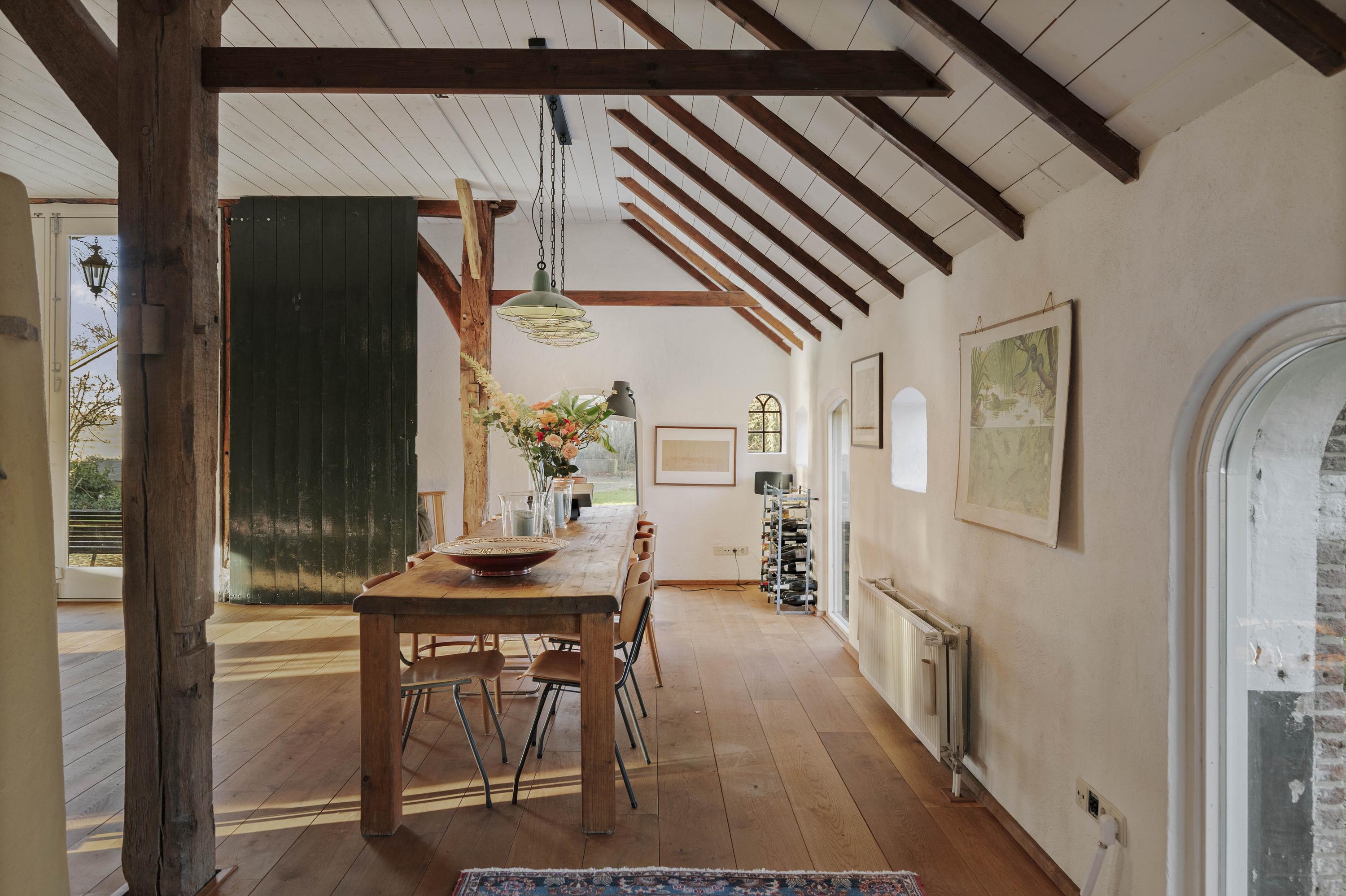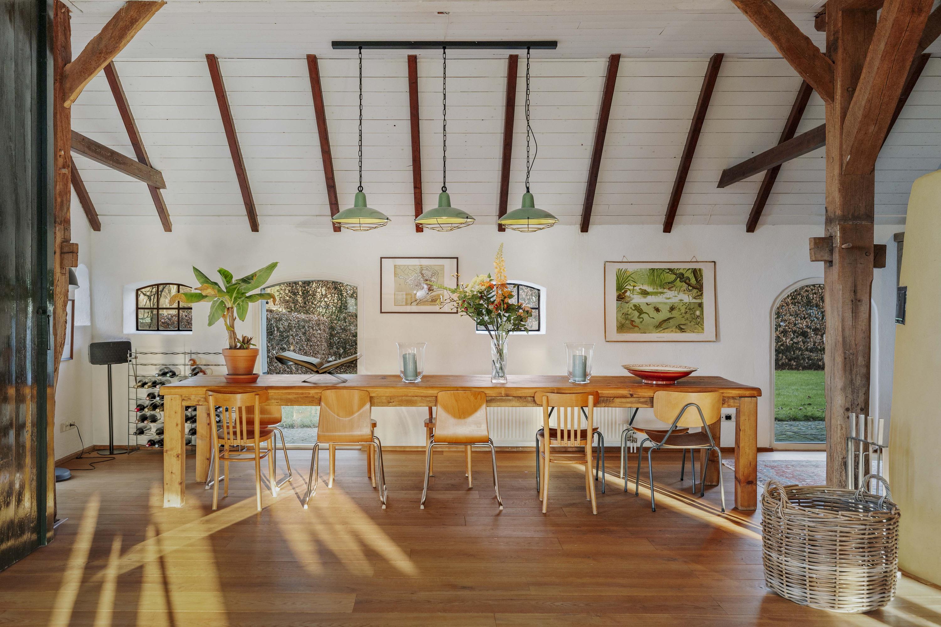 't Norde is as impressive as it is beautiful; a classic, voluminous hall house T-shaped farmhouse from 1863, surrounded by a delightful garden. The house has had several predecessors on this site, with the oldest mention dating back to 1476. The current house, designated a municipal monument by the municipality of Bronckhorst, has been extensively modernized over the past decade. The structure was brought into the 21st century under architectural supervision, with the addition of dormer windows and the transformation of the barn into spacious living space. And nothing beats space around you: this house has an abundance of it, with a living area of 407 m², five spacious bedrooms, and three bathrooms, set on a plot of 2,877 m².