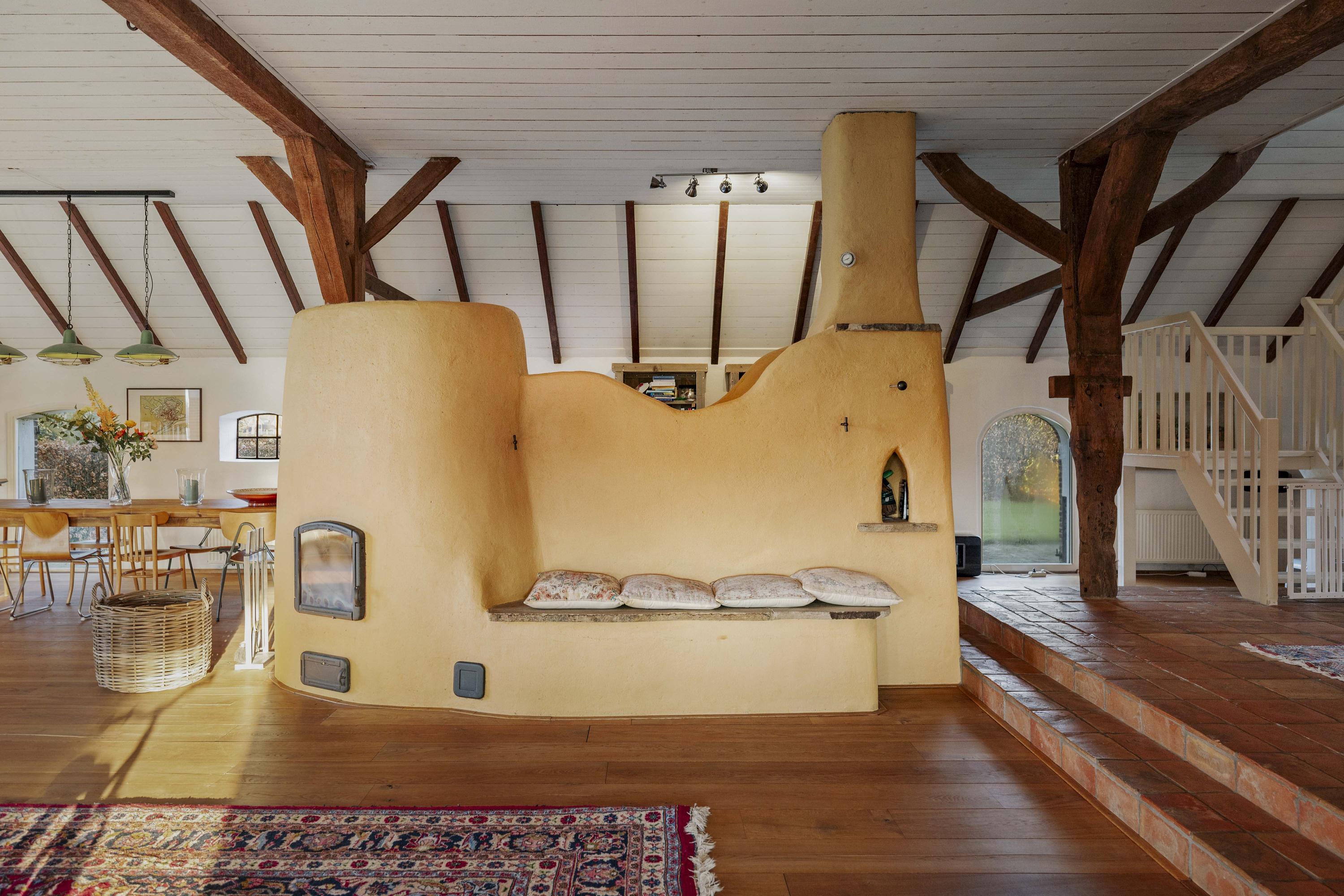 Heating: Underfloor heating, radiators, and wood-burning clay stove