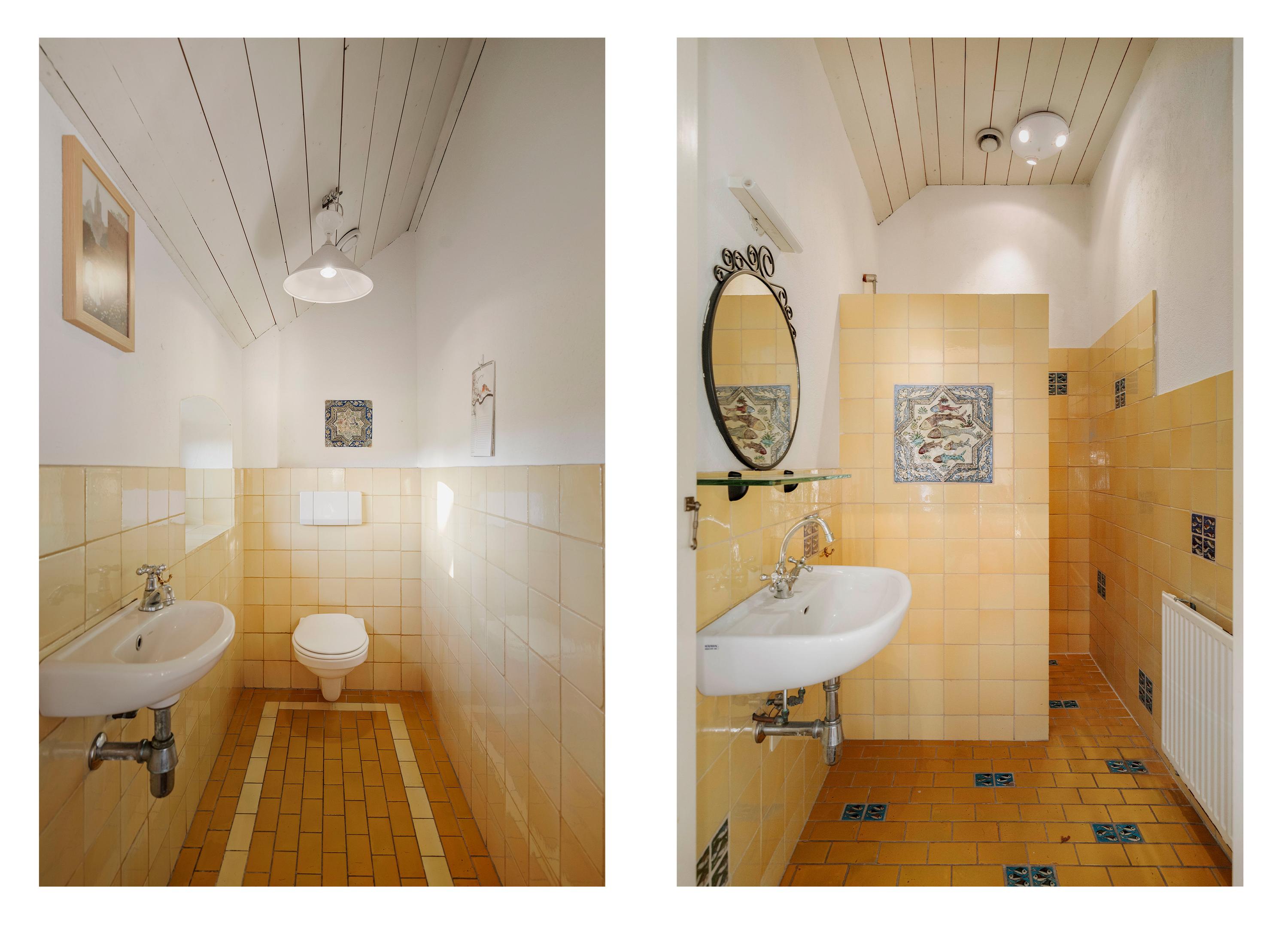 Five spacious bedrooms are located off the spacious and sunny landing, which has red oak plank flooring. The master bedroom has its own bathroom with a walk-in shower, toilet, and sink. The front part of the house also houses the laundry/utility room, with connections for the washing machine and dryer, the boiler and buffer tank, and a 120-liter boiler, as well as a practical storage room. Here you will also find the second bathroom, with double sinks, a spacious walk-in shower, and a toilet.