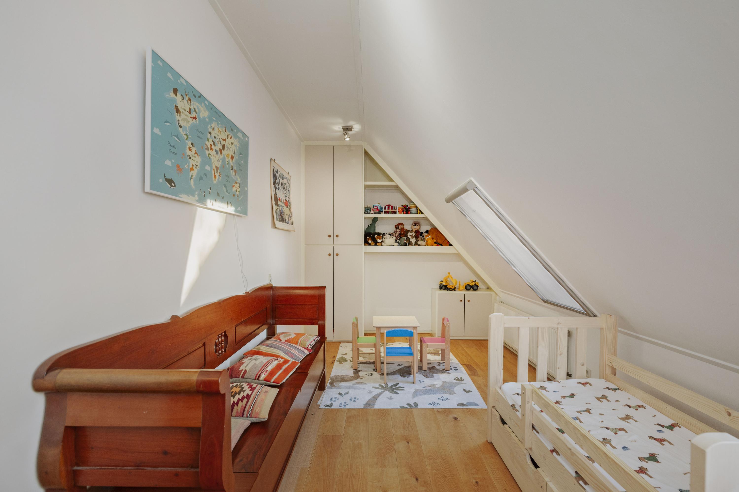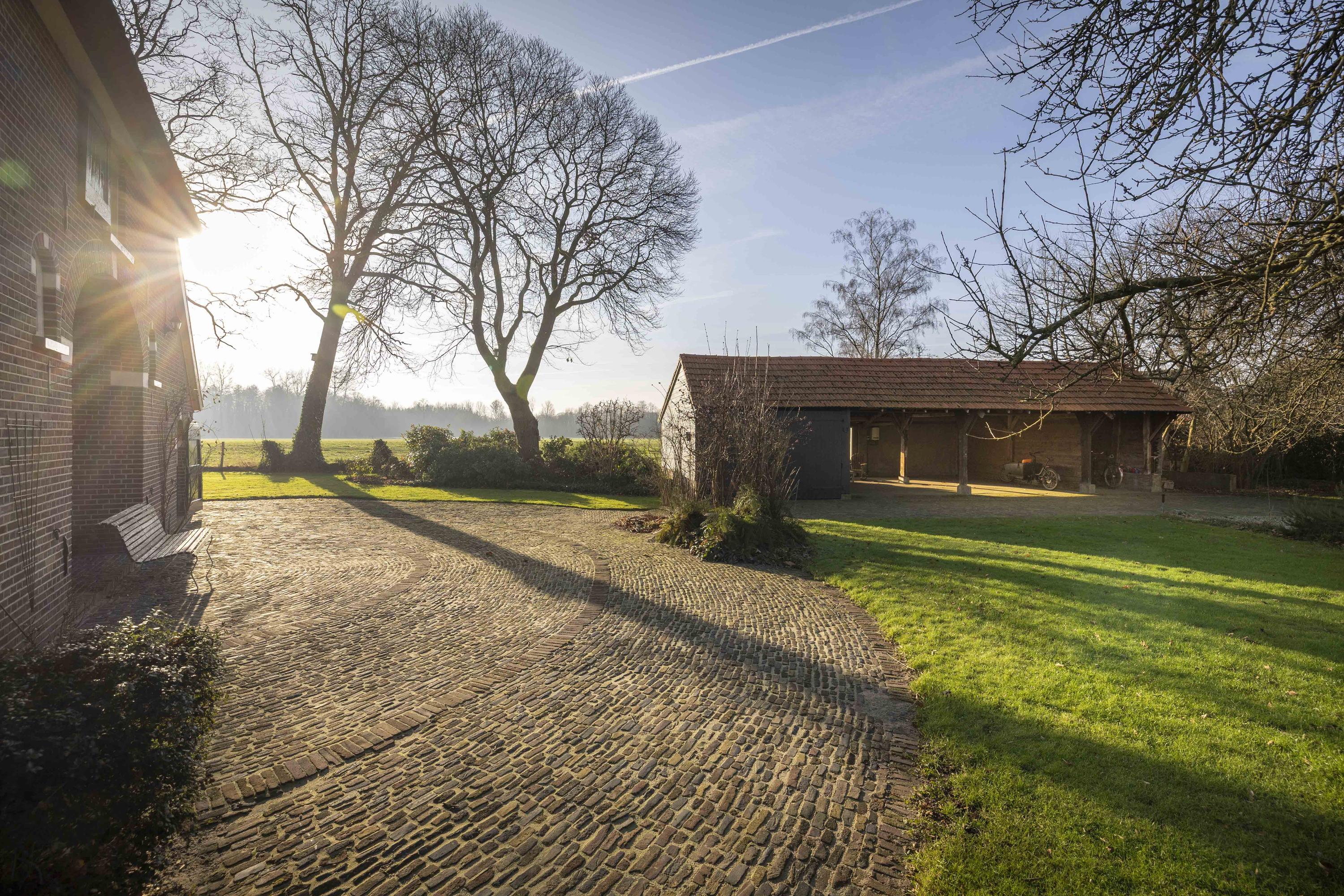 The house is surrounded by a beautiful garden. There is a shed with a carport and a lockable garden tool shed at the rear (with 39 solar panels on the roof - nicely out of sight), so the cars stay dry, as do the garden tools. There is also a second wooden outbuilding (with 6 solar panels on the roof), built in a rustic style with clapboard siding, old Dutch roof tiles, and sturdy trusses. The outbuilding offers space for parking two cars. Due to the orientation of the house, there is a lovely sun terrace behind the property. There are large lawns at both the front and rear, and privacy is guaranteed by the man-sized beech hedges.