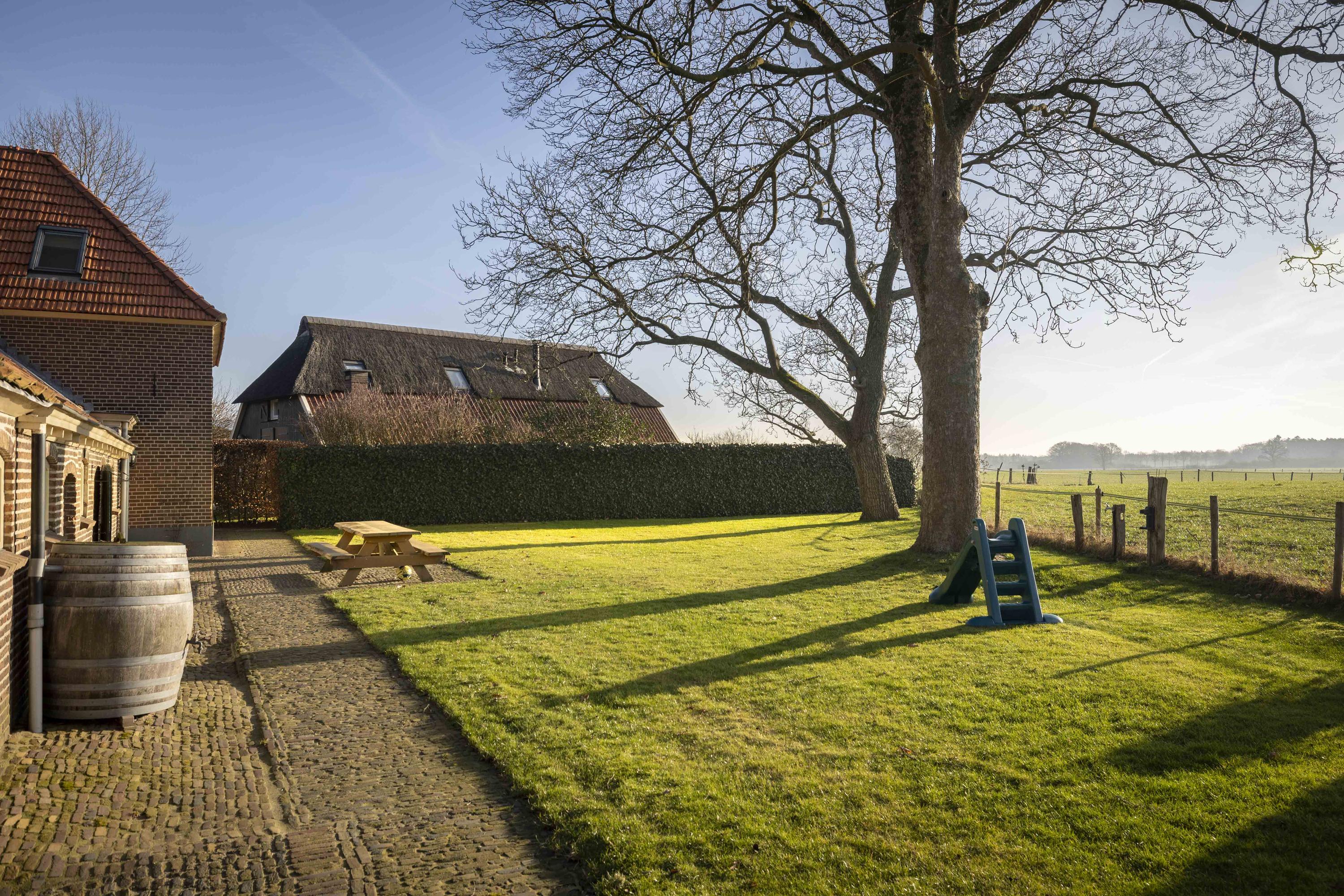 In the sunshine, the house shines out at you, with its fresh red tiles, neat joints, thatched roof (renovated in 2021), and beautiful woodwork covered in thick varnish. Despite its long history, Erve 't Norde is also completely up to date under the hood: the current residents have made the farm sustainable from top to bottom, with thick insulation, HR++ glass, 45 solar panels, and a super-efficient clay stove, making it ready for the next 163 years.
