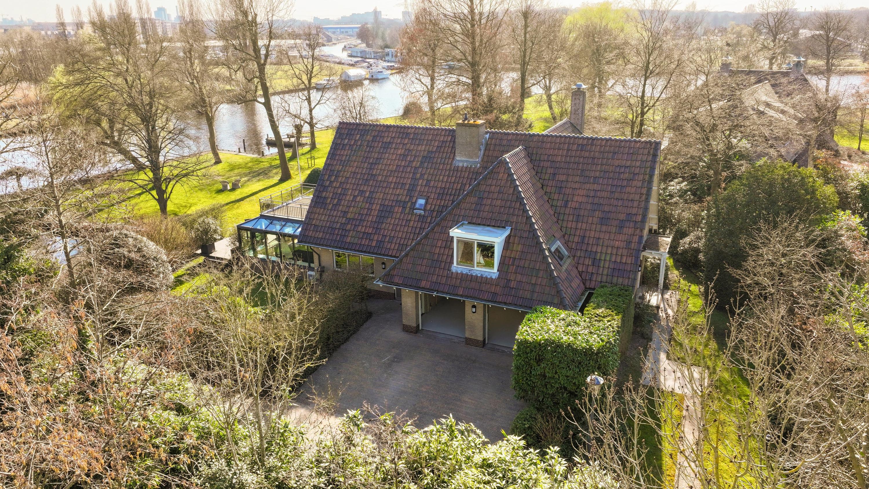 What makes this property so special is that it is situated on 1,032 m² of private land and that you, as the owner, join the VvE that owns and leases (in perpetuity) another 6,500 m² of land and water. This plot includes a beautiful private park and an inner harbour, both exclusively intended for the exclusive use of you and the owners of the 5 adjacent villas. The photos already show the enrichment of this: the plot can be described as a green oasis and offers a lot of privacy. On the other side of the water you look out over the nature reserve 'Polders Poelgeest'.