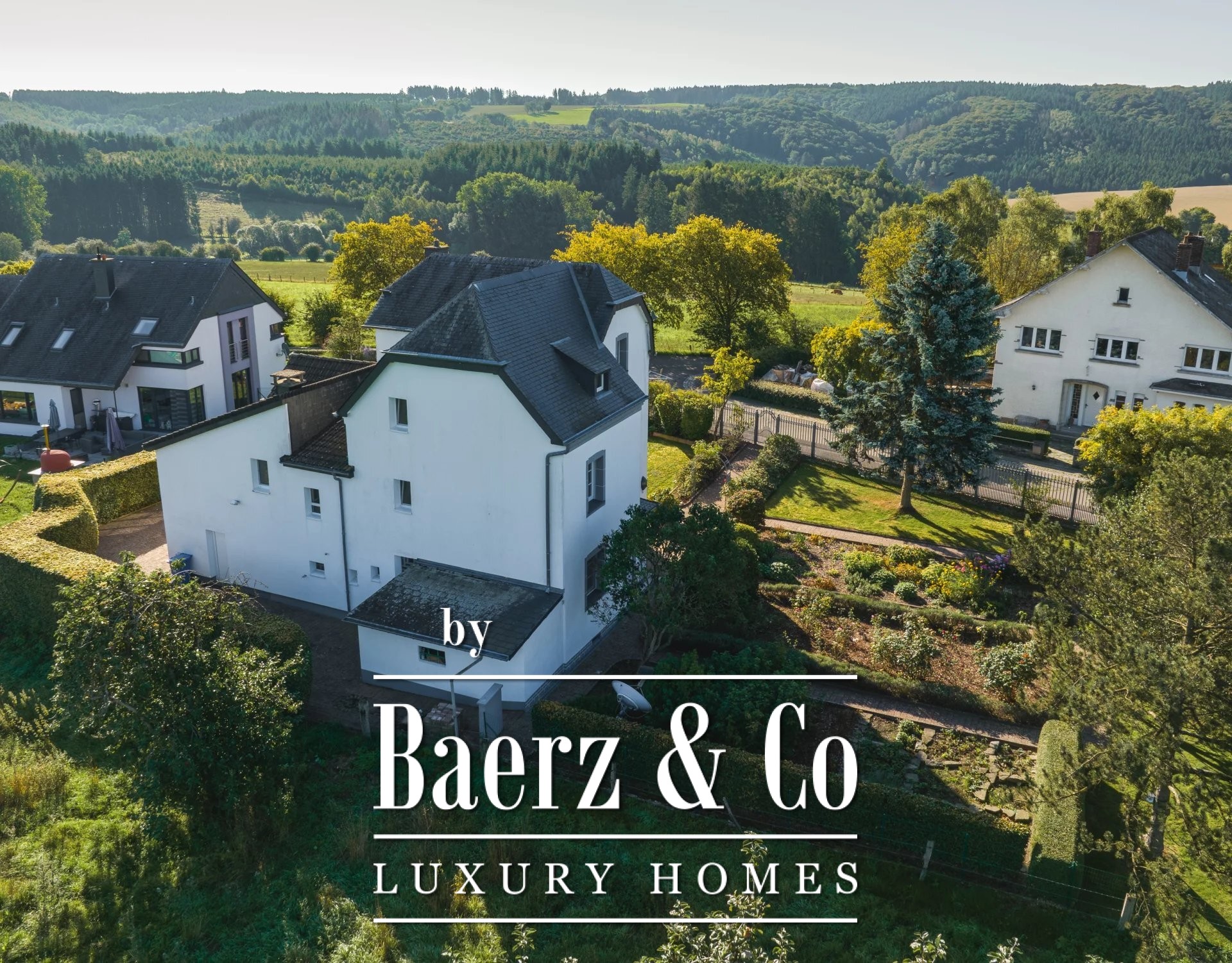 Historic house Wincrange offers an exceptional opportunity to own a property that marries nearly a century of architectural character with understated modern luxury. This renovated former post office overlooks the picturesque valley, its windows and landscaped garden framing sweeping views across forest, countryside, and private greenery.