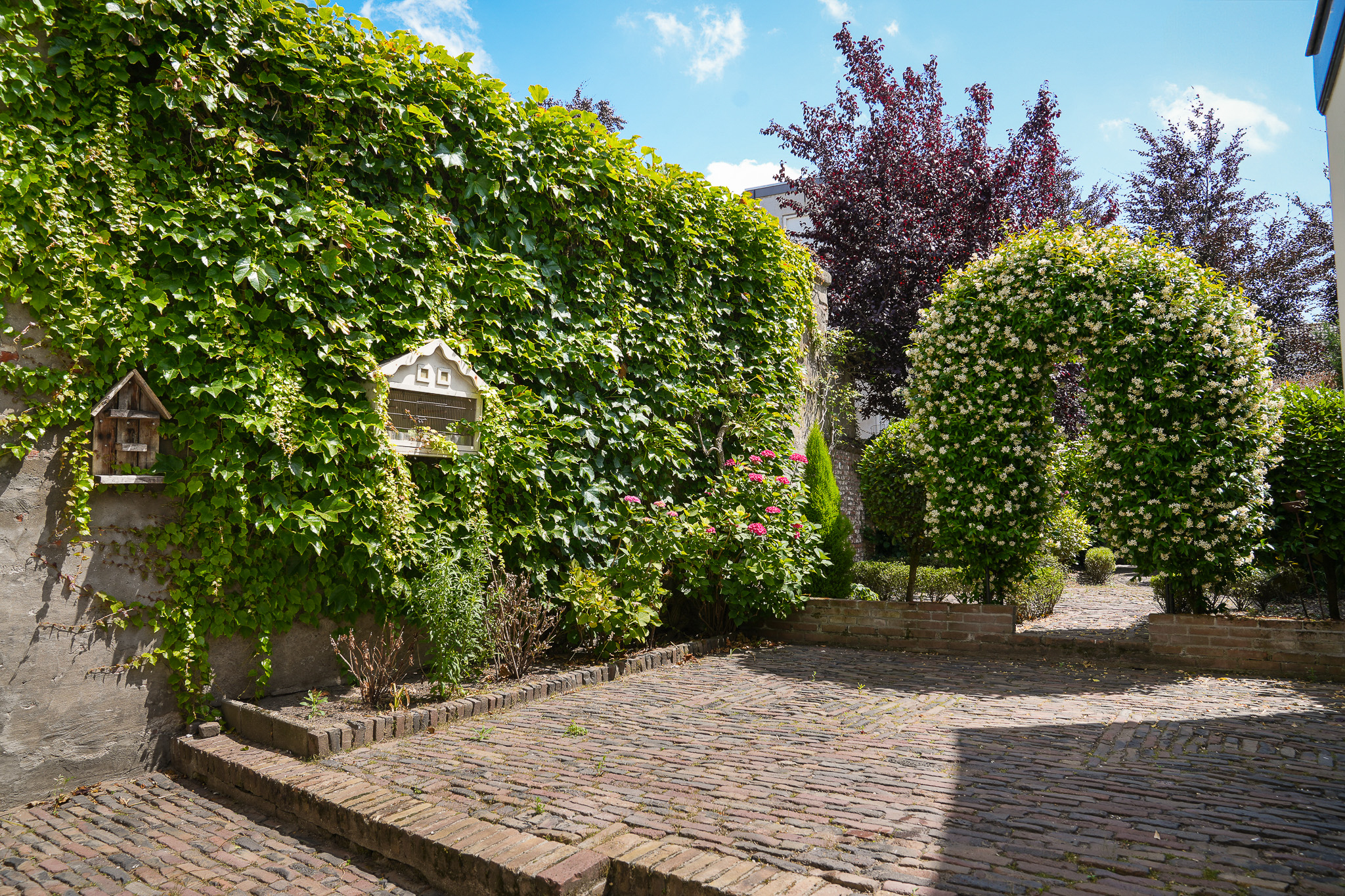 Originally dating back to the 16th century, the house features a double vaulted cellar running the full depth of the property, accessible from the garden. The property is heated via an Intergas HRe boiler. In front of the house lies a charming stone stoop with wrought-iron railings on either side. Behind the property is a delightful city garden with a rear entrance to Koningstraat. This evergreen garden is arranged with terraces paved in traditional brick, bordered by low hedges and shrub-lined beds.
