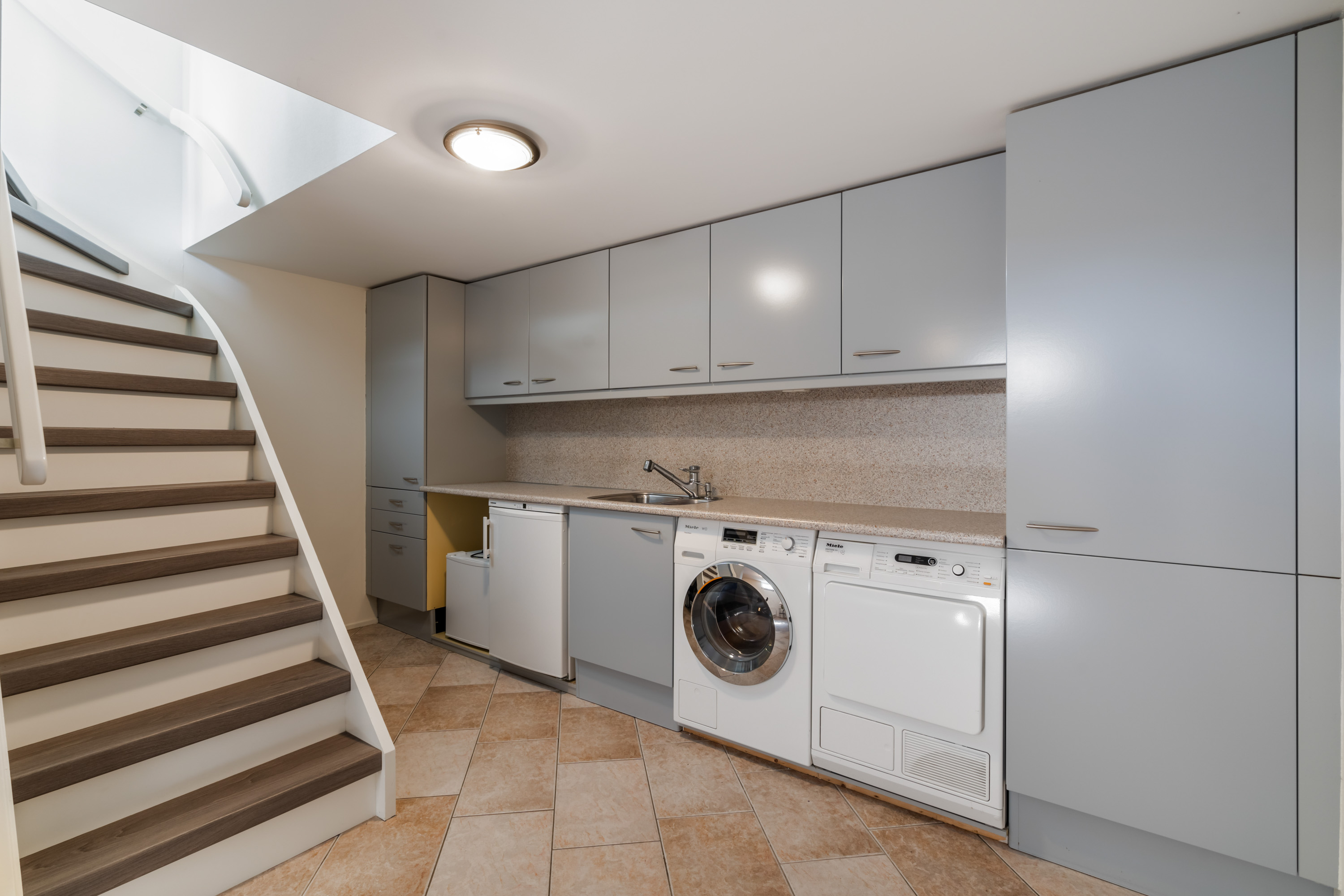 - Basement with bedroom, lounge, laundry room, and kitchenette