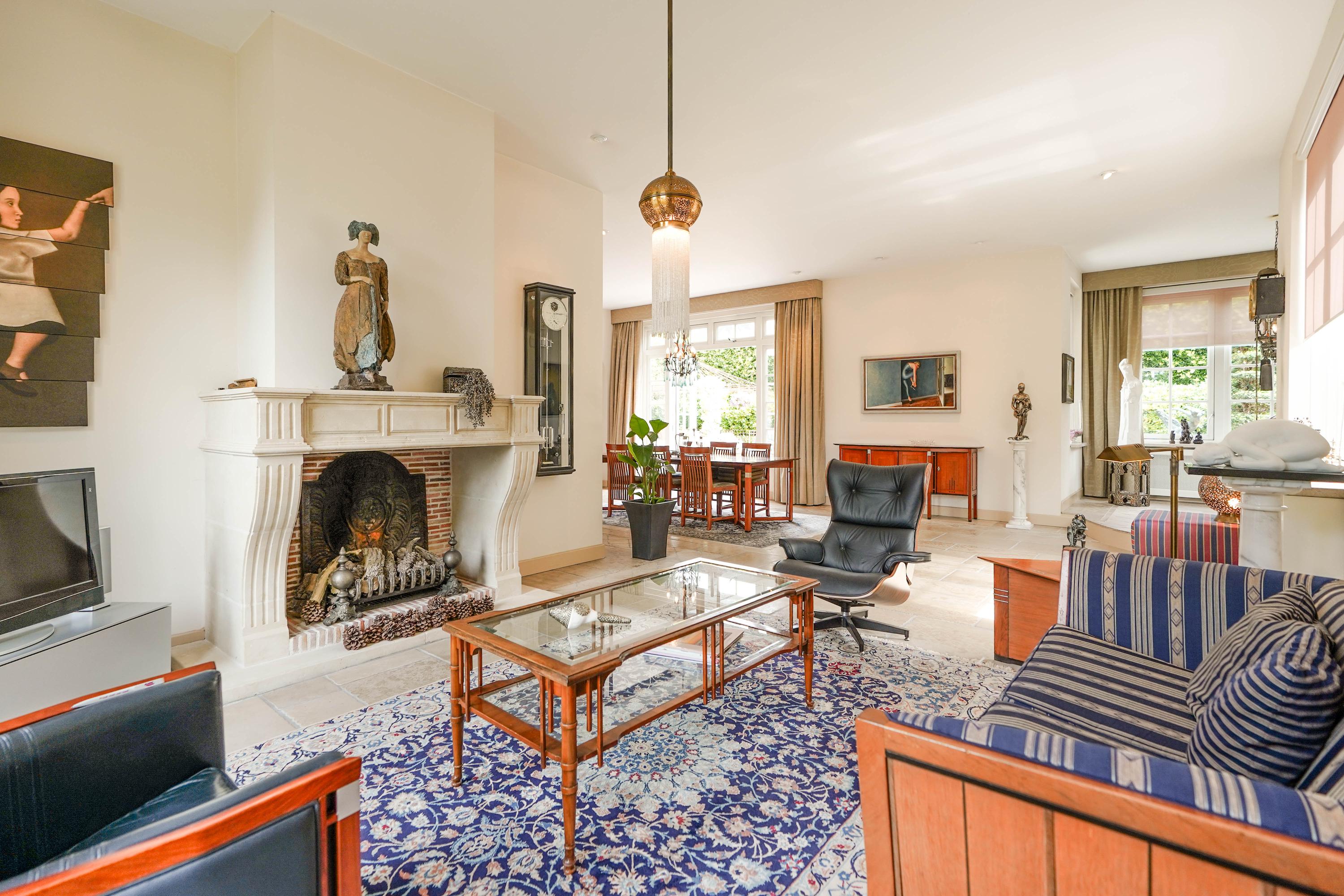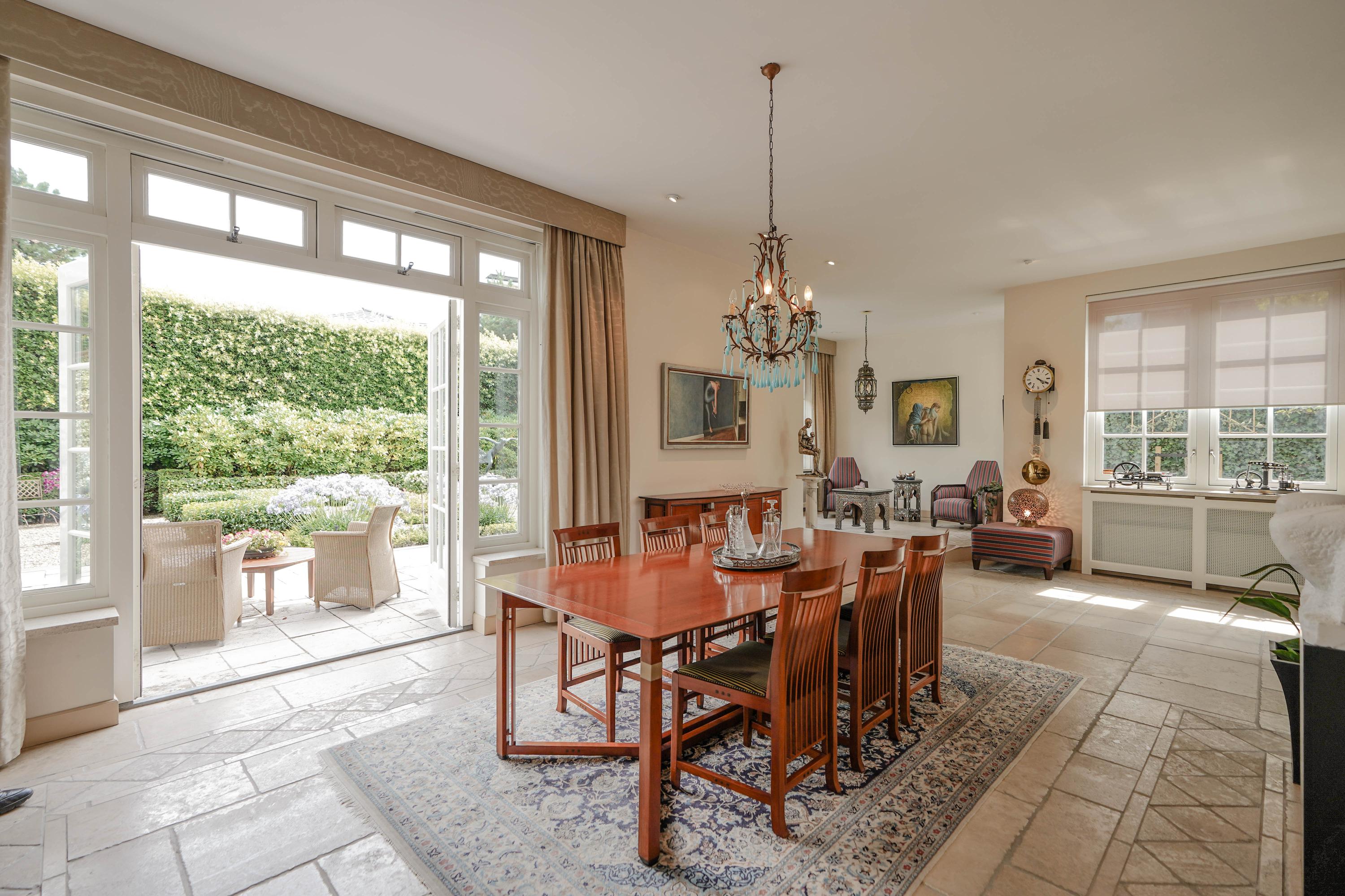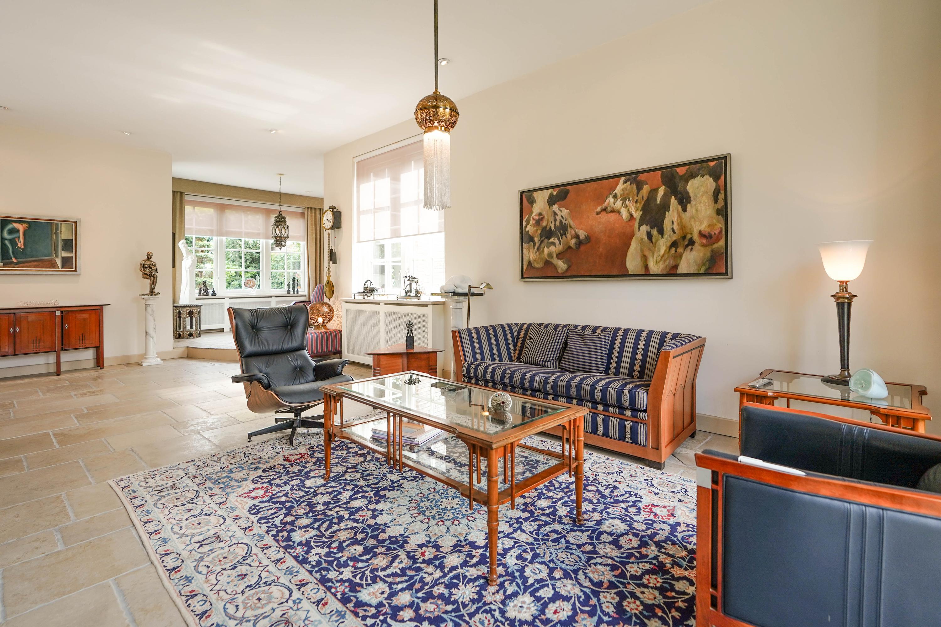 Los detalles arquitectónicos otorgan a esta villa un carácter verdaderamente distintivo: cuatro ventanales arqueados, una fachada central acristalada curva, ladrillos formados a mano y una robusta puerta principal de roble con herrajes forjados a medida. El interior está impregnado de materiales cuidadosamente seleccionados, realzados por una escalera escultórica de roble diseñada por Luc Steels, suelos macizos de madera y una transición fluida entre los espacios habitables. La luz irradia a través de tragaluces y amplias fachadas acristaladas, creando una atmósfera luminosa en toda la casa.