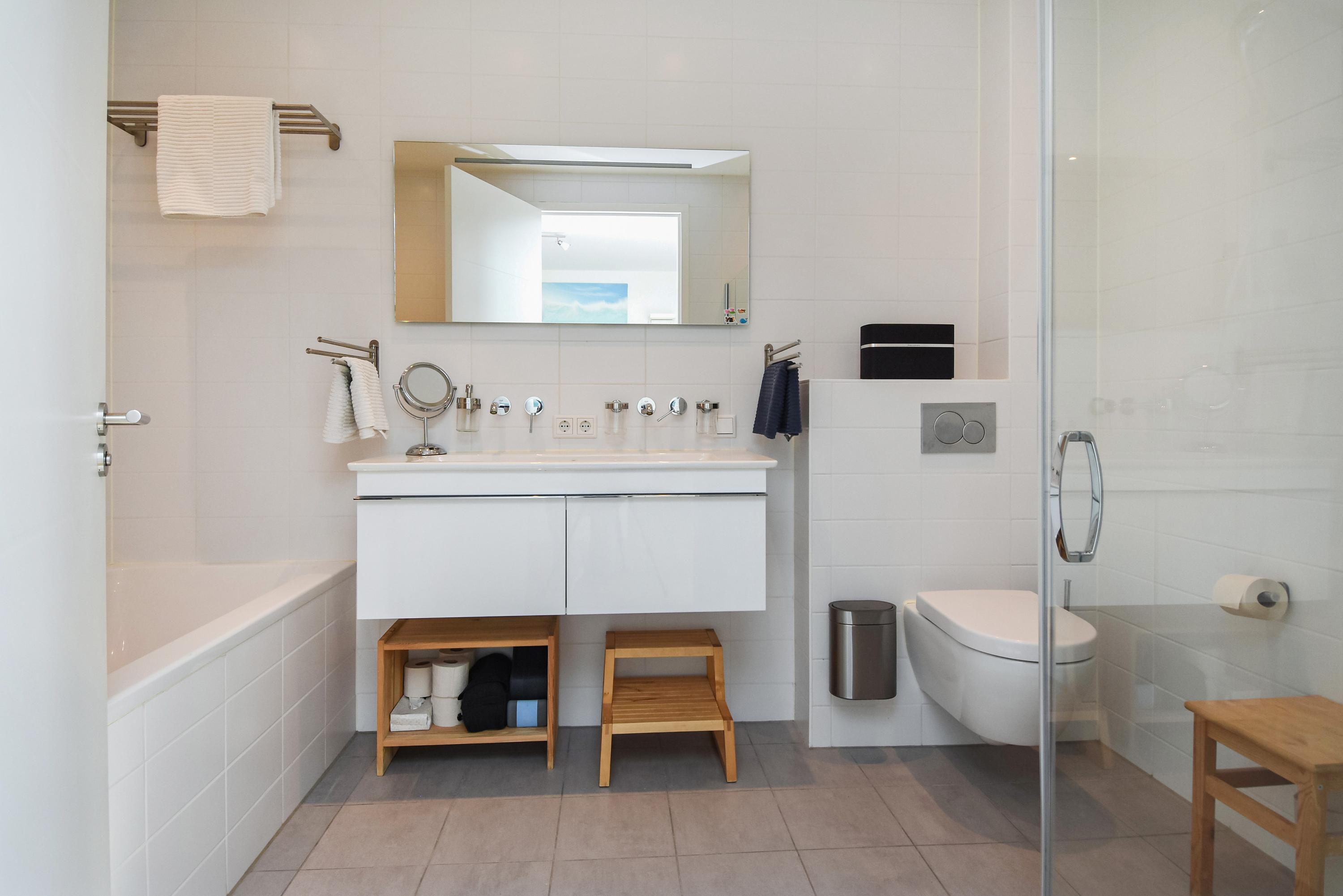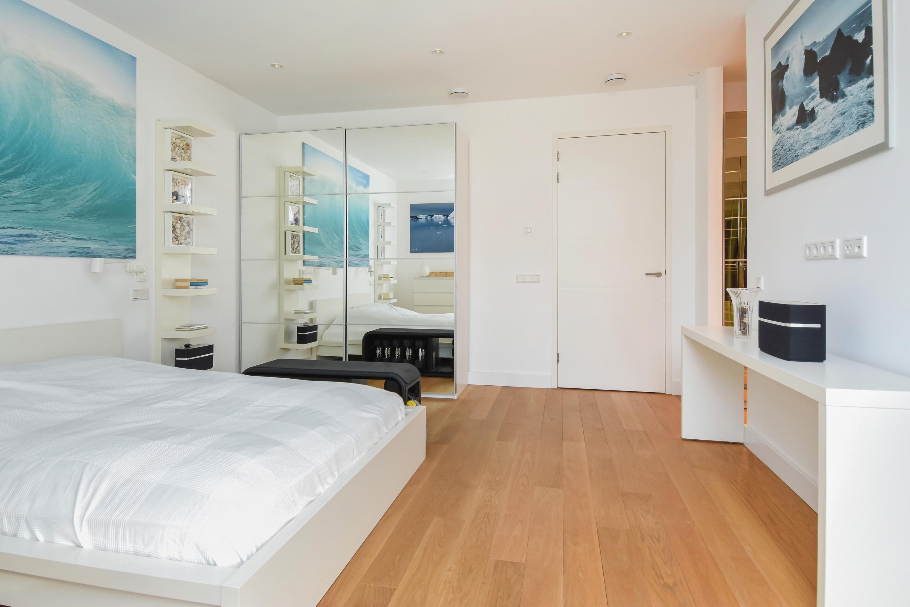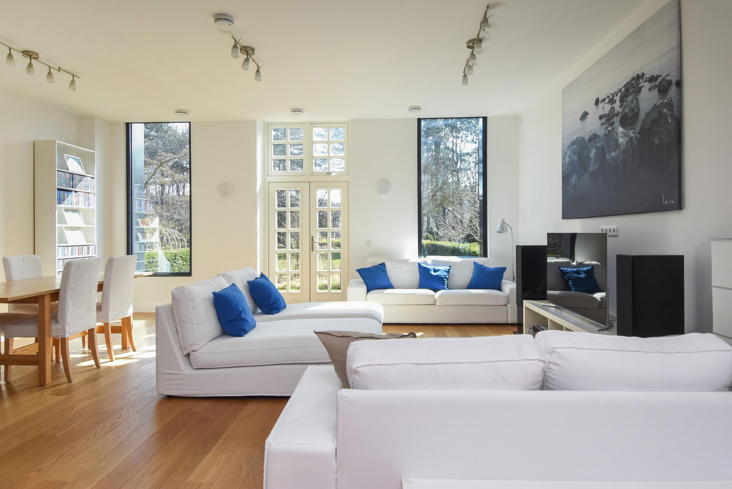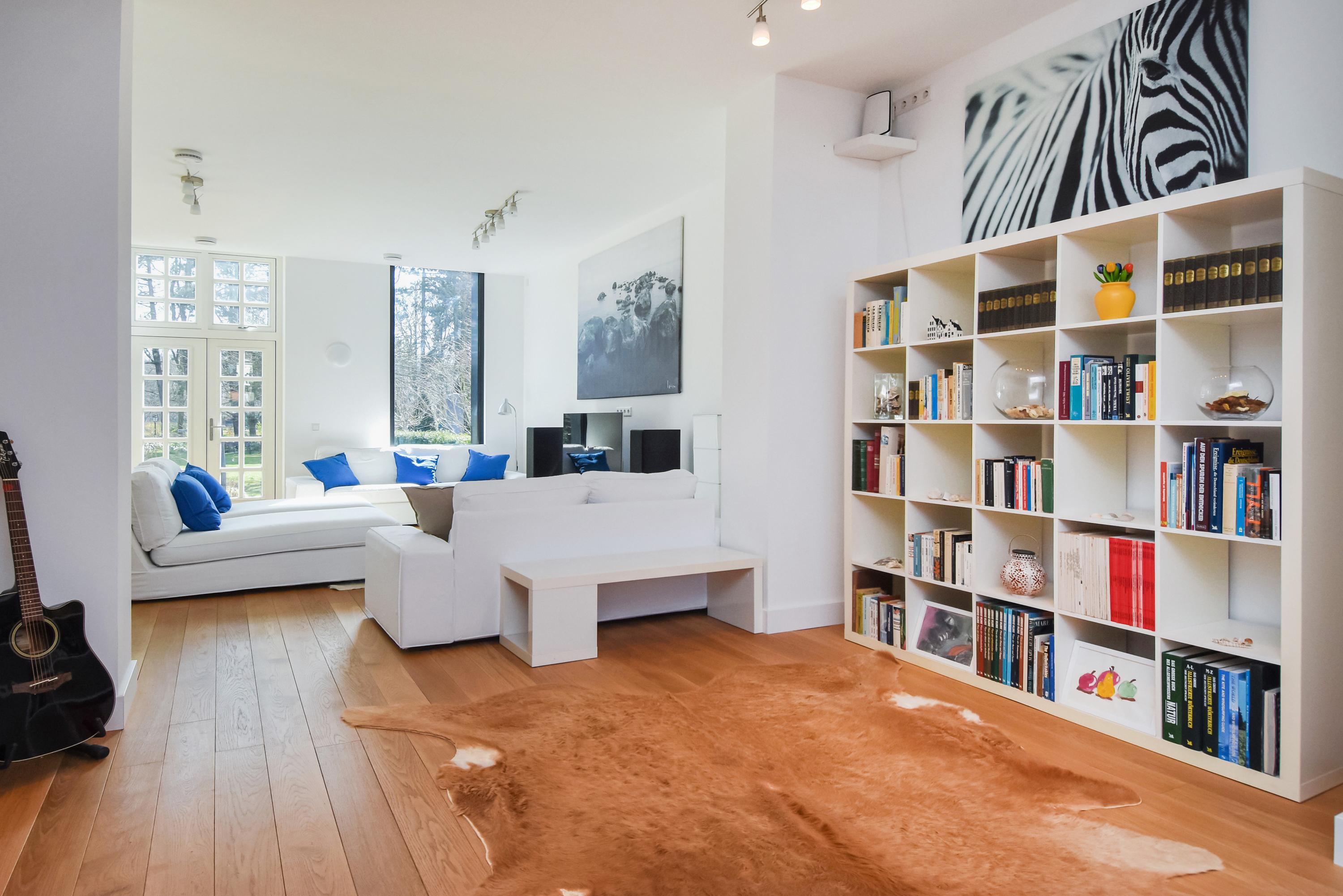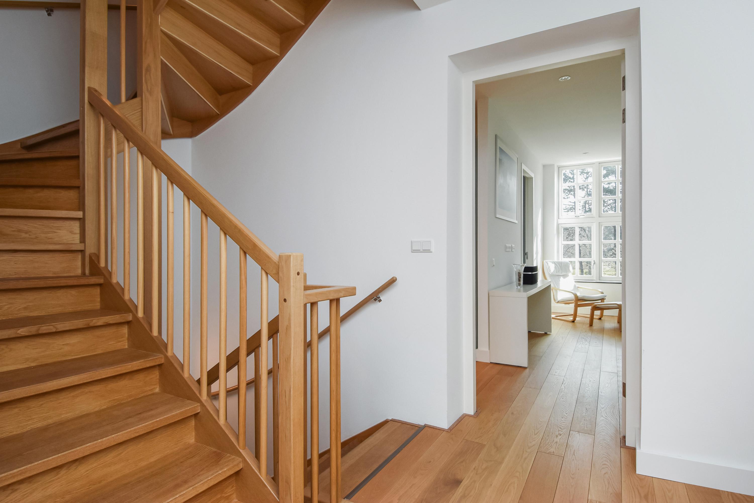 Los ventanales de suelo a techo y los altos techos crean interiores luminosos, mientras el suelo de roble macizo y la calefacción por suelo radiante aportan una comodidad sensorial. Las puertas dobles del área principal de estar se abren a un jardín orientado al sureste de aproximadamente 58 m², conectado directamente con el parque privado destinado exclusivamente a los residentes. La planta baja y el nivel superior, comunicados por una escalera fija, ofrecen amplios espacios para la vida familiar o la privacidad.