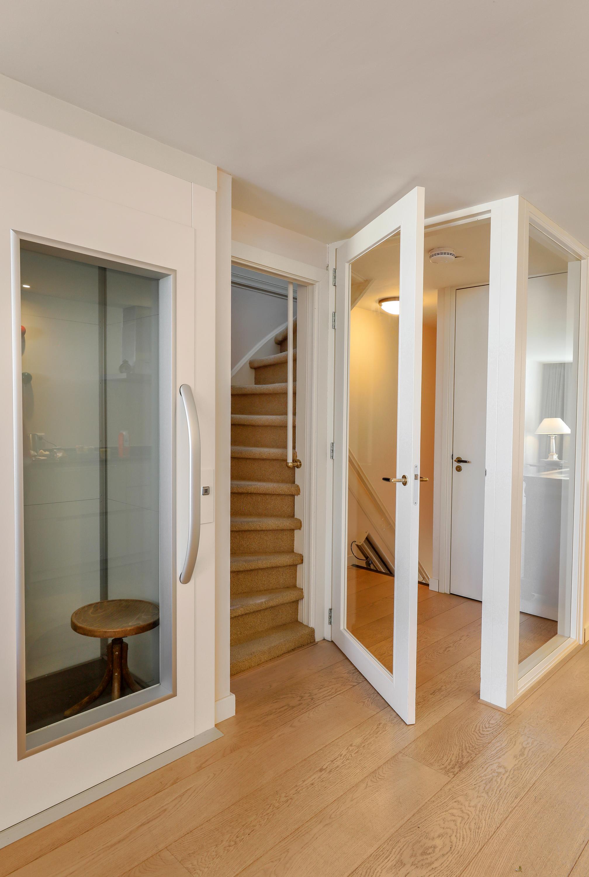 Dos dormitorios ocupan la segunda planta bajo las vigas originales del tejado. Uno de ellos ofrece vistas al agua; el otro dispone de una logia privada donde la luz de la tarde y la noche se filtra suavemente. El baño contemporáneo está equipado con ducha a ras de suelo, mueble lavabo y sanitario. Un ascensor y escaleras garantizan el acceso fluido entre plantas. El aislamiento incluye doble acristalamiento parcial y acristalamiento secundario, y la calefacción central garantiza el confort todo el año. Toldos exteriores y ventanas de tejado invitan tanto la sombra como la luz natural. El garaje privado con sótano aporta una comodidad poco habitual en el centro urbano, ideal para almacenaje, bicicletas o actividades personales. Cada detalle responde al estilo de vida urbano consciente, rodeado de historia y agua, en Den Bosch.