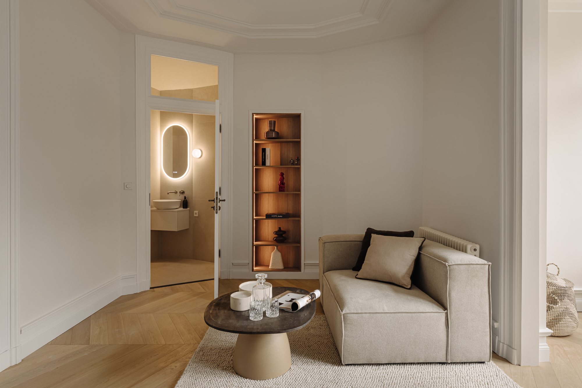 El interior combina el encanto histórico restaurado con una renovación refinada, destacando una impactante cocina-comedor acabada en roble oscuro, encimera de material compuesto, electrodomésticos Siemens StudioLine, placa Bora y grifo Quooker. La luz natural inunda las generosas zonas de estar y el comedor clásico, realzadas por altos ventanales con vistas a las elegantes calles de Ámsterdam. La planta sótano constituye una tranquila zona de descanso, con baños privados en suite y acceso al jardín.