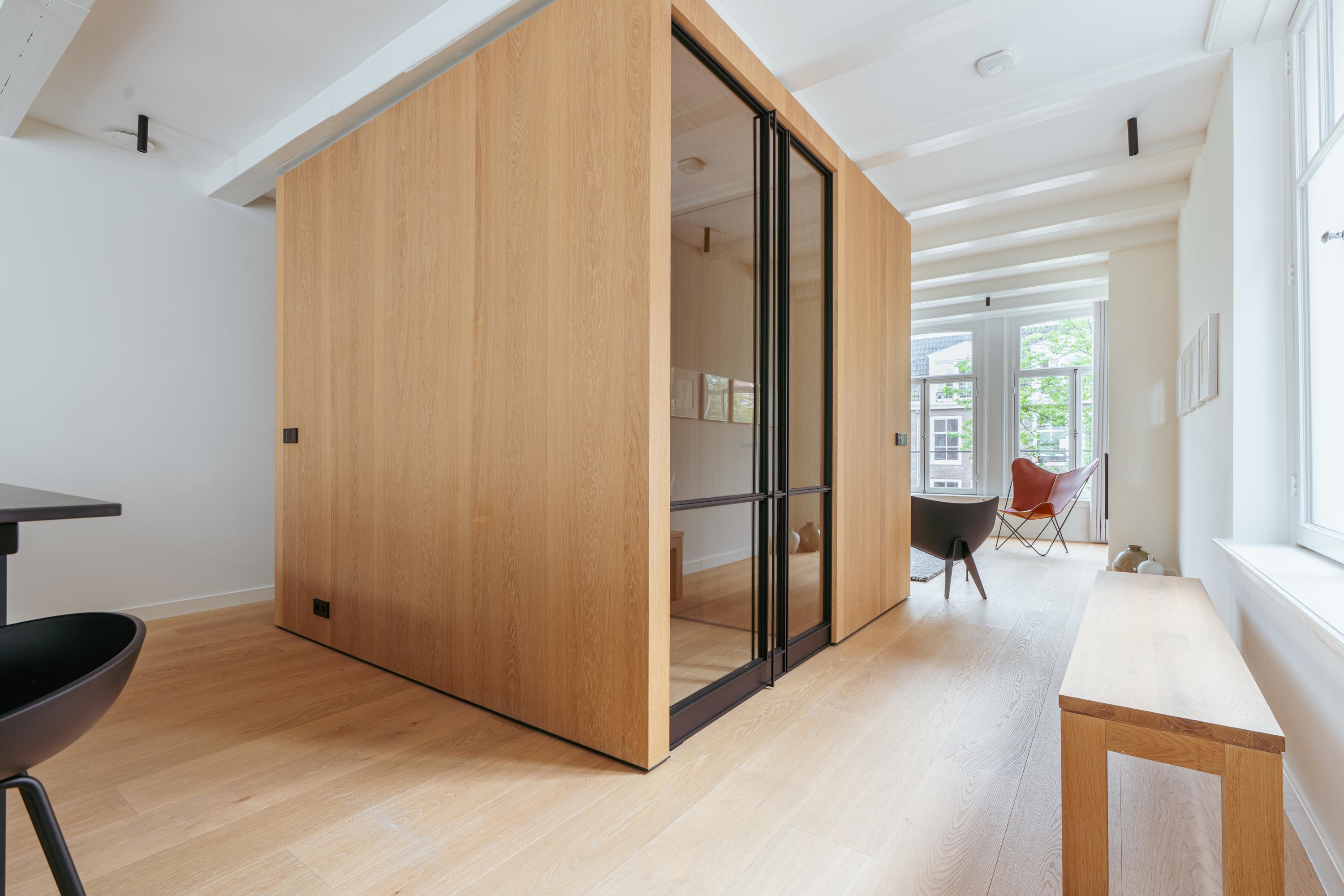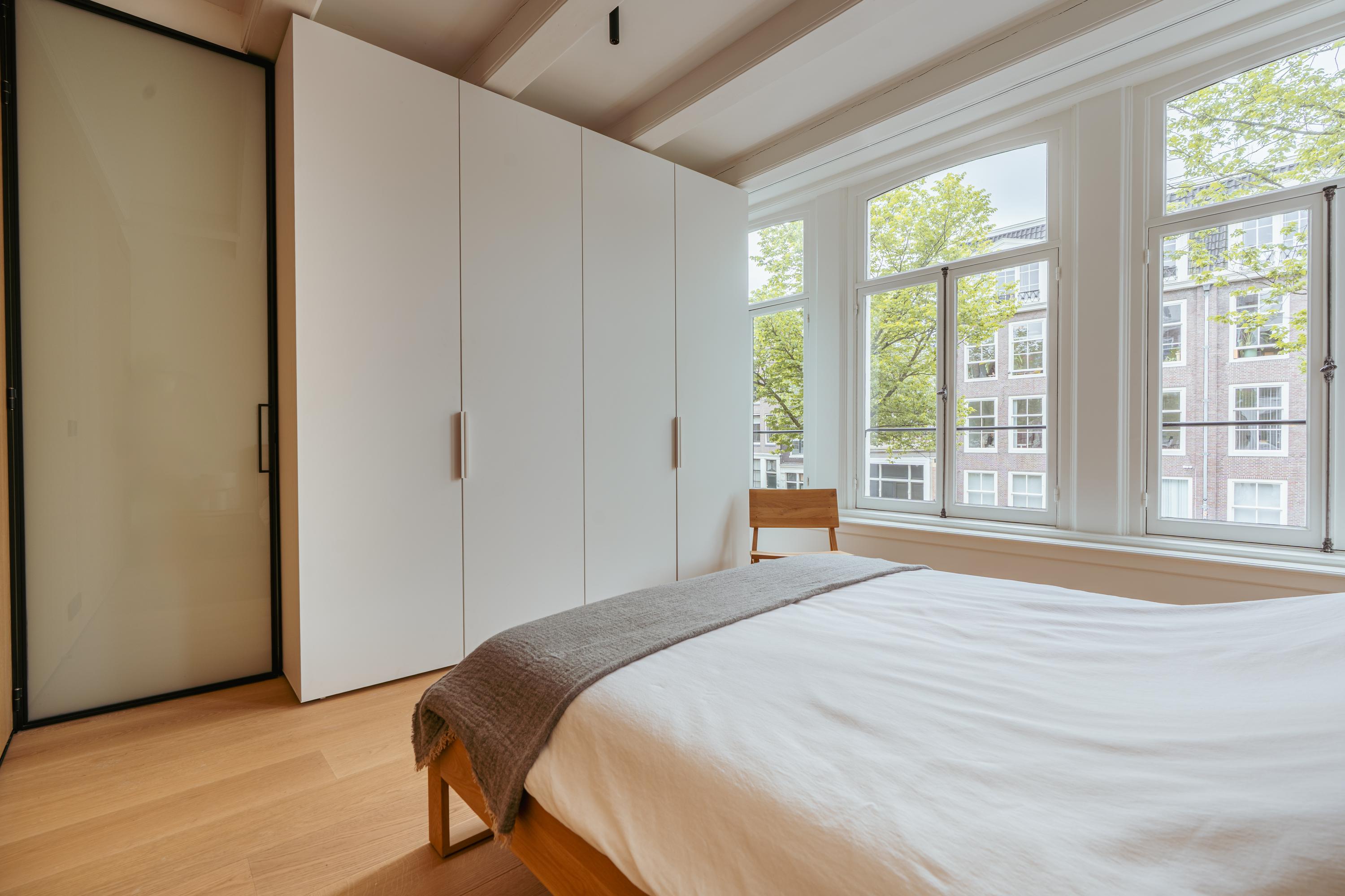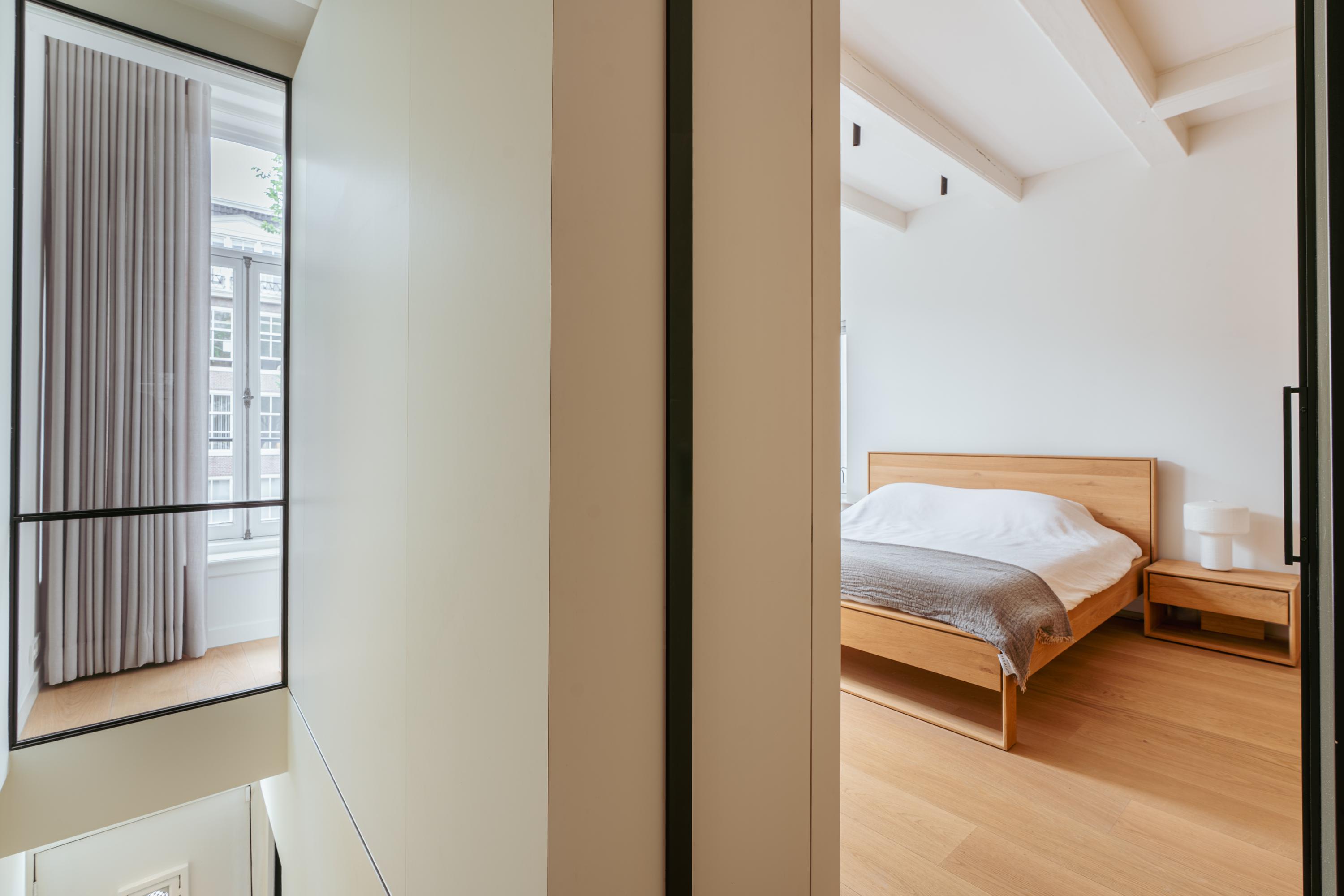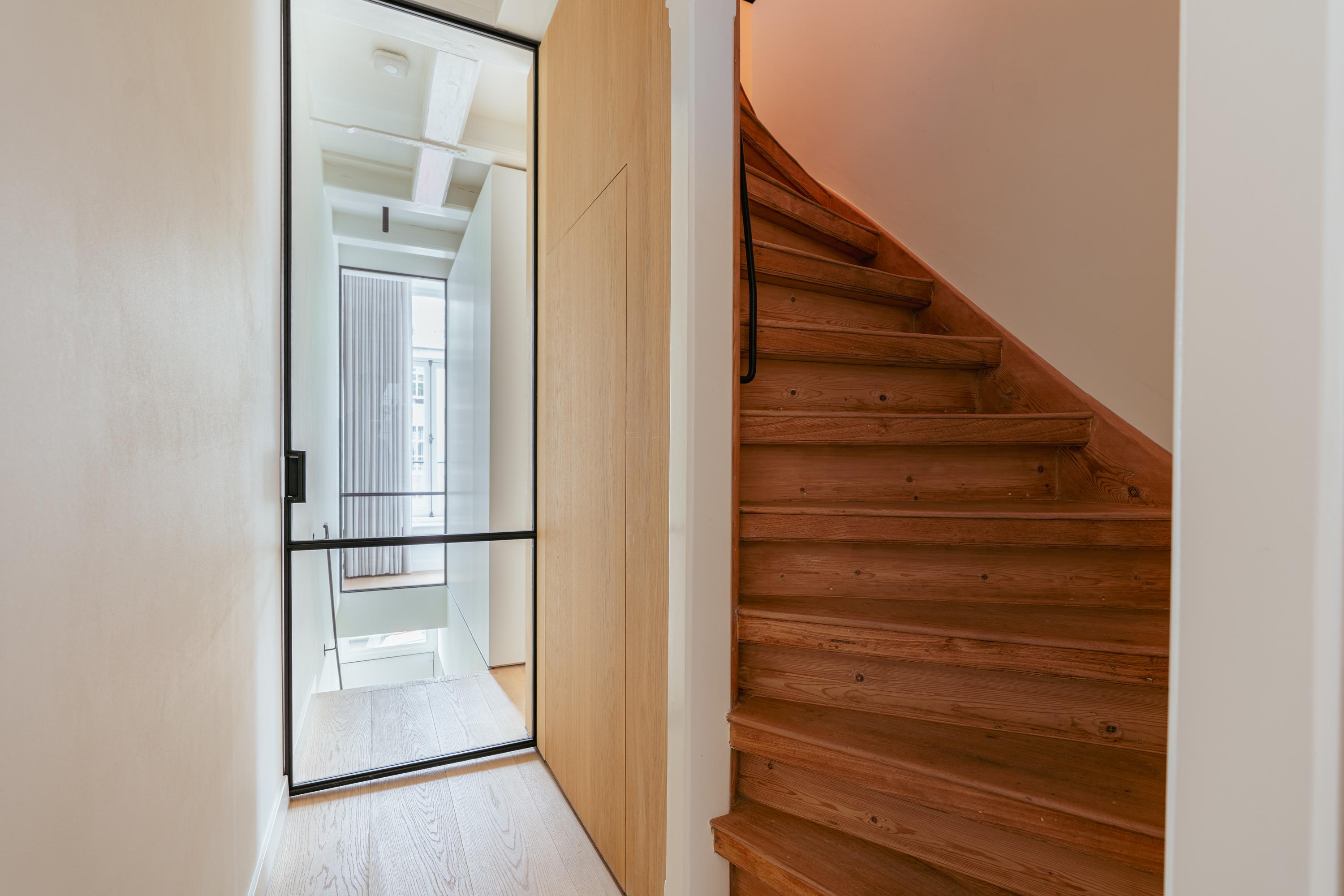 Canal House Amsterdam define una presencia sofisticada en el legendario cinturón de canales de la ciudad, discretamente situado entre Herengracht y Singel. Esta residencia de cinco plantas ofrece aproximadamente 239 m² de espacio habitable y fusiona su origen histórico con detalles minimalistas japoneses, resultado de una meticulosa renovación en 2020. Al entrar, la planta baja presenta un espacio comercial multifuncional presidido por madera de roble, vigas expuestas y abundante luz natural, ideal para un estudio discreto o una oficina en casa. Los pisos superiores albergan tres dormitorios tranquilos y dos baños, cada uno acabado con un elevado y atemporal estándar. La suite principal incluye un baño privado de bienestar con bañera Agape exenta, ducha a ras de suelo, cabina de vapor y una tumbona integrada, enriquecida con iluminación ambiental y cálidas texturas de madera.
