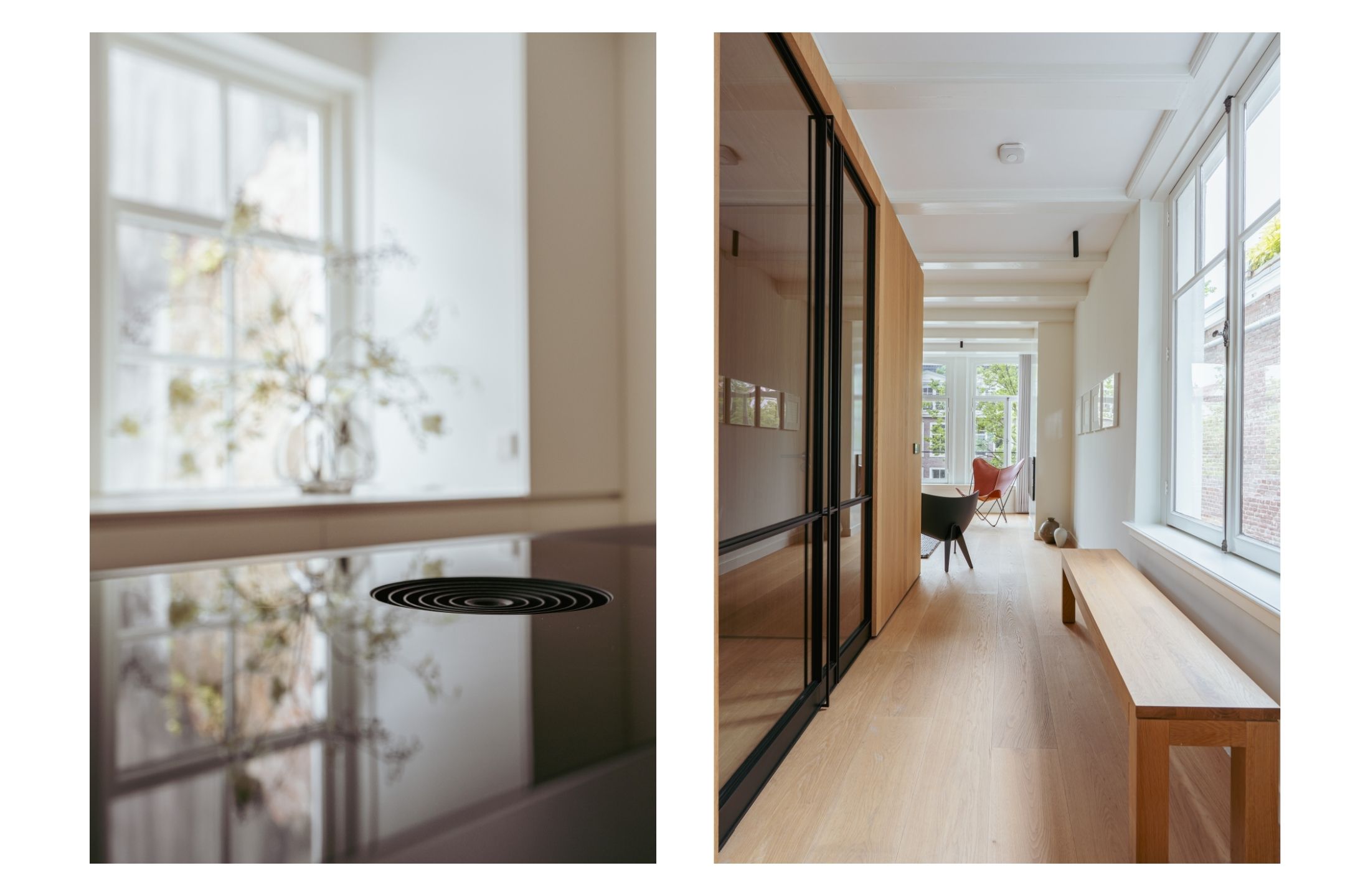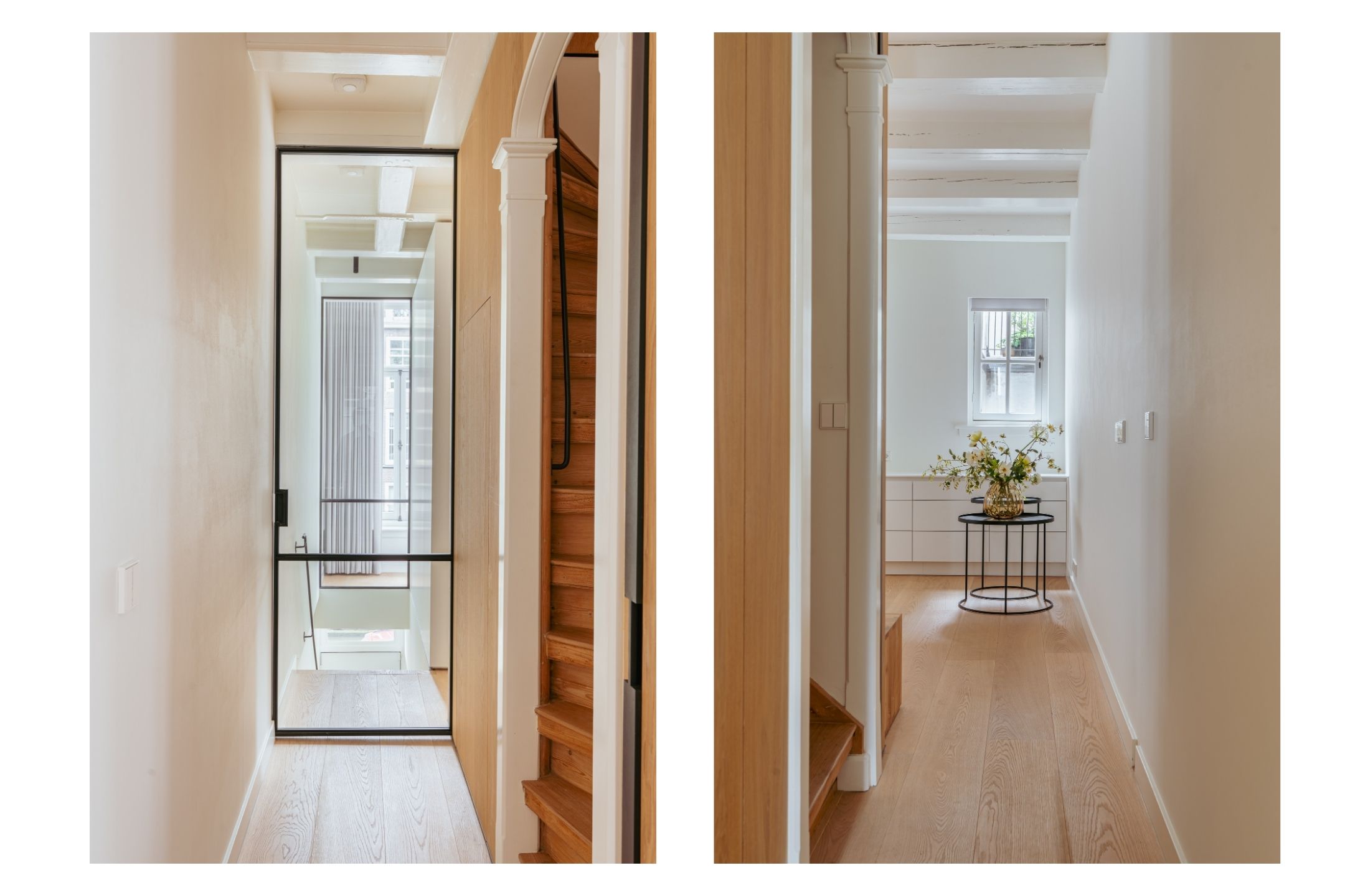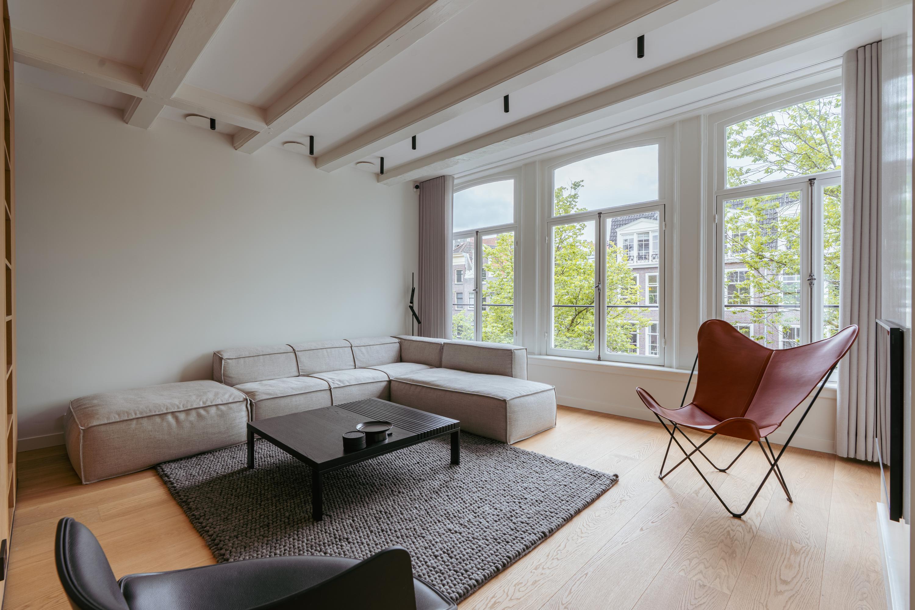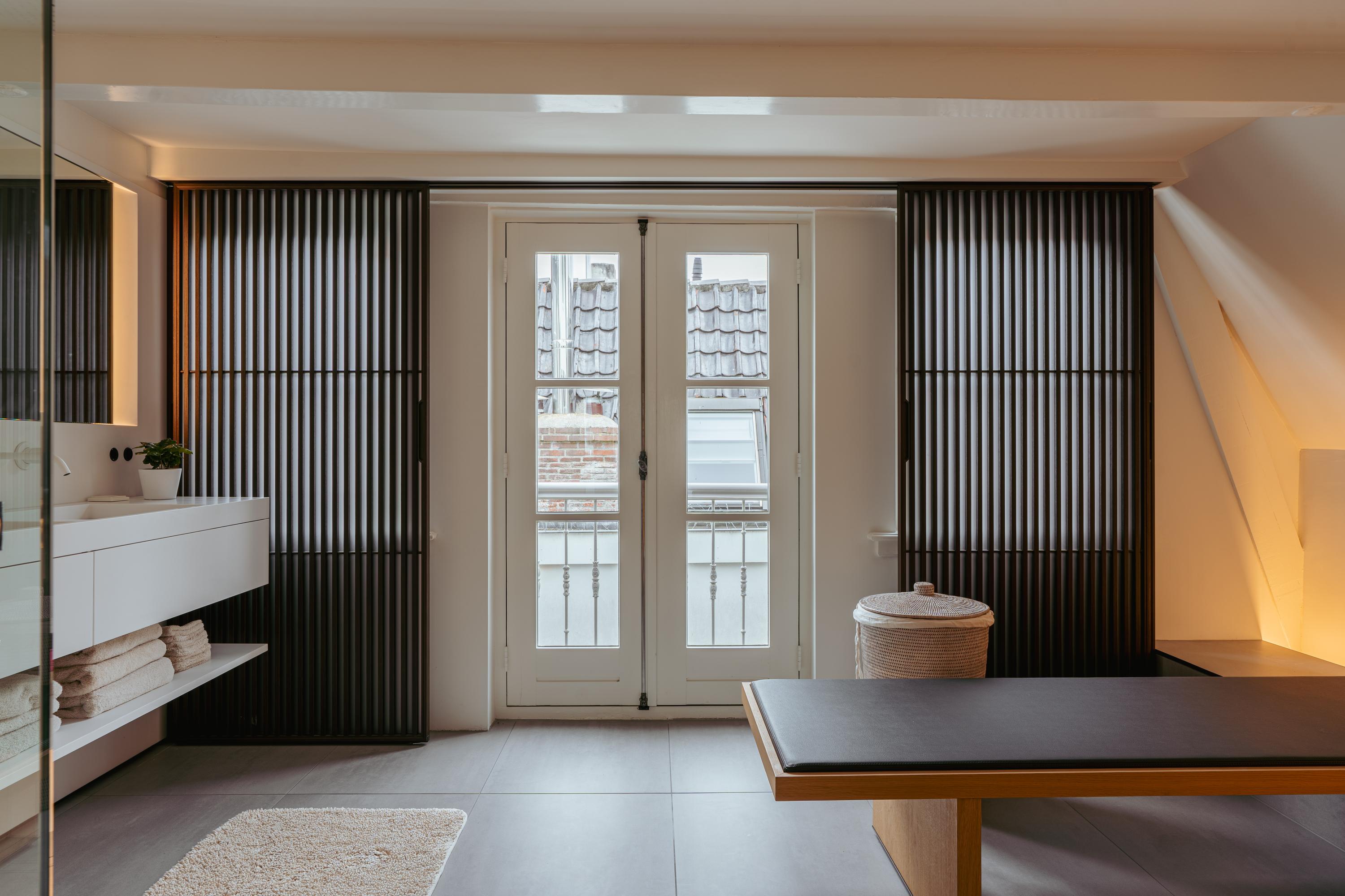 Canal House Amsterdam define una presencia sofisticada en el legendario cinturón de canales de la ciudad, discretamente situado entre Herengracht y Singel. Esta residencia de cinco plantas ofrece aproximadamente 239 m² de espacio habitable y fusiona su origen histórico con detalles minimalistas japoneses, resultado de una meticulosa renovación en 2020. Al entrar, la planta baja presenta un espacio comercial multifuncional presidido por madera de roble, vigas expuestas y abundante luz natural, ideal para un estudio discreto o una oficina en casa. Los pisos superiores albergan tres dormitorios tranquilos y dos baños, cada uno acabado con un elevado y atemporal estándar. La suite principal incluye un baño privado de bienestar con bañera Agape exenta, ducha a ras de suelo, cabina de vapor y una tumbona integrada, enriquecida con iluminación ambiental y cálidas texturas de madera.