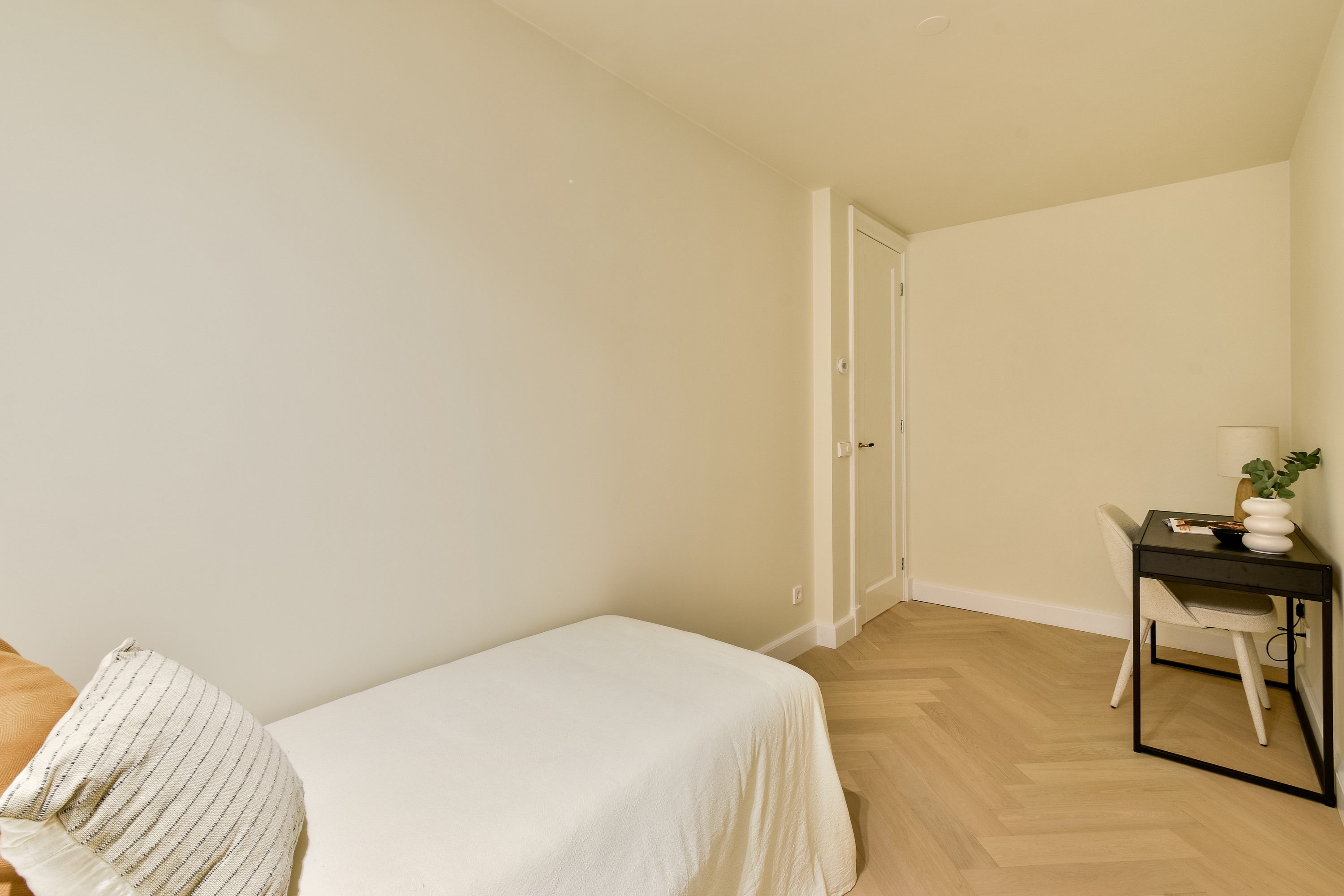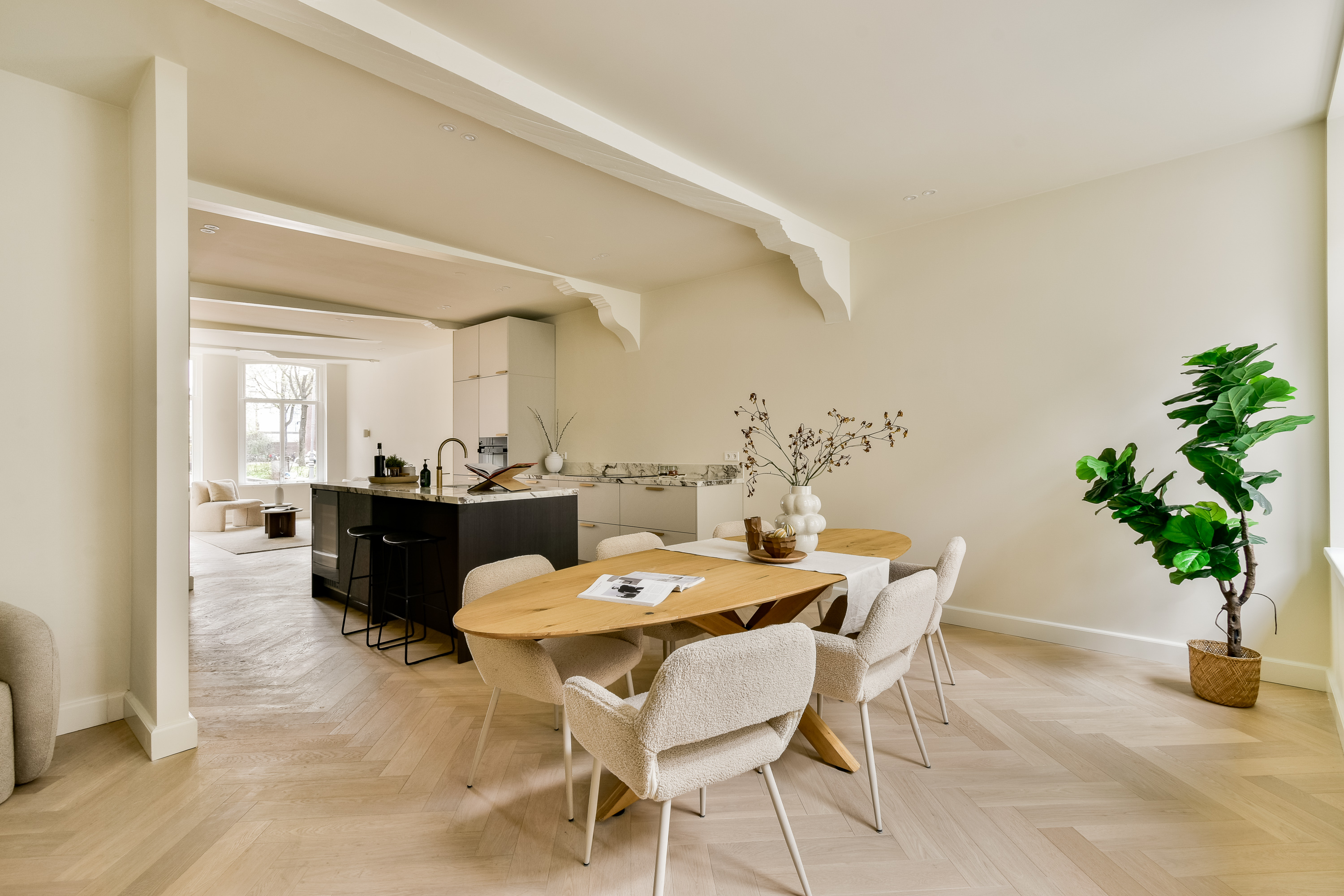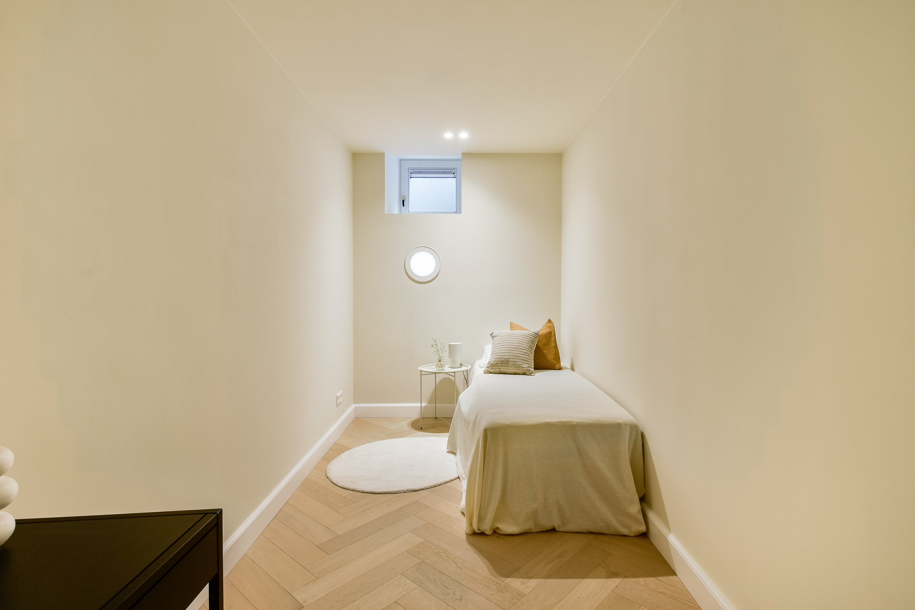 La planta inferior alberga tres elegantes dormitorios y dos sofisticados baños, ambos con acabados contemporáneos, duchas a ras de suelo y lavabos dobles. El dormitorio principal se beneficia de una excelente luz natural y armario empotrado. En la planta superior, un baño adicional con bañera y otro dormitorio adicional brindan un espacio adaptable para familia o invitados. La renovación integral incluye acabados premium, suelo radiante, ventilación mecánica y propiedad plena. Destacada por su ubicación céntrica en Ámsterdam, esta vivienda permite disfrutar de una gran oferta gastronómica y cultural en los alrededores, excelentes conexiones de transporte y una tranquilidad privada en pleno corazón de la ciudad.