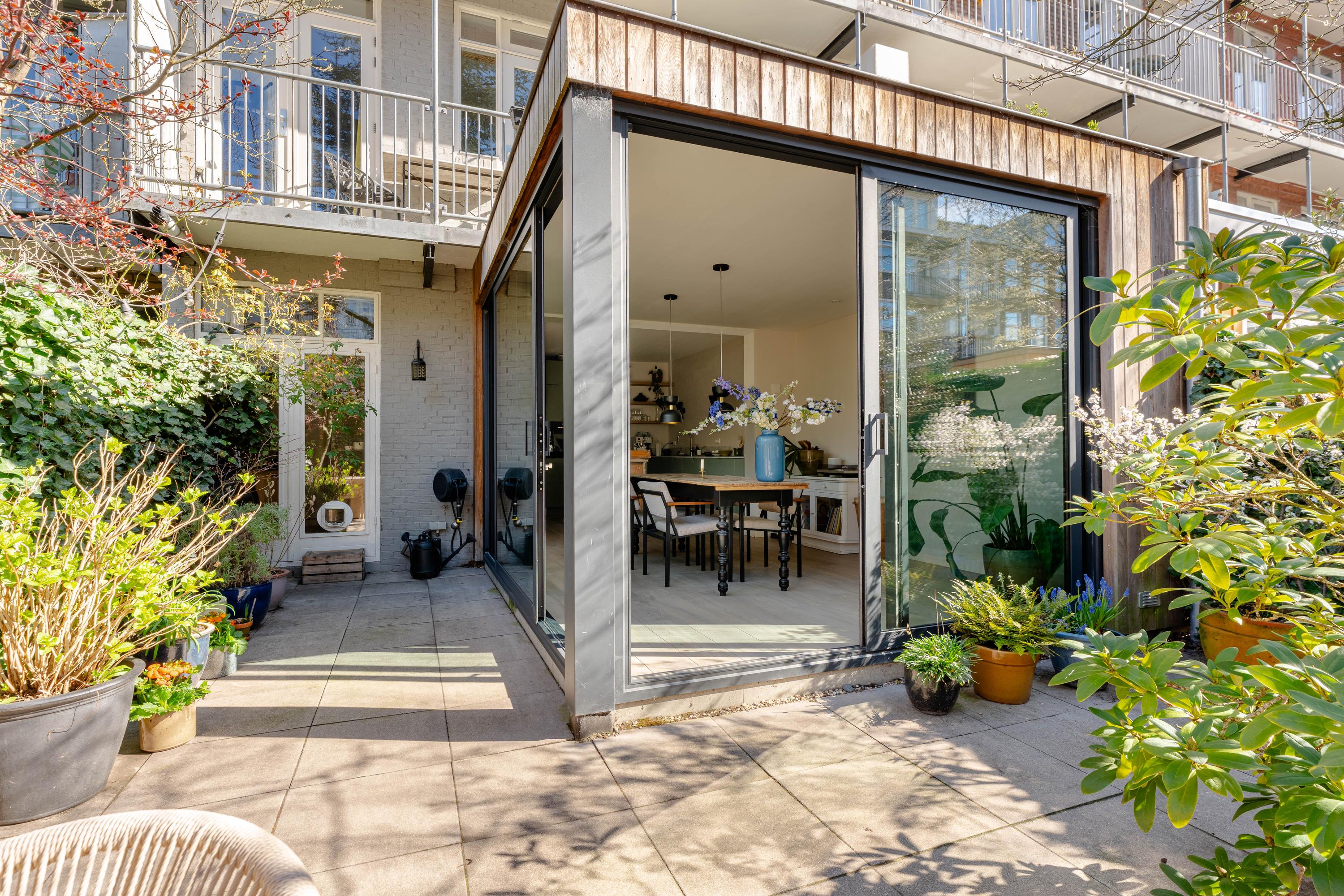 El apartamento en Ámsterdam, ubicado en Bos en Lommer, presenta un equilibrio discreto de luz, espacio y diseño funcional. Esta vivienda en planta baja, de aproximadamente 120 m², le da la bienvenida con una entrada privada y un ambiente de calma en la tranquila Kijkduinstraat. El salón se percibe amplio, inundado de luz a través de grandes ventanales, y se conecta de forma fluida con una moderna cocina diáfana, instalada en 2021 y equipada con electrodomésticos empotrados de última generación.
