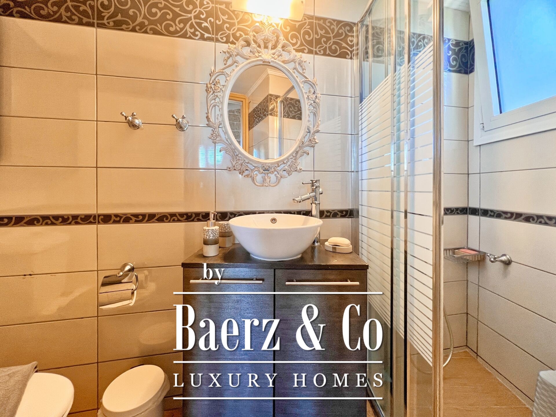 La luz natural y los acabados cuidadosamente seleccionados elevan el ambiente, mientras que el doble acristalamiento, el aislamiento acústico, la calefacción autónoma por bomba de calor, el aire acondicionado y el sistema solar de agua garantizan confort energético en todo momento. Las medidas de seguridad incluyen puerta de seguridad, sistema de alarma y cámaras de vigilancia.