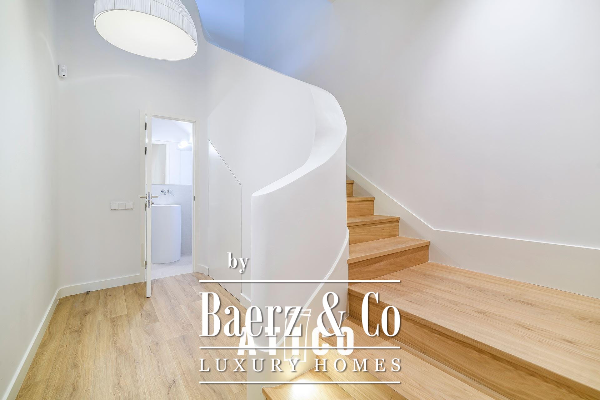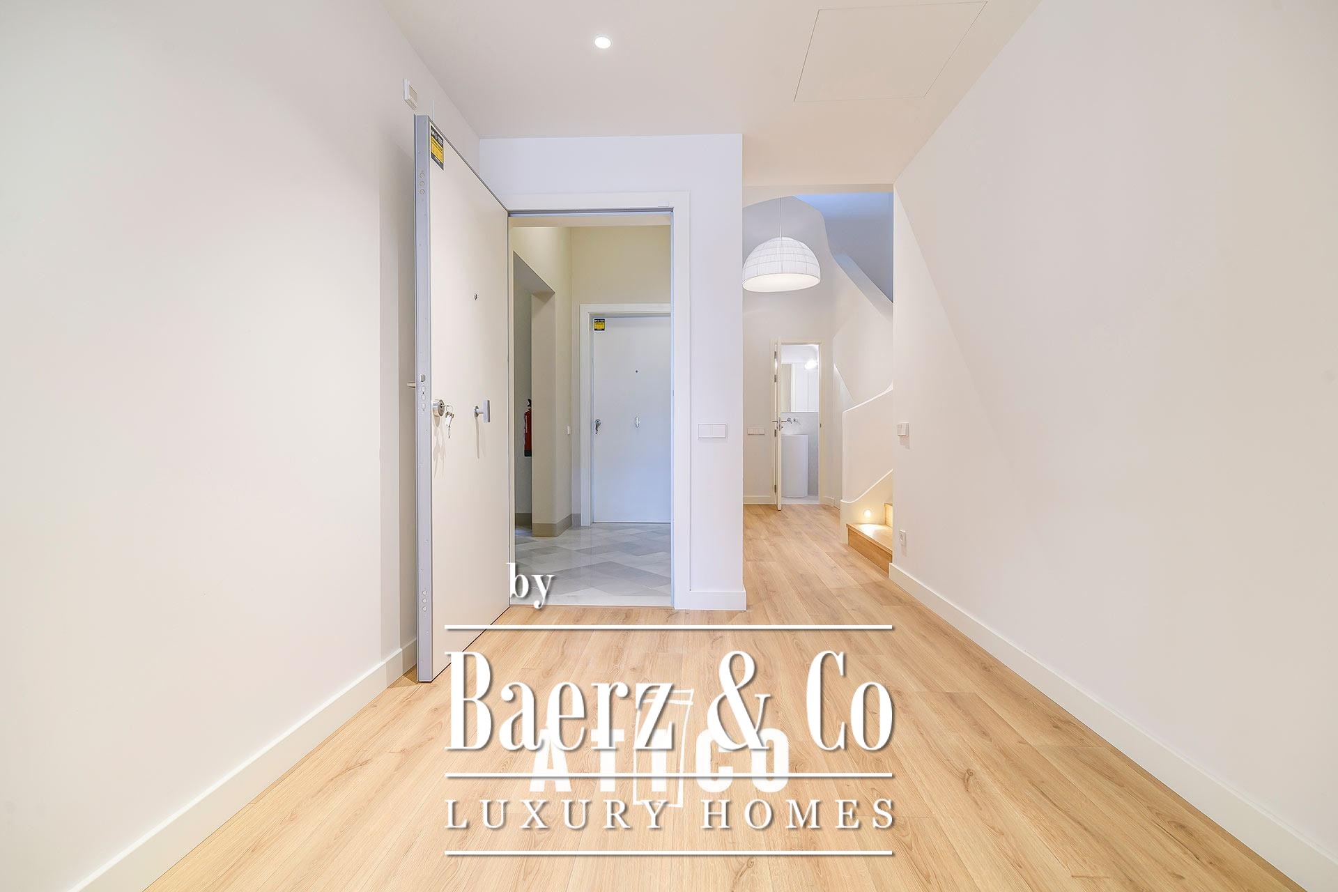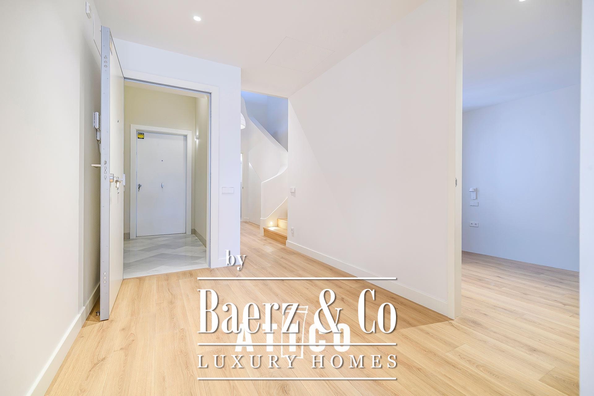 Este apartamento dúplex en Barcelona es una muestra de la sofisticación urbana, ofreciendo 212,51 m² de espacio recién renovado distribuidos en dos plantas diferenciadas. Su diseño versátil, con accesos independientes, permite diferentes opciones de privacidad, trabajo u hospitalidad, posibilitando una transición fluida entre las zonas de día y de noche o entre distintas modalidades de vida. Al entrar, una escalera moderna otorga carácter arquitectónico y conecta ambos niveles con naturalidad.