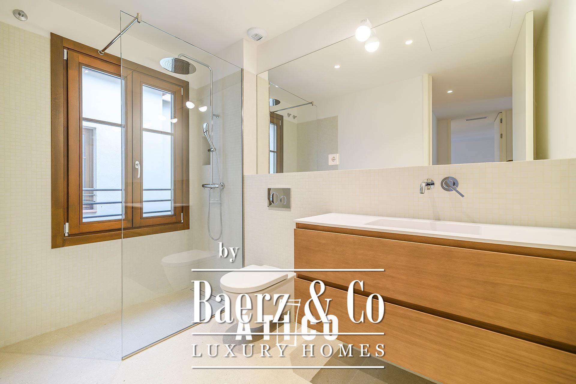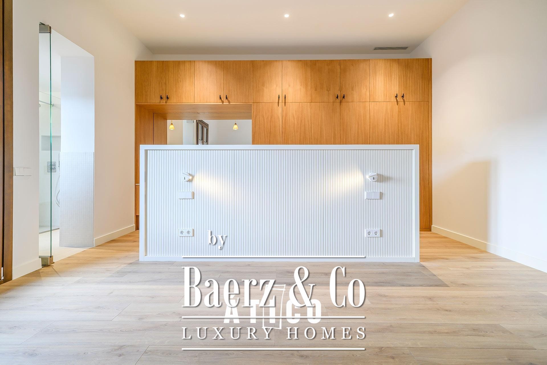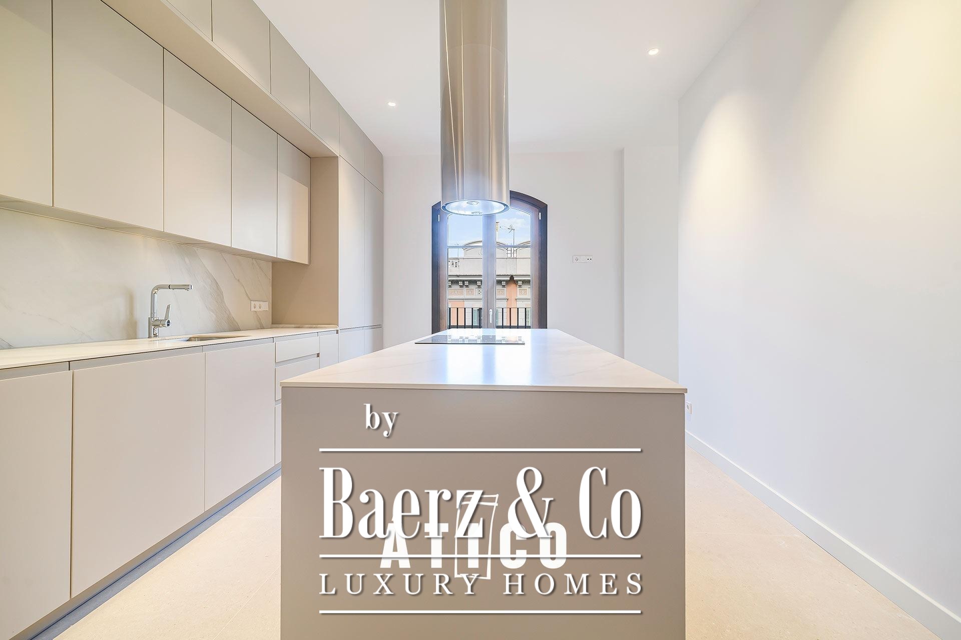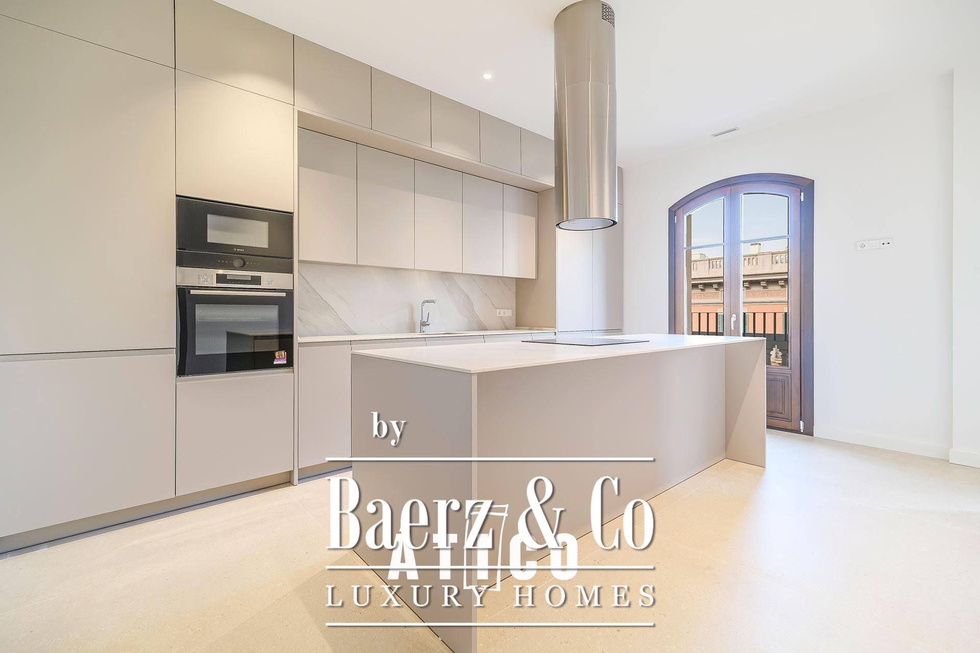 La planta superior alberga un dormitorio, una sala polivalente ideal para el ocio o el teletrabajo, y un baño completo. Una terraza de 38,85 m² amplía la experiencia al exterior, creando un ambiente propicio tanto para encuentros sociales como para disfrutar de momentos de tranquilidad bajo el cielo de la ciudad. Tres dormitorios y tres baños suman una equilibrada sensación de confort e intimidad, mientras que los materiales seleccionados y los acabados impecables evidencian una ejecución artesanal de máximo nivel. La cocina también se ha concebido cuidadosamente, proporcionando un generoso espacio de almacenaje y funcionalidad en el uso diario.