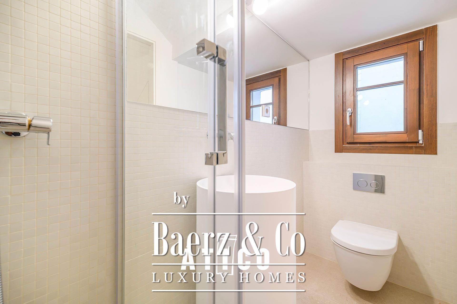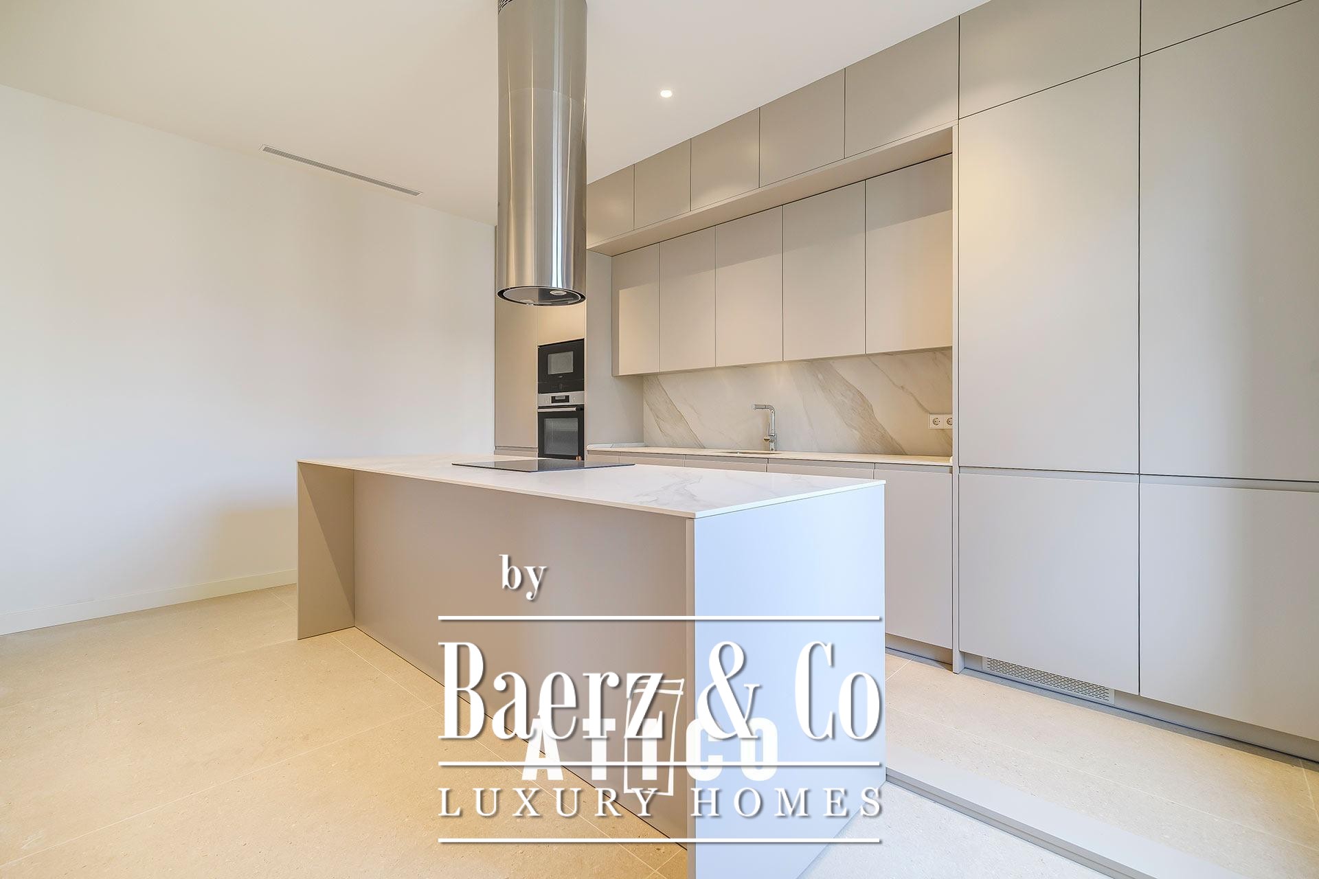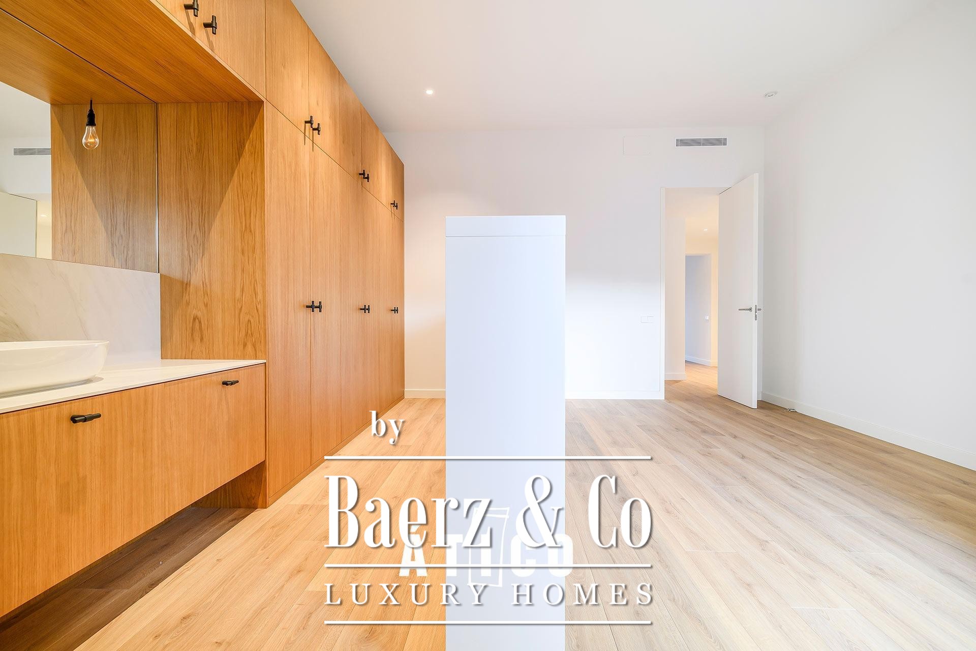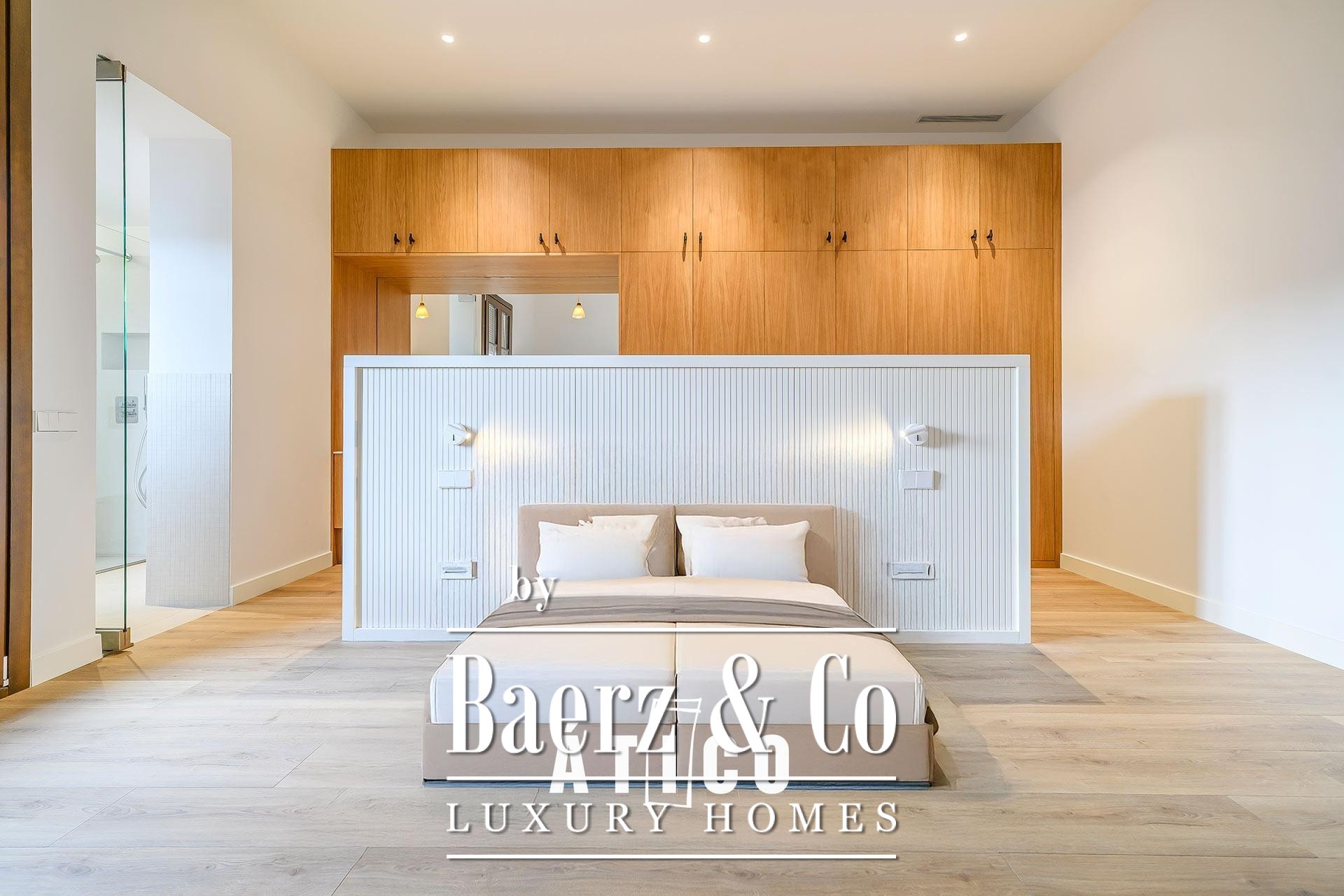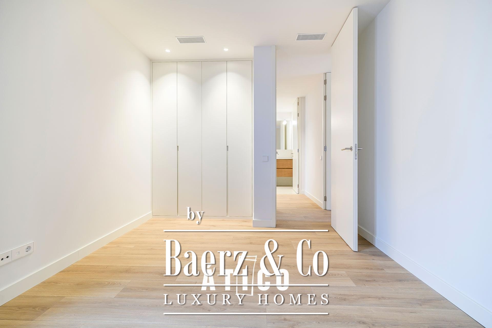 La planta superior alberga un dormitorio, una sala polivalente ideal para el ocio o el teletrabajo, y un baño completo. Una terraza de 38,85 m² amplía la experiencia al exterior, creando un ambiente propicio tanto para encuentros sociales como para disfrutar de momentos de tranquilidad bajo el cielo de la ciudad. Tres dormitorios y tres baños suman una equilibrada sensación de confort e intimidad, mientras que los materiales seleccionados y los acabados impecables evidencian una ejecución artesanal de máximo nivel. La cocina también se ha concebido cuidadosamente, proporcionando un generoso espacio de almacenaje y funcionalidad en el uso diario.