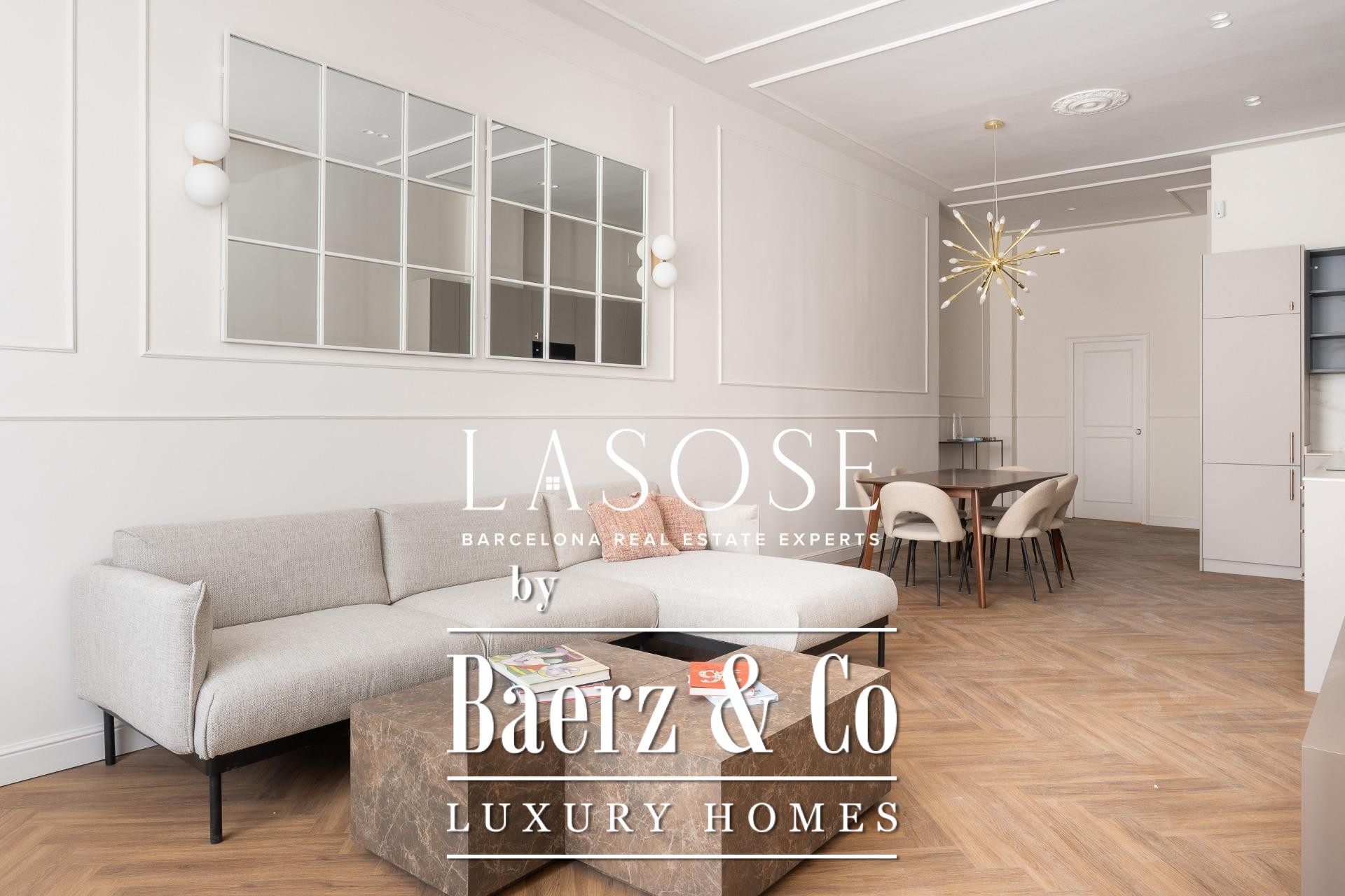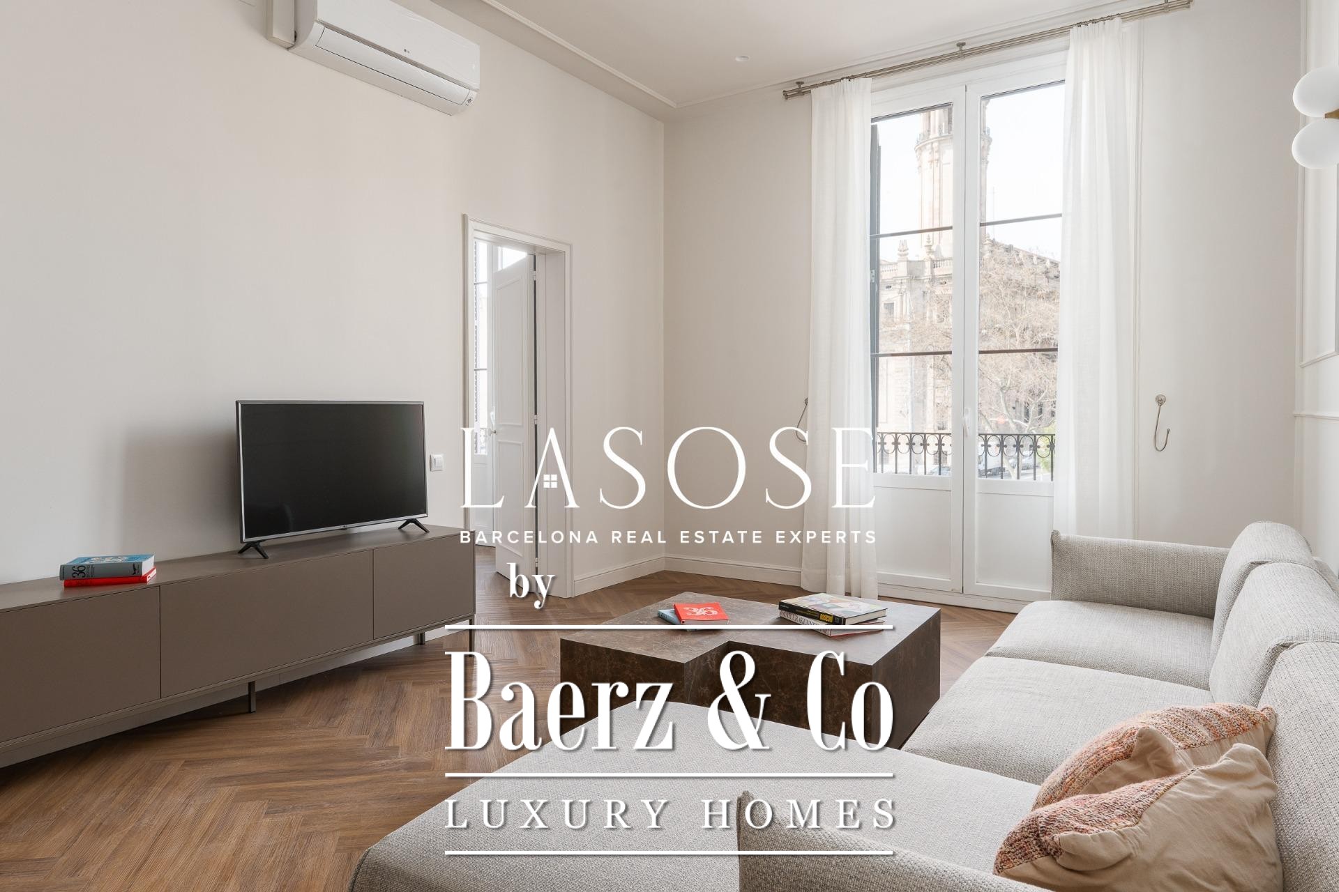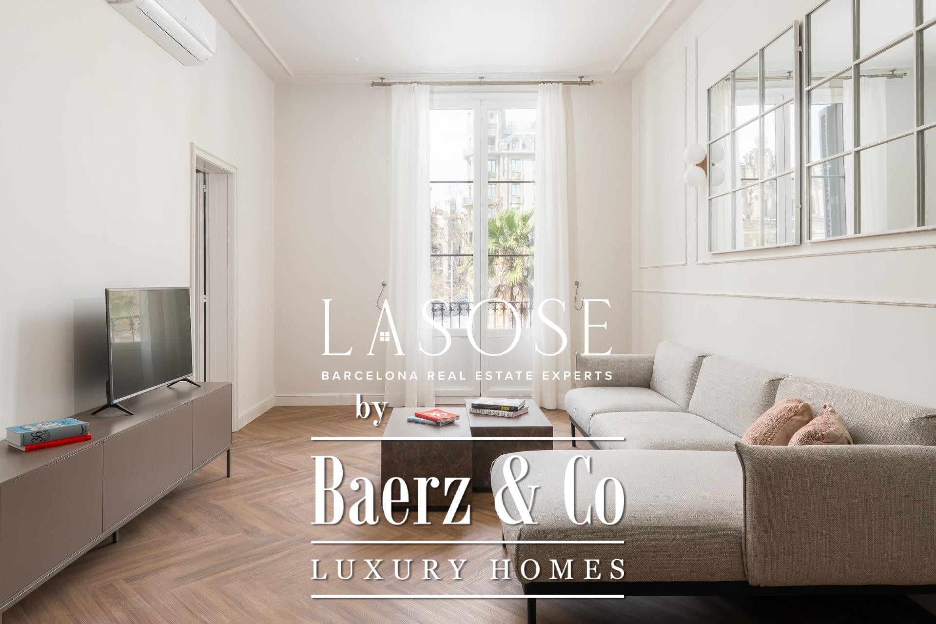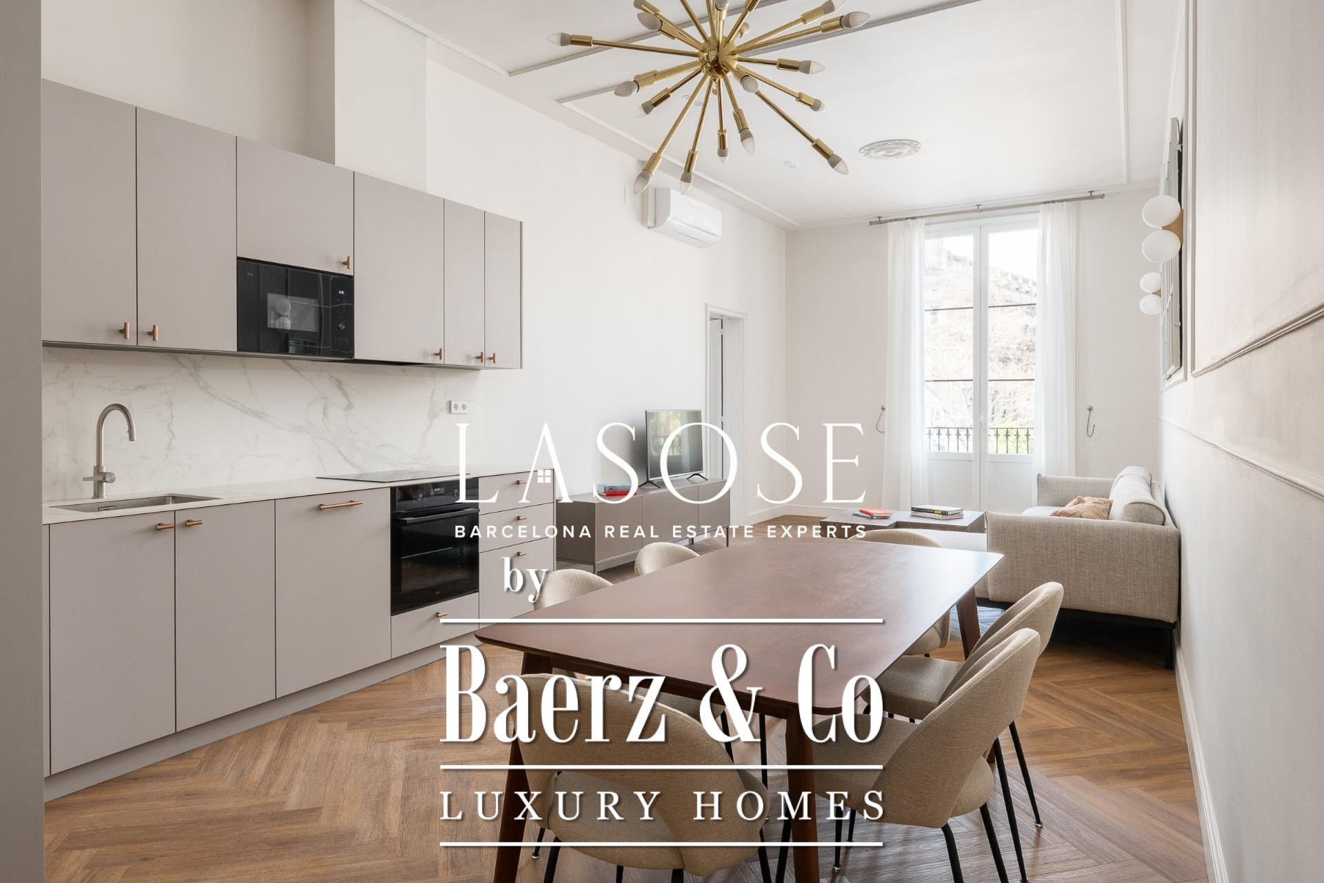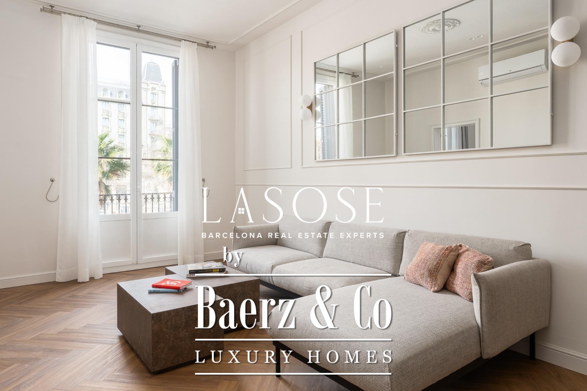El concepto de apartamento en Barcelona se redefine en esta excepcional residencia de 118 m², fruto de una meticulosa renovación dentro de un edificio histórico de 1850, actualmente catalogado como Patrimonio Local. La propiedad logra una rara armonía entre el carácter arquitectónico preservado y las expectativas del lujo contemporáneo. Al entrar, recibe una inmediata sensación de amplitud y sofisticación, con una zona de estar y comedor diáfana bañada por luz natural gracias a los amplios ventanales orientados al Paseo Isabel II. El mobiliario de diseño y los acabados de alta gama elevan cada momento vivido aquí.