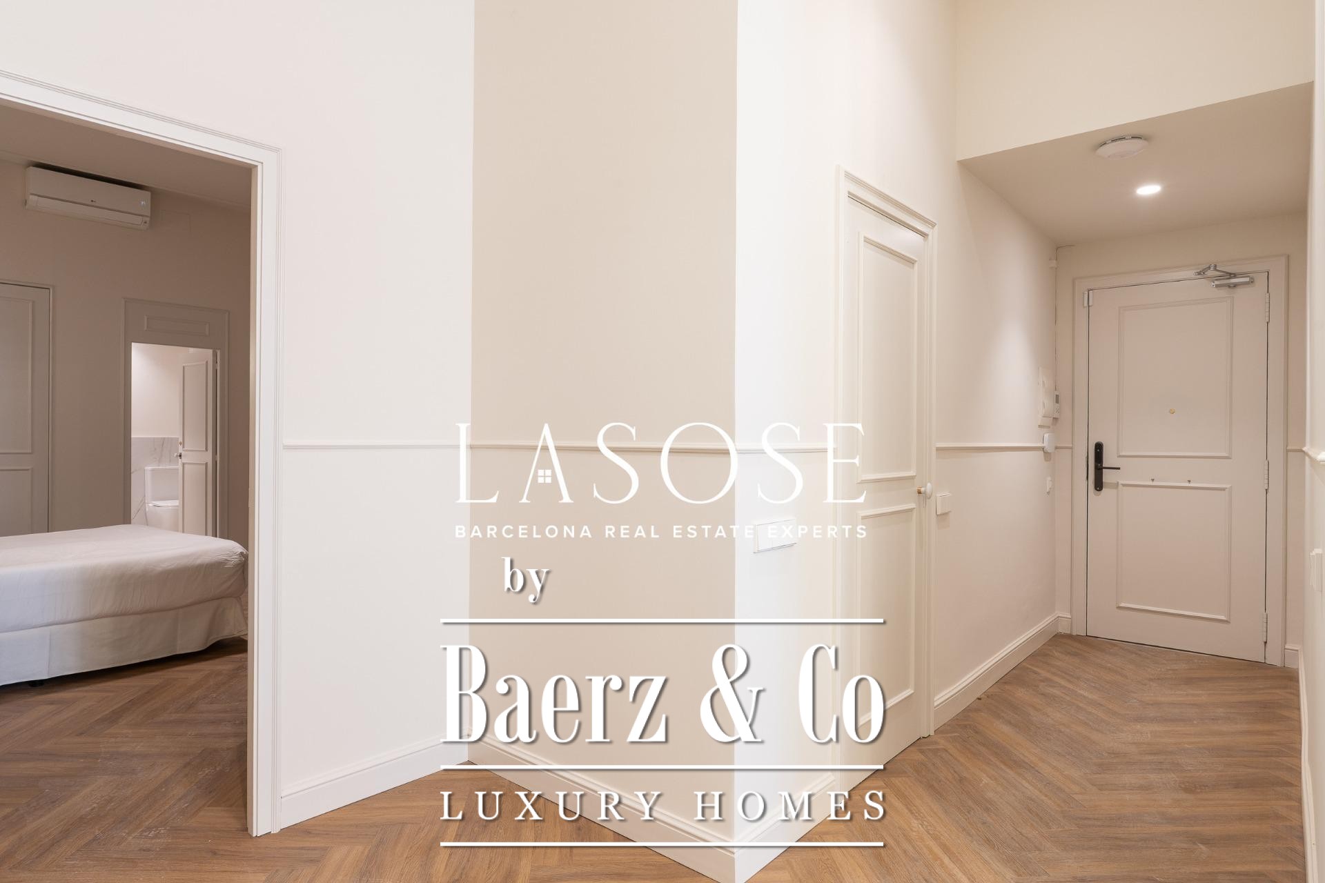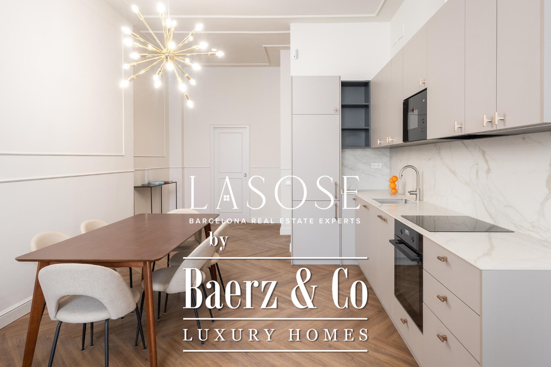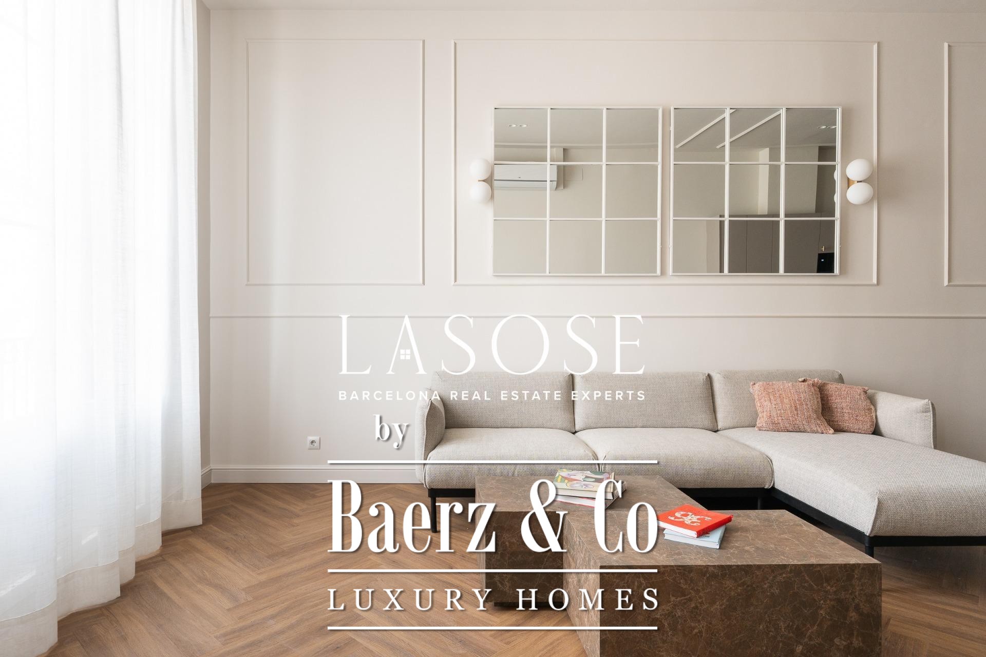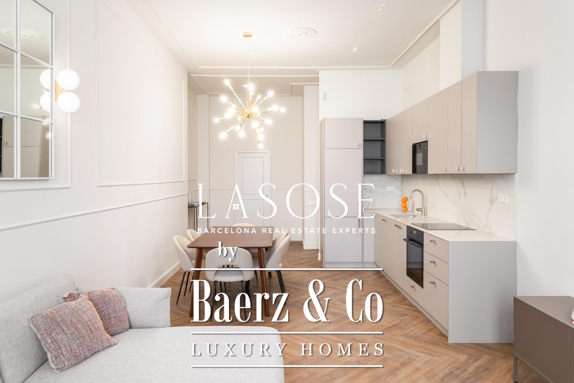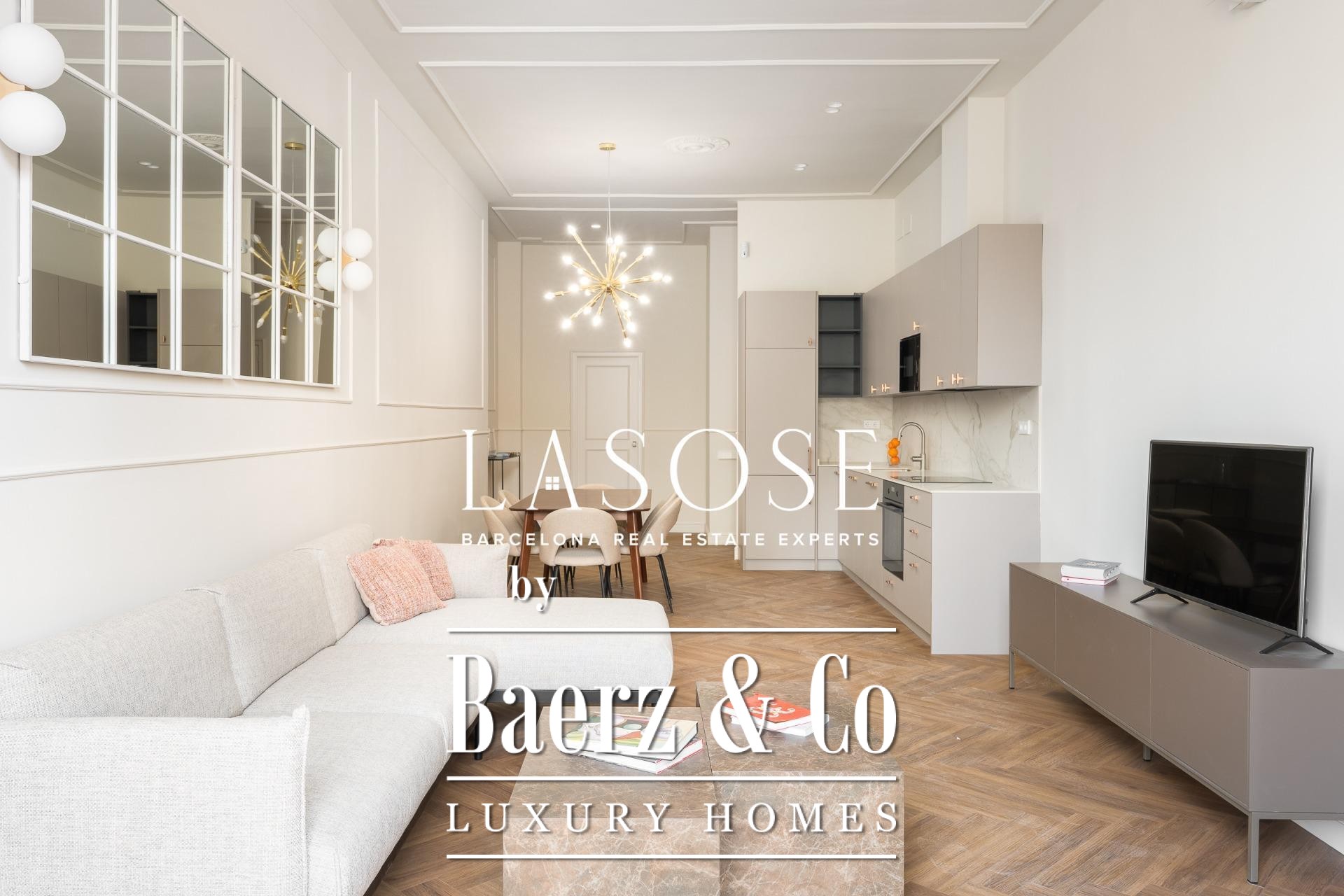 El concepto de apartamento en Barcelona se redefine en esta excepcional residencia de 118 m², fruto de una meticulosa renovación dentro de un edificio histórico de 1850, actualmente catalogado como Patrimonio Local. La propiedad logra una rara armonía entre el carácter arquitectónico preservado y las expectativas del lujo contemporáneo. Al entrar, recibe una inmediata sensación de amplitud y sofisticación, con una zona de estar y comedor diáfana bañada por luz natural gracias a los amplios ventanales orientados al Paseo Isabel II. El mobiliario de diseño y los acabados de alta gama elevan cada momento vivido aquí.