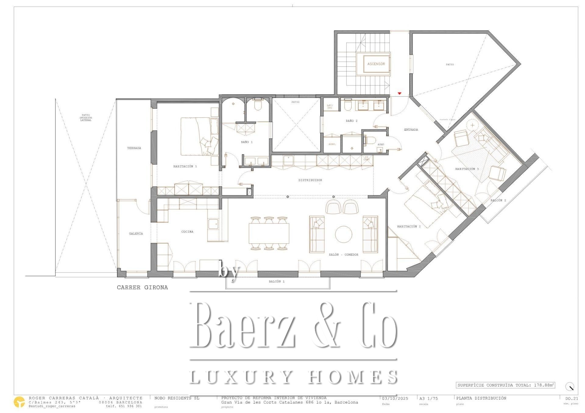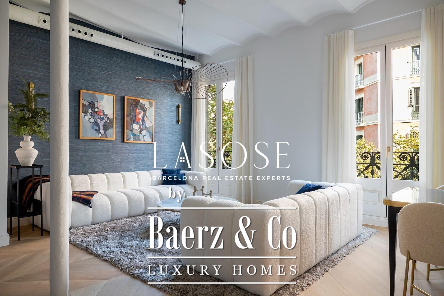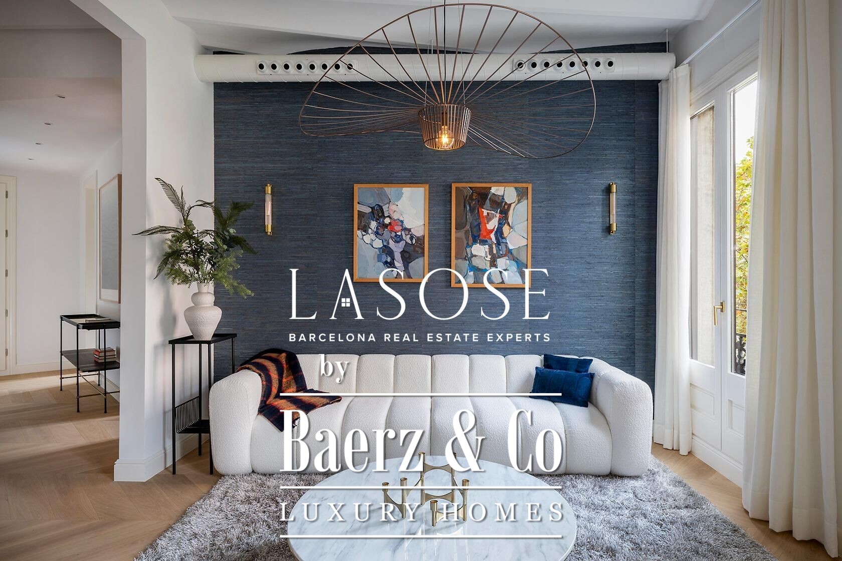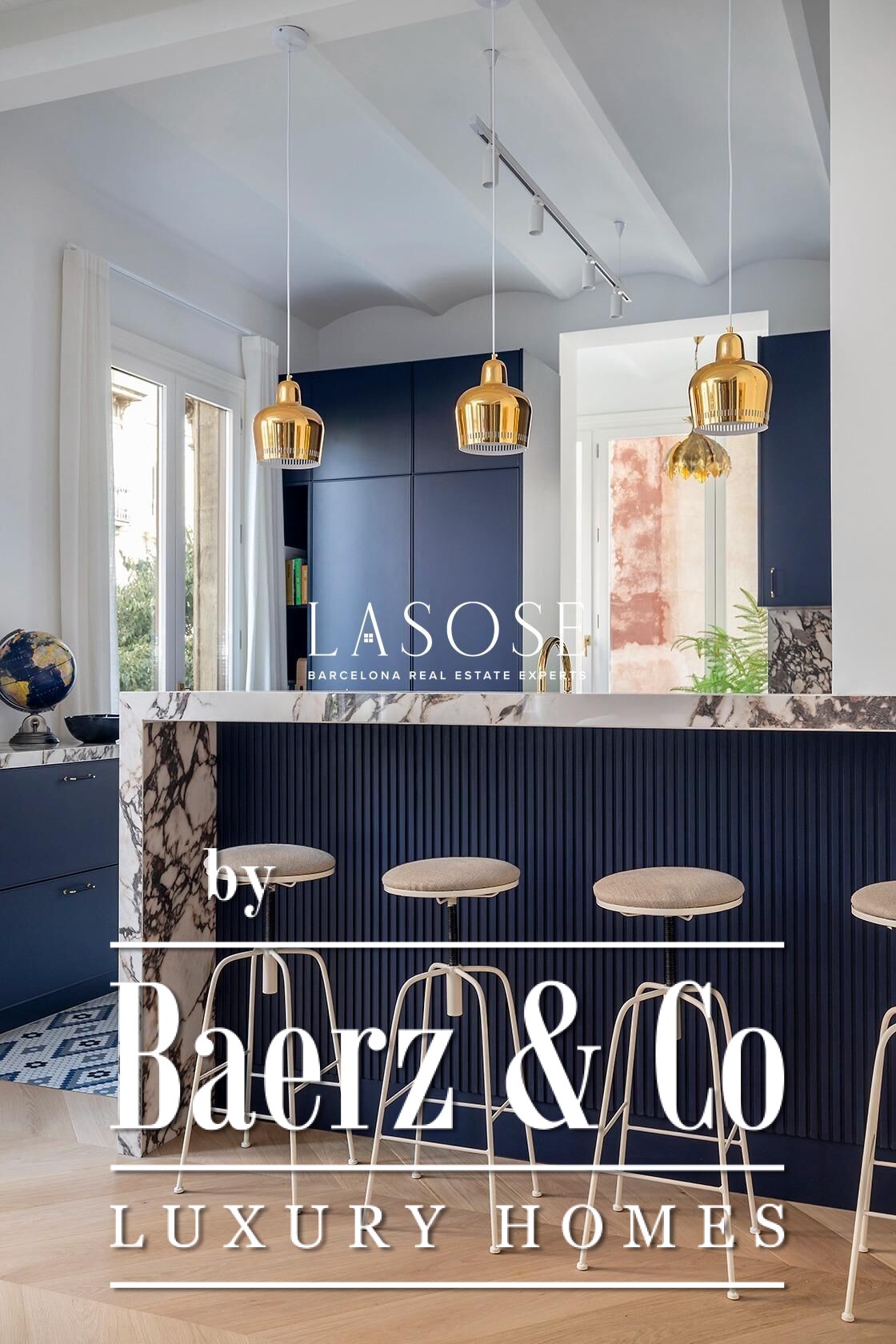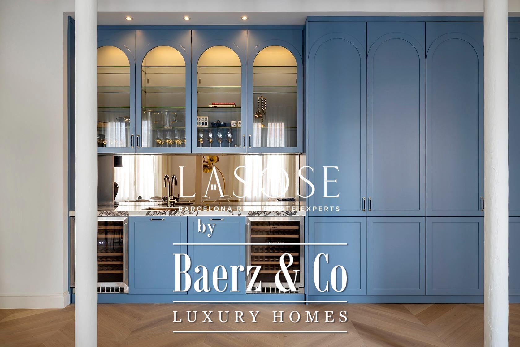 Apartamento Barcelona representa una invitación a la vida urbana refinada. Esta residencia de 199 m², situada en la tercera planta, ha sido recientemente renovada y cuidadosamente diseñada para aprovechar la luz natural; cuenta con cuatro puertas de balcón que se abren sobre la Calle Girona y grandes ventanales que realzan la atmósfera luminosa. La distribución fluye de manera armónica desde la cocina de concepto abierto y el comedor hasta un salón realzado por una barra a medida y una despensa con dos vinotecas y un segundo lavavajillas.