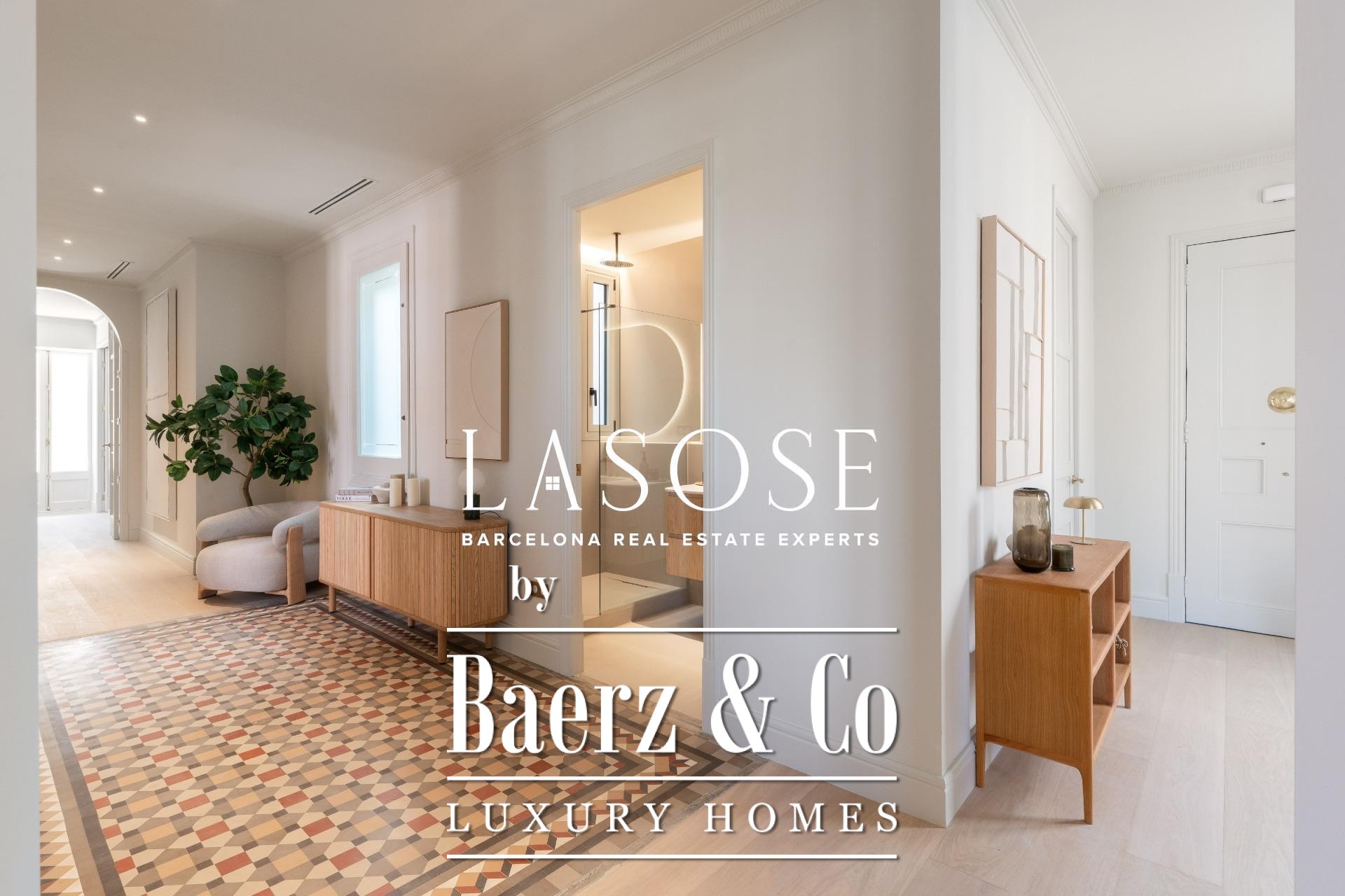 El ático Barcelona Quadrat d'Or se sitúa en la codiciada intersección de la Calle Girona con la Gran Via de les Corts Catalanes, ofreciendo 201 m² de elegante espacio habitacional complementado por una terraza de 20 m². Esta residencia fusiona historia y diseño contemporáneo, a unos pasos del Passeig de Gràcia y la Plaça Catalunya. Rodeado de hoteles, teatros, restaurantes, colegios, tiendas exclusivas y con excelente conexión de transporte público, le sitúa en el corazón del emblemático Quadrat d'Or de Barcelona.