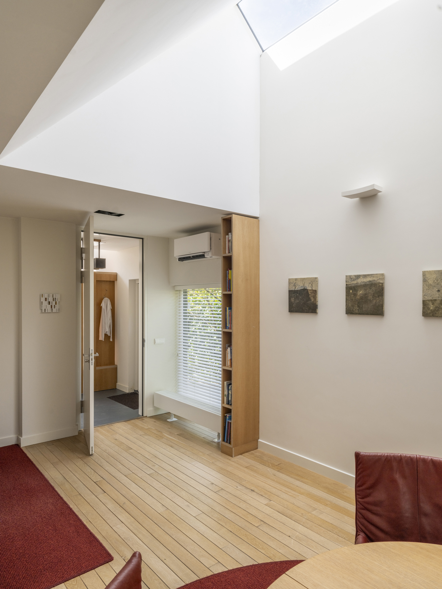 La vivienda abarca 248 m² sobre una parcela privada de 2.395 m², encontrando el equilibrio entre apertura y estructura. Al entrar, la alta puerta principal da paso a una conjunción de líneas entre pasado y presente: carpintería a medida, cocina en forma de U con madera al corte y piedra natural, y un salón orientado hacia jardines maduros. En toda la propiedad, las vigas originales y las estufas danesas de alta eficiencia aportan calidez. La distribución incluye cuatro dormitorios, un baño sofisticado con ducha a ras de suelo e iluminación integrada, y espacios multifuncionales aptos como consulta profesional o alojamiento para invitados con entrada independiente.
