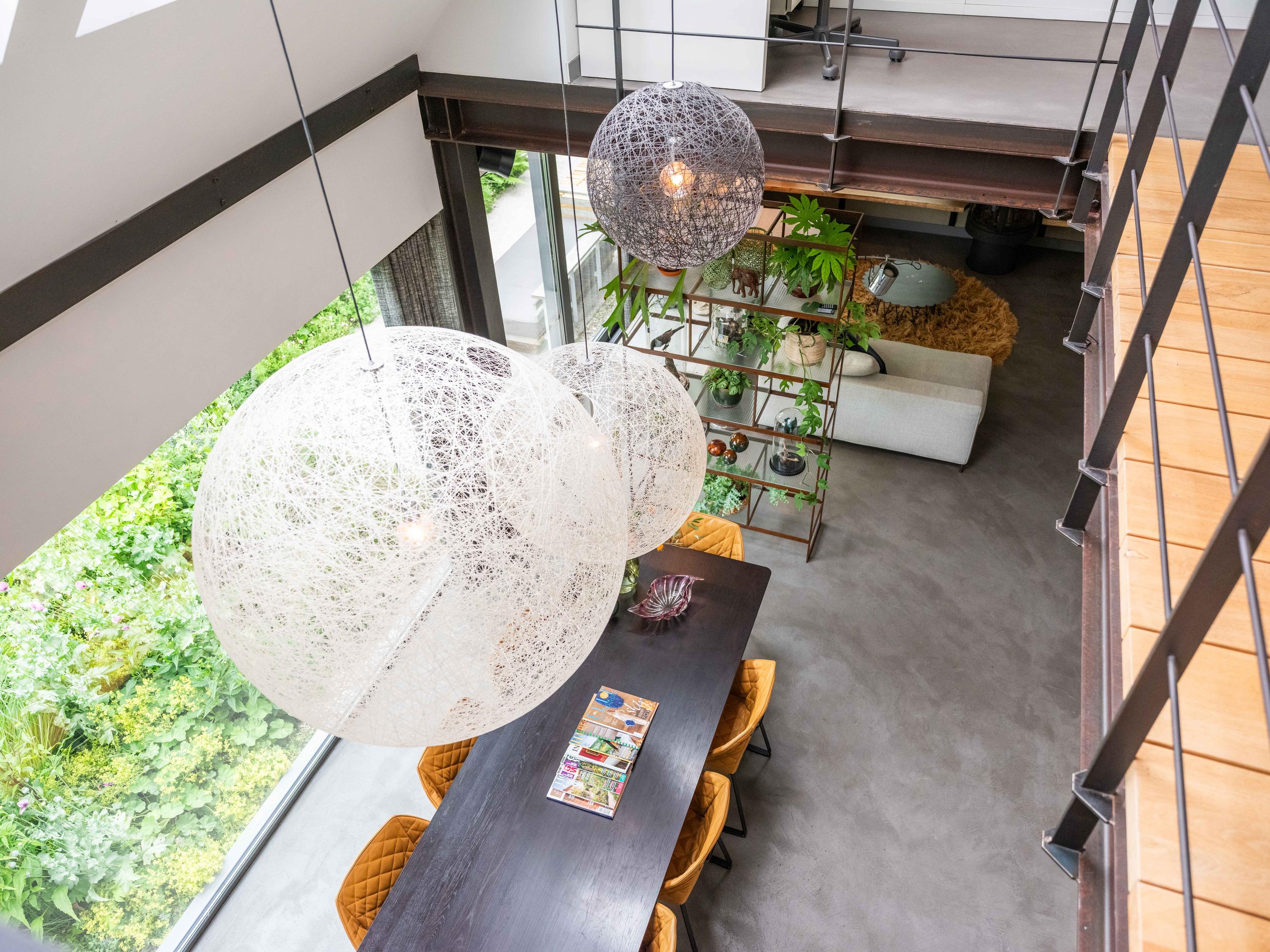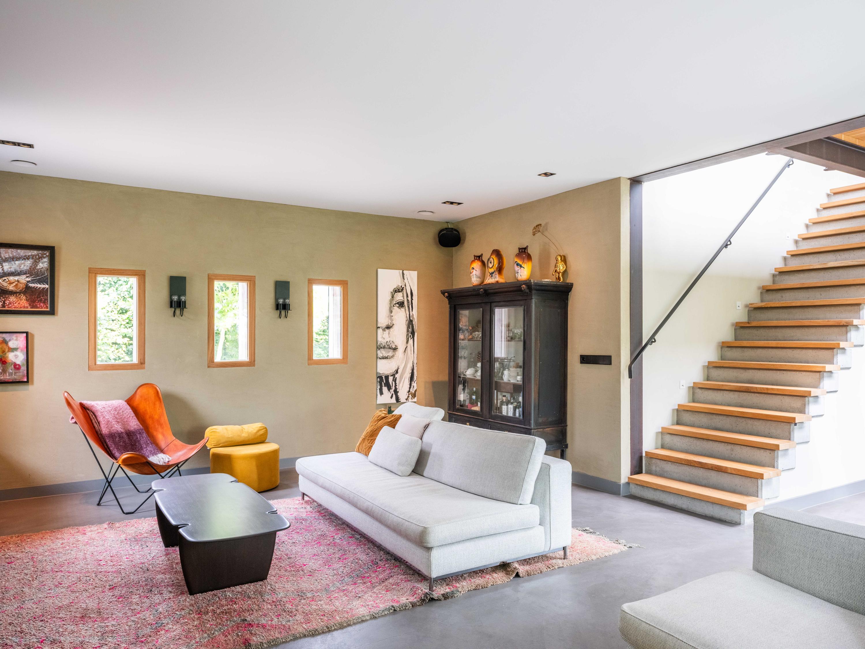 La entrada conduce a una sala de estar de concepto abierto y una cocina totalmente equipada, pensadas para quienes disfrutan tanto de la cocina como de los encuentros sociales. El ritmo espacial de la casa se define por una llamativa escalera que lleva a la primera planta, donde dos tranquilos dormitorios y dos refinados baños han sido diseñados para el confort diario. Armarios a medida y una zona de trabajo completan la distribución diáfana de tipo loft, manteniendo un flujo de espacio continuo.