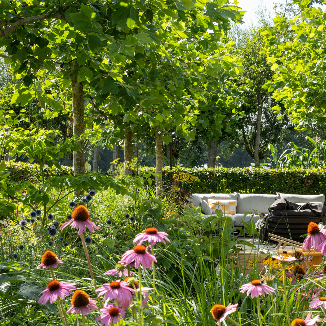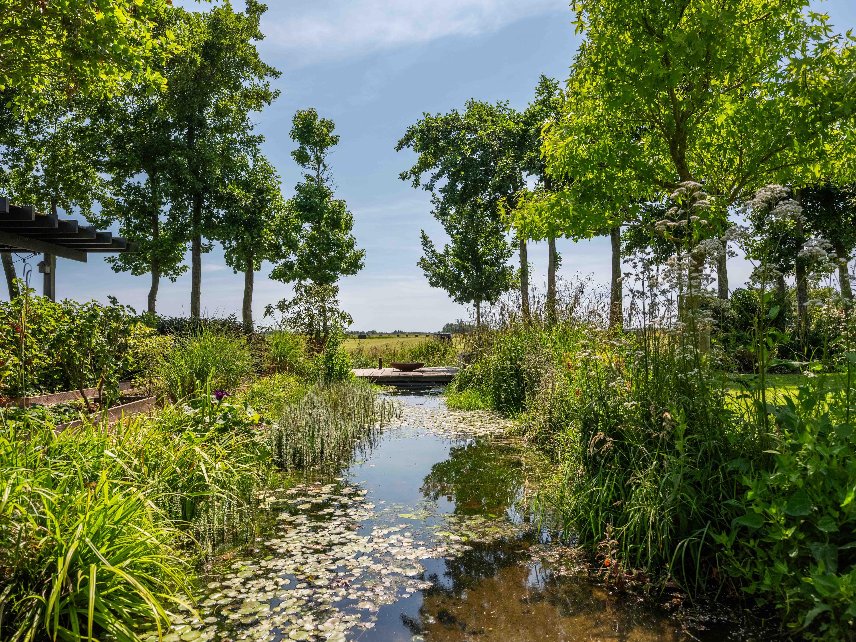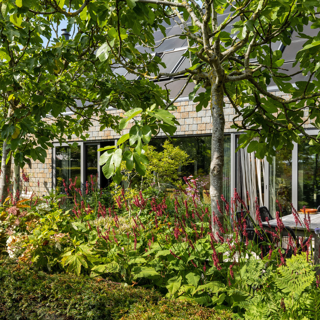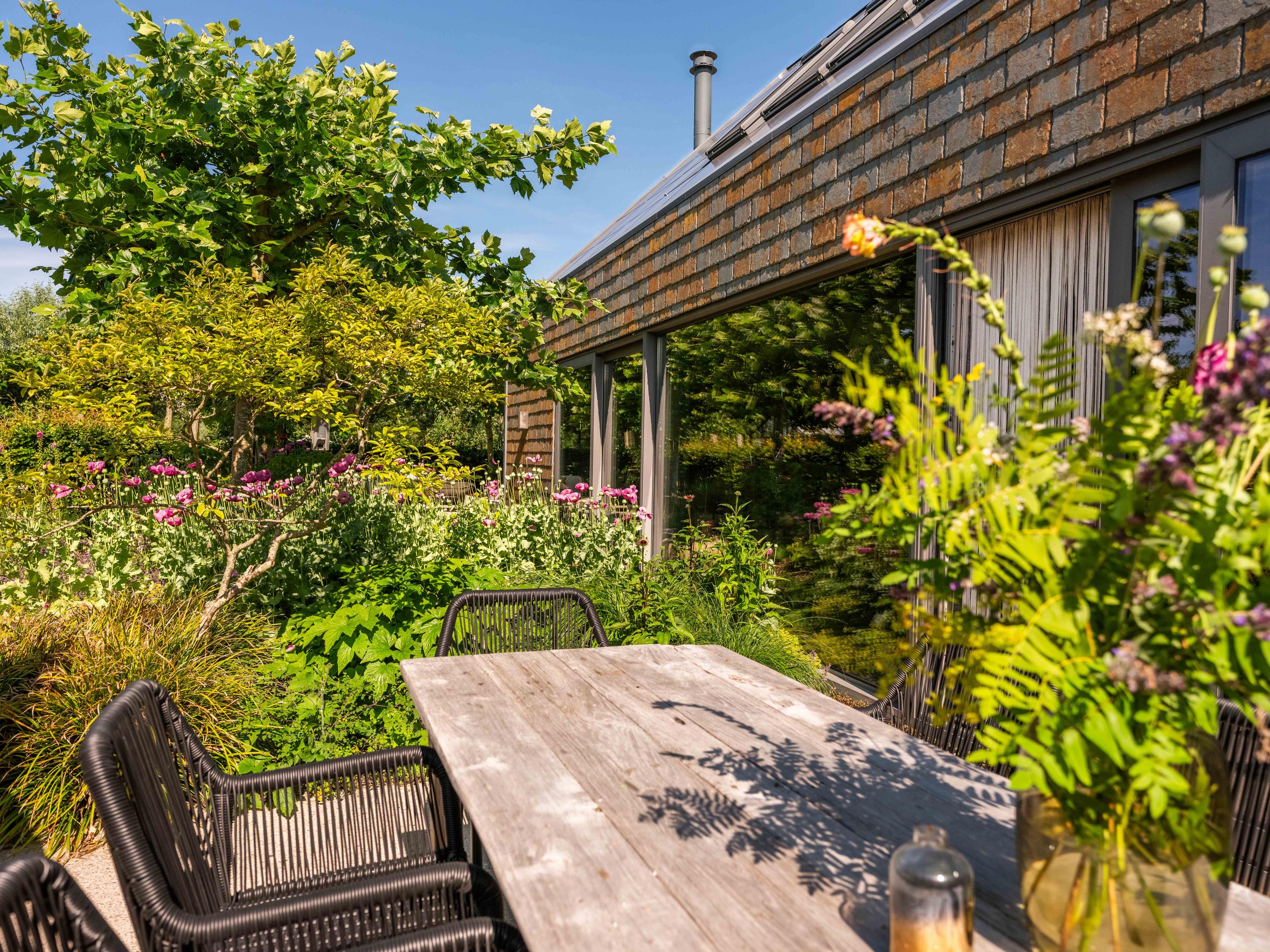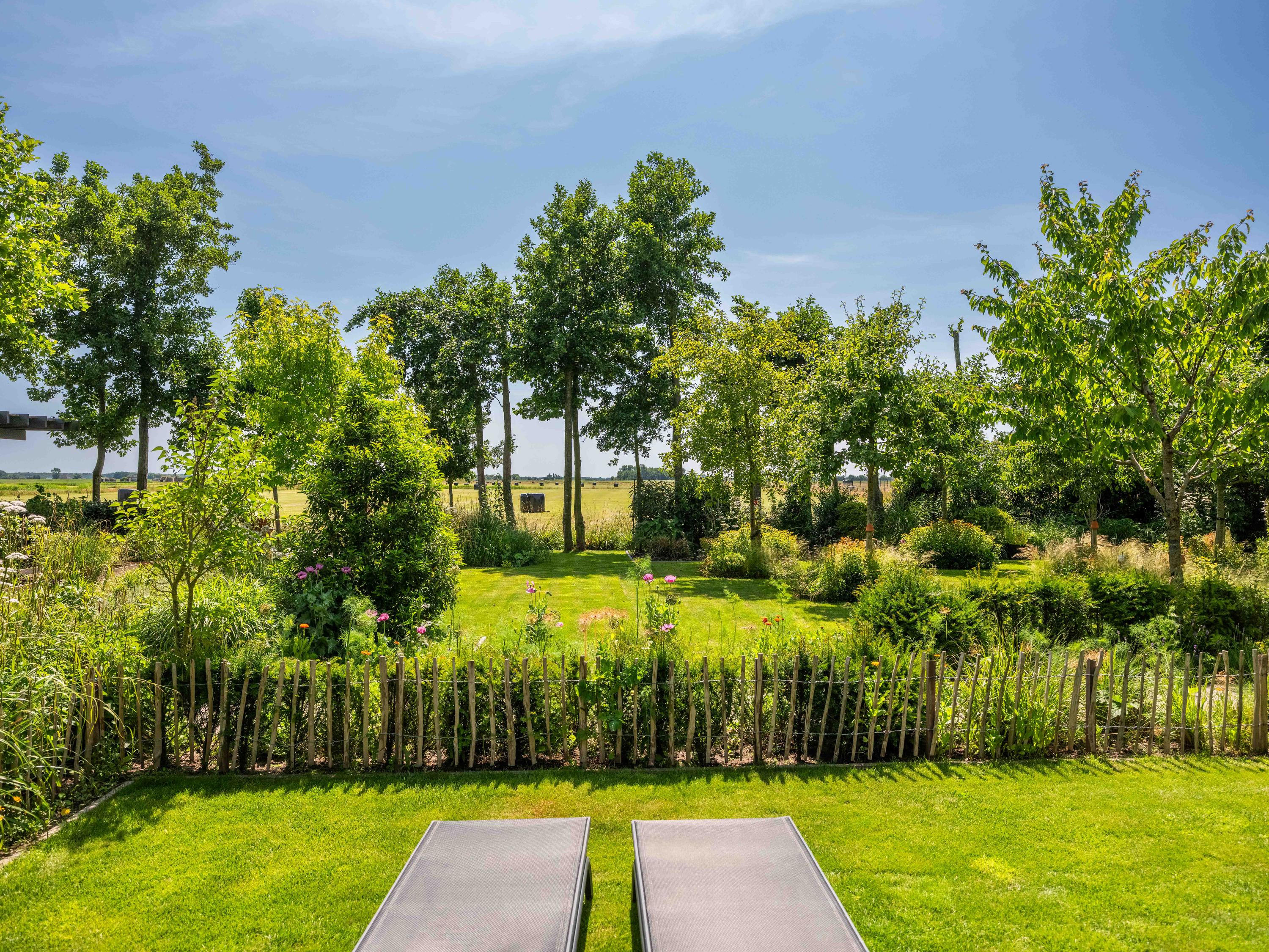Los jardines paisajísticos proporcionan distintos espacios para el descanso o la inspiración—un invernadero, huerto, gallinero y una espaciosa terraza diseñada para la vida exterior. Desde aquí, el horizonte es verde y sin interrupciones, transmitiendo paz y belleza contemplativa.