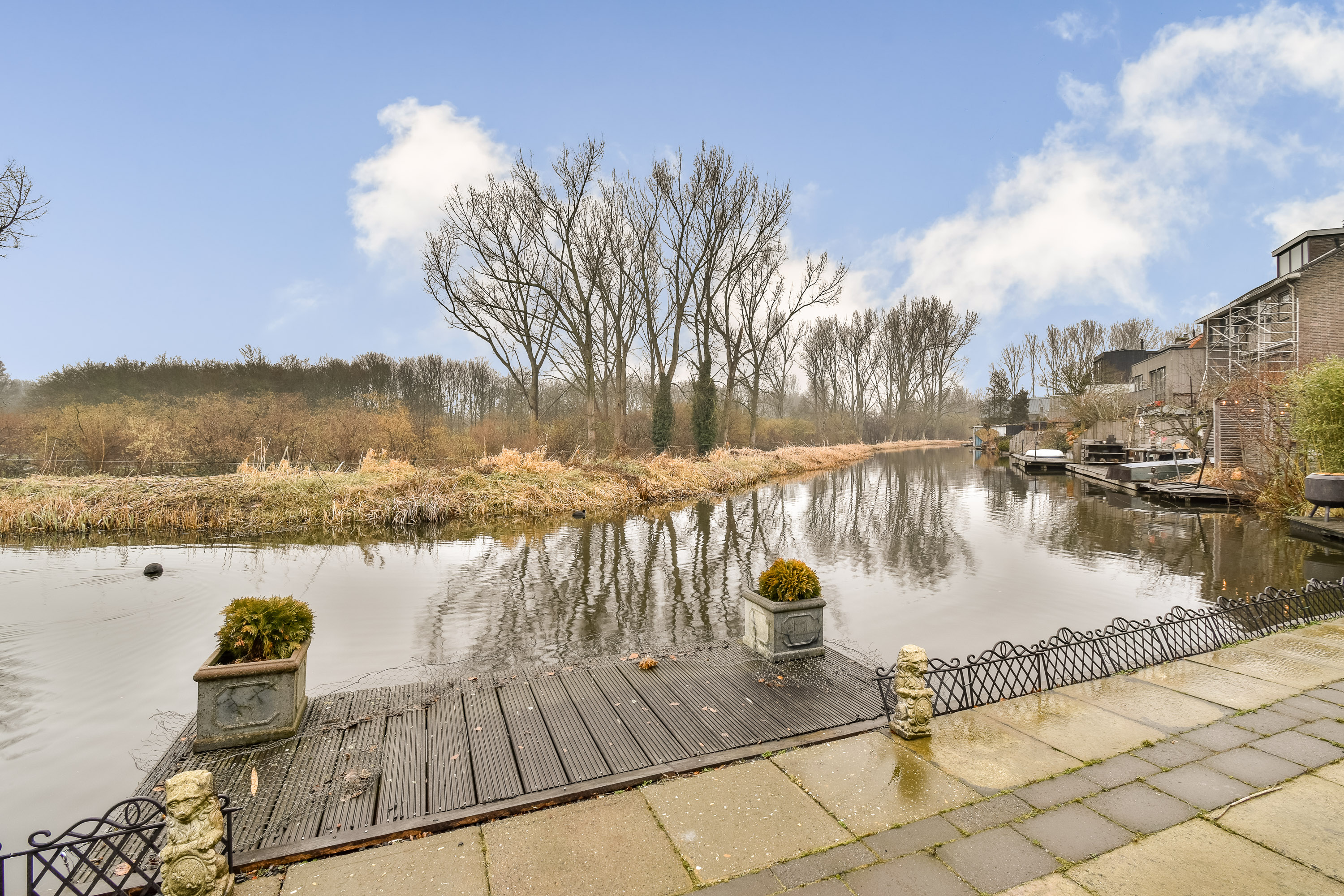 La casa pareada en Bergschenhoek se extiende a lo largo del río Rotte, en un entorno definido por aguas abiertas y la exuberante vegetación de Rottemeren y Lage Bergse Bos. Esta residencia de 123 m² ofrece una privacidad poco común y vistas ininterrumpidas, gracias a su embarcadero privado que se adentra desde el jardín orientado al norte hacia las tranquilas aguas.