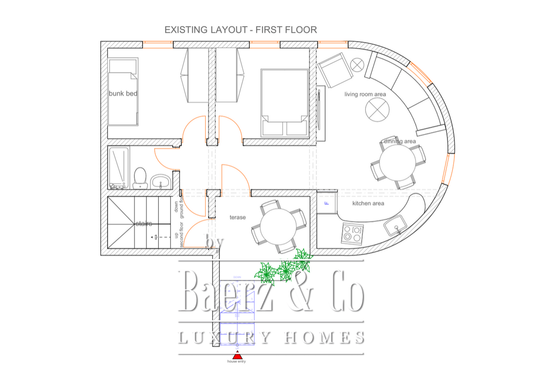 Esta vivienda consta de tres niveles, cada uno con un apartamento independiente de 50 metros cuadrados. La fachada de piedra evoca la herencia arquitectónica de la región y se integra con elegancia en el entorno. El estacionamiento privado para dos vehículos y la conexión directa por carretera asfaltada permiten una llegada cómoda, mientras la entrada en la primera planta aporta un extra de exclusividad.