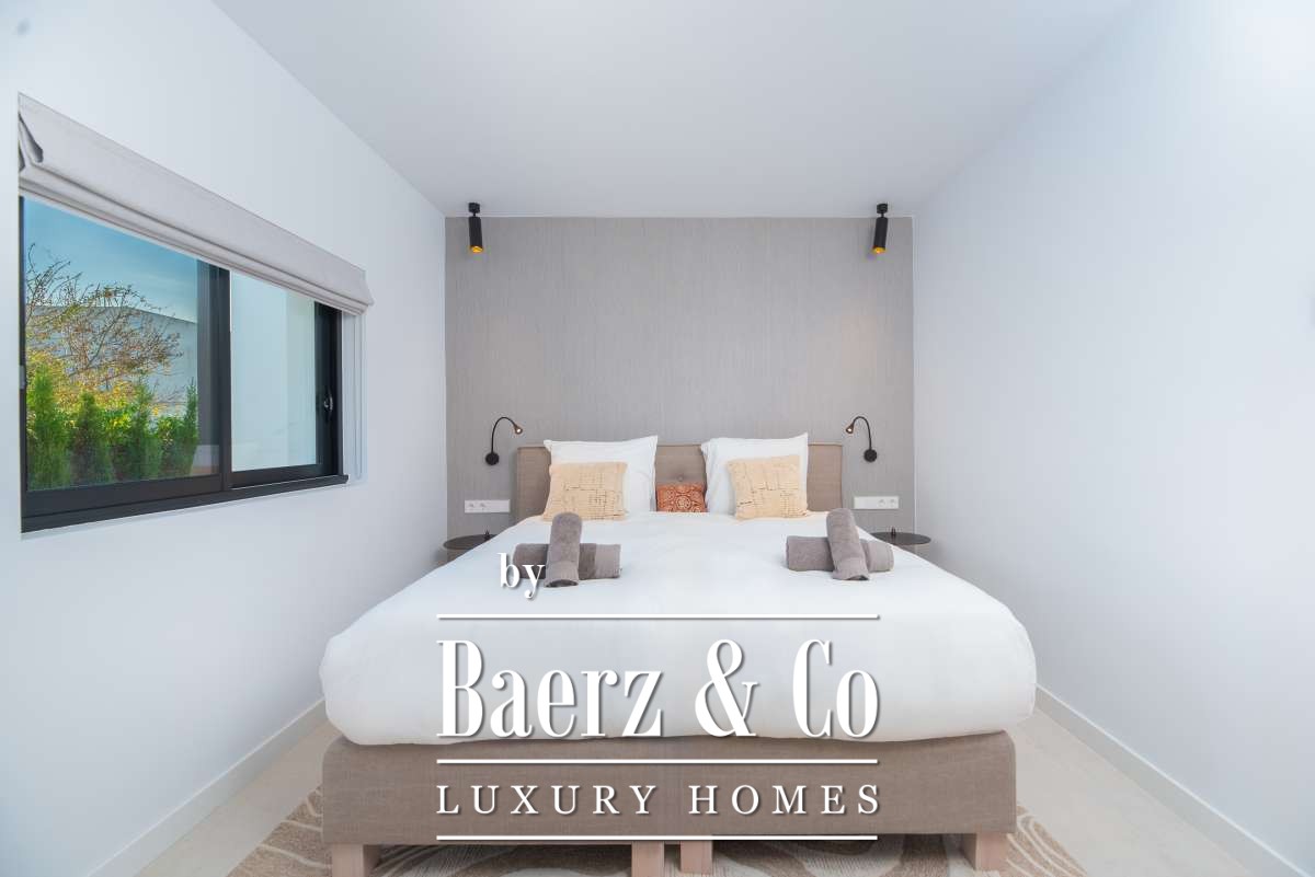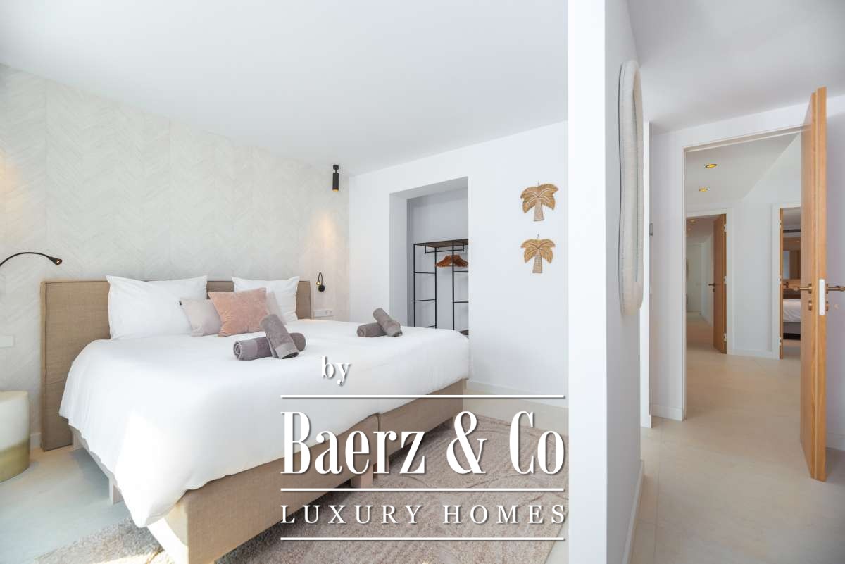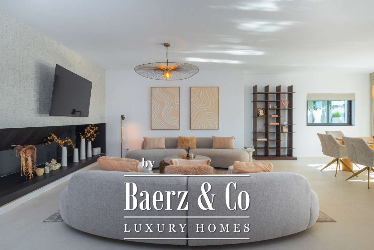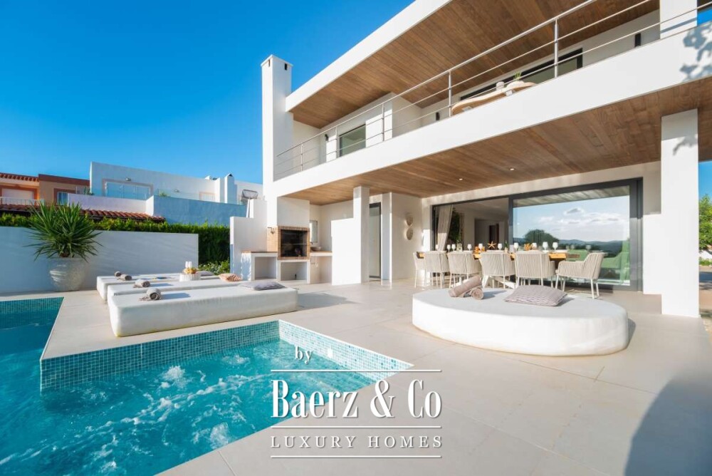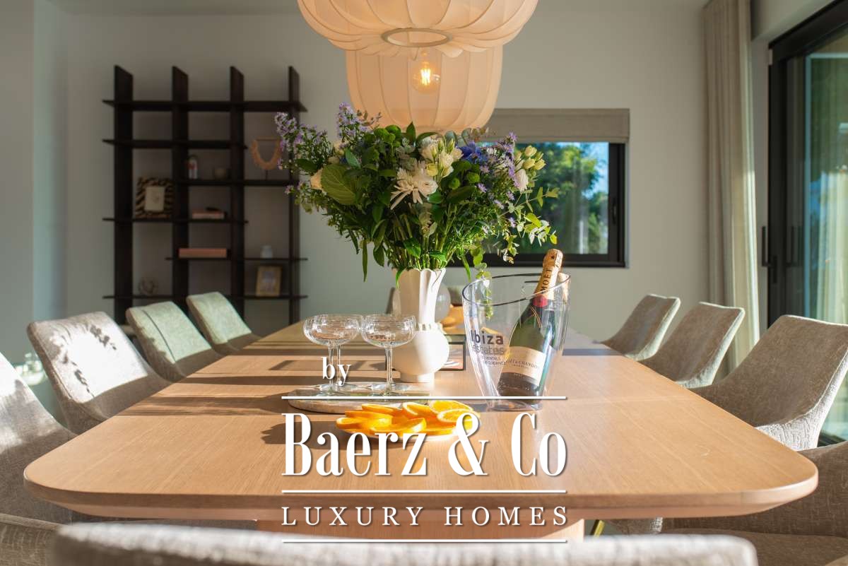 La vida al aire libre se disfruta con piscina privada, porche cubierto para comer al aire libre, barbacoa integrada y varias terrazas. Jardines paisajísticos, terraza en la azotea, tumbonas y terrenos completamente vallados garantizan privacidad y tranquilidad. Entre las características adicionales destacan el garaje y aparcamiento exterior, sistema de alarma y servicios como internet, doble acristalamiento y seguridad inteligente. Esta villa en Can Ramón resume la sofisticada vida mediterránea con acceso privilegiado a las playas, puertos deportivos y vida urbana de Ibiza.