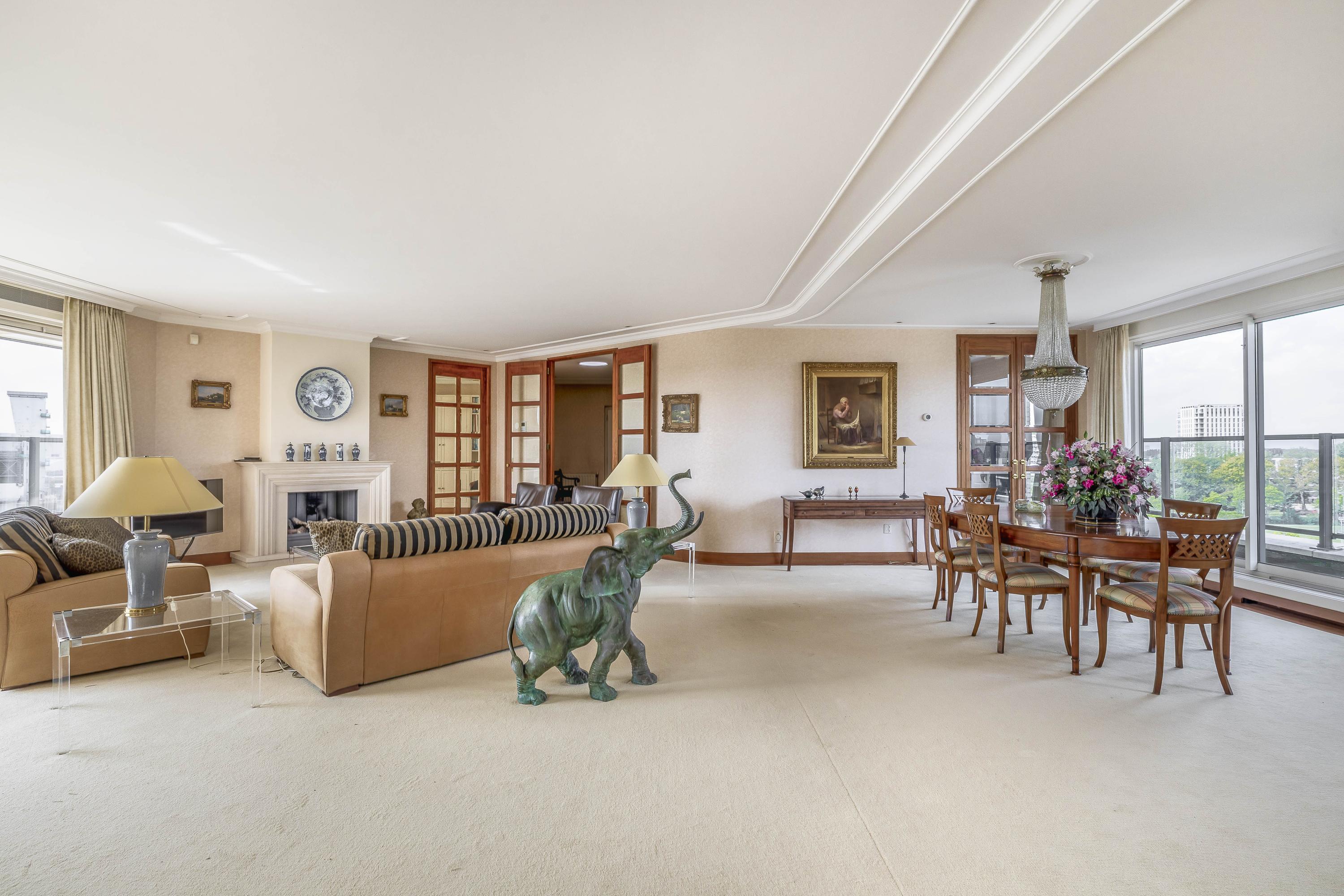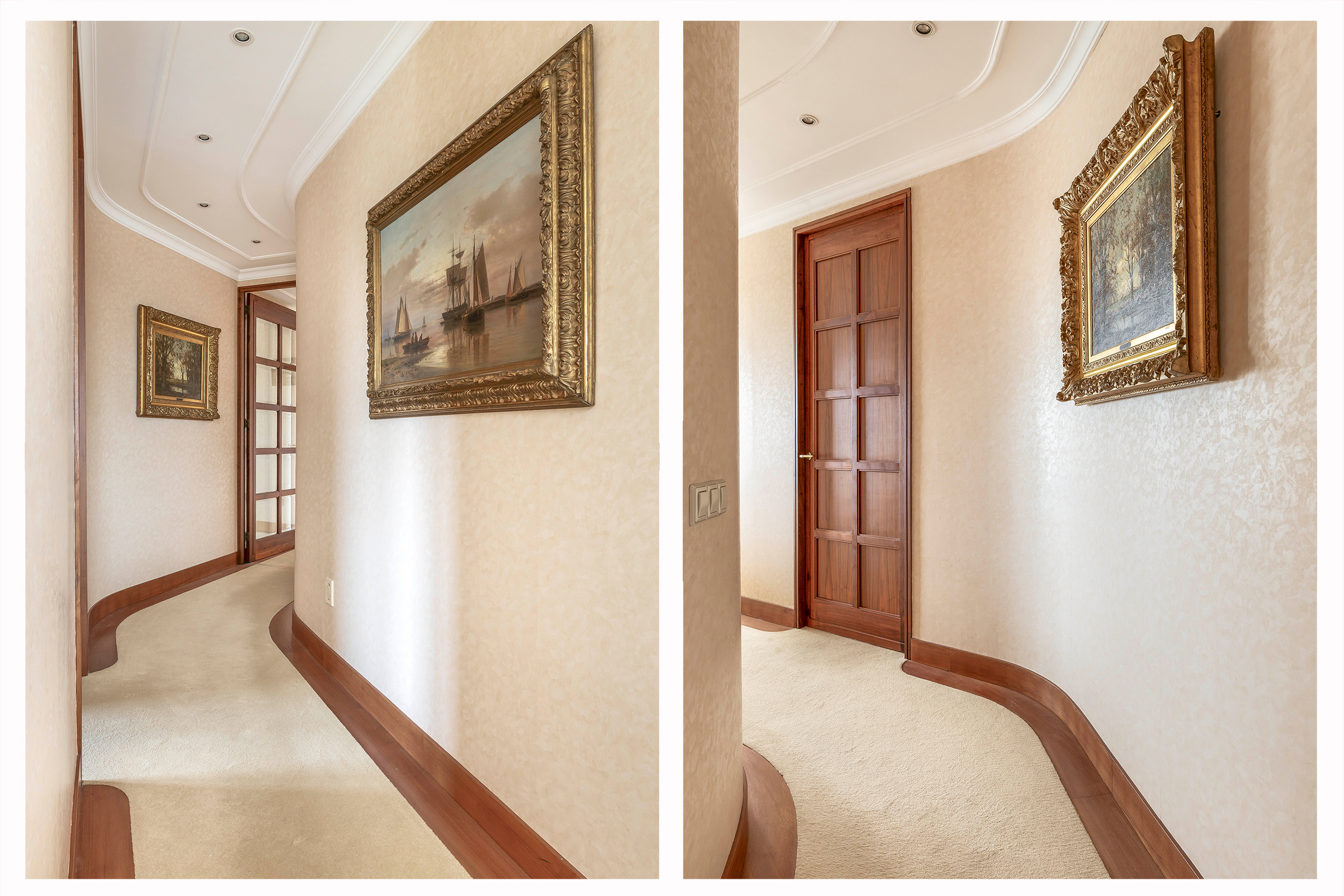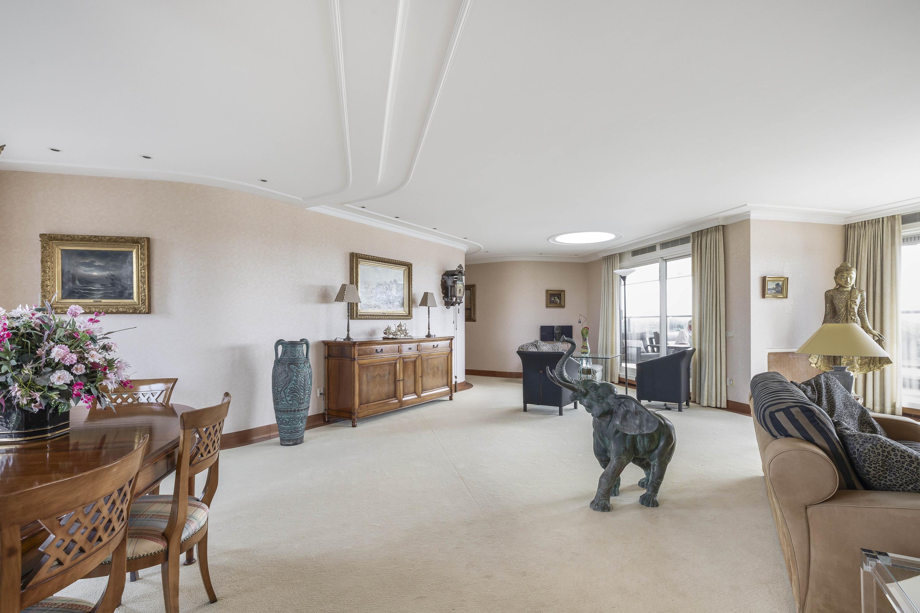 El diseño se define por líneas puras y elementos espaciales redondeados, con detalles cuidadosamente elaborados en toda la vivienda. La cocina en U está equipada con electrodomésticos integrados de alta gama y una despensa interna, combinando funcionalidad y refinamiento. La suite principal cuenta con un amplio vestidor y un lavadero independiente, y todas las áreas habitables se benefician de una avanzada insonorización, aire acondicionado y un sistema central de aspiración.