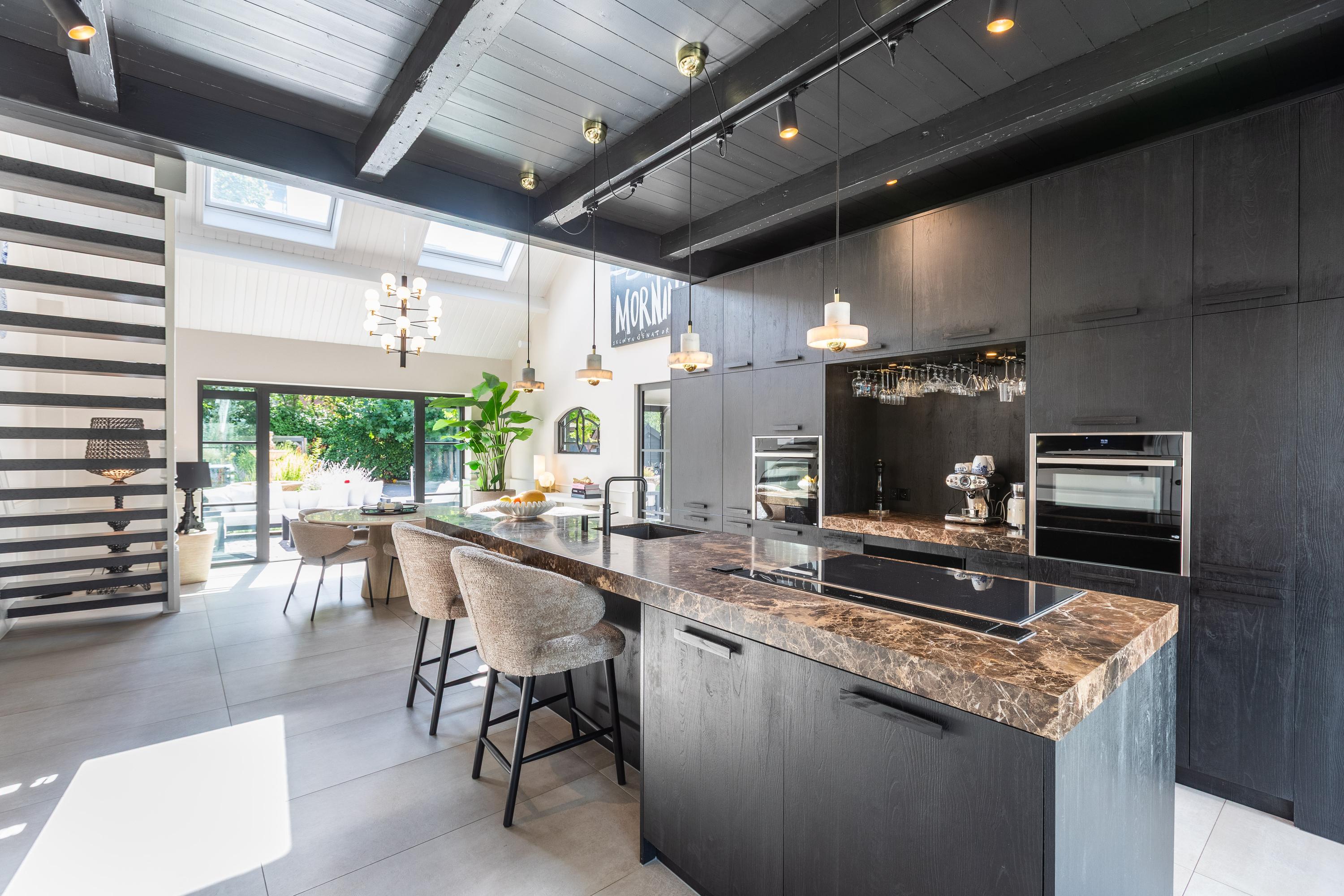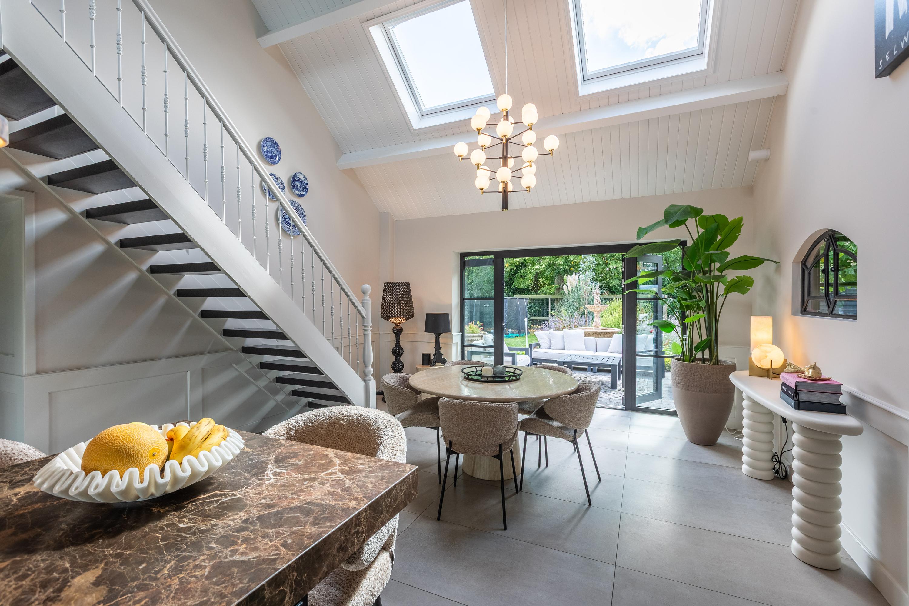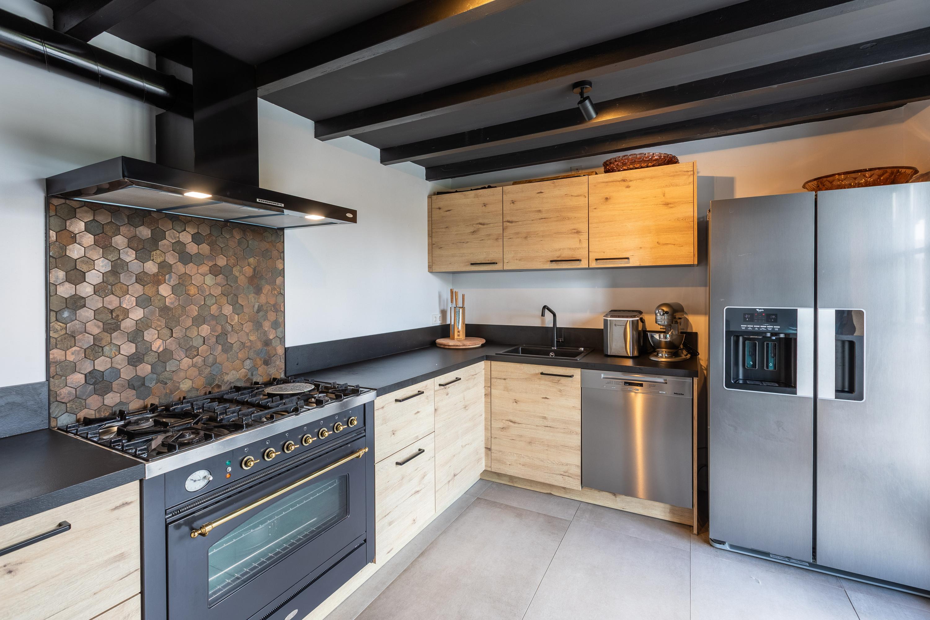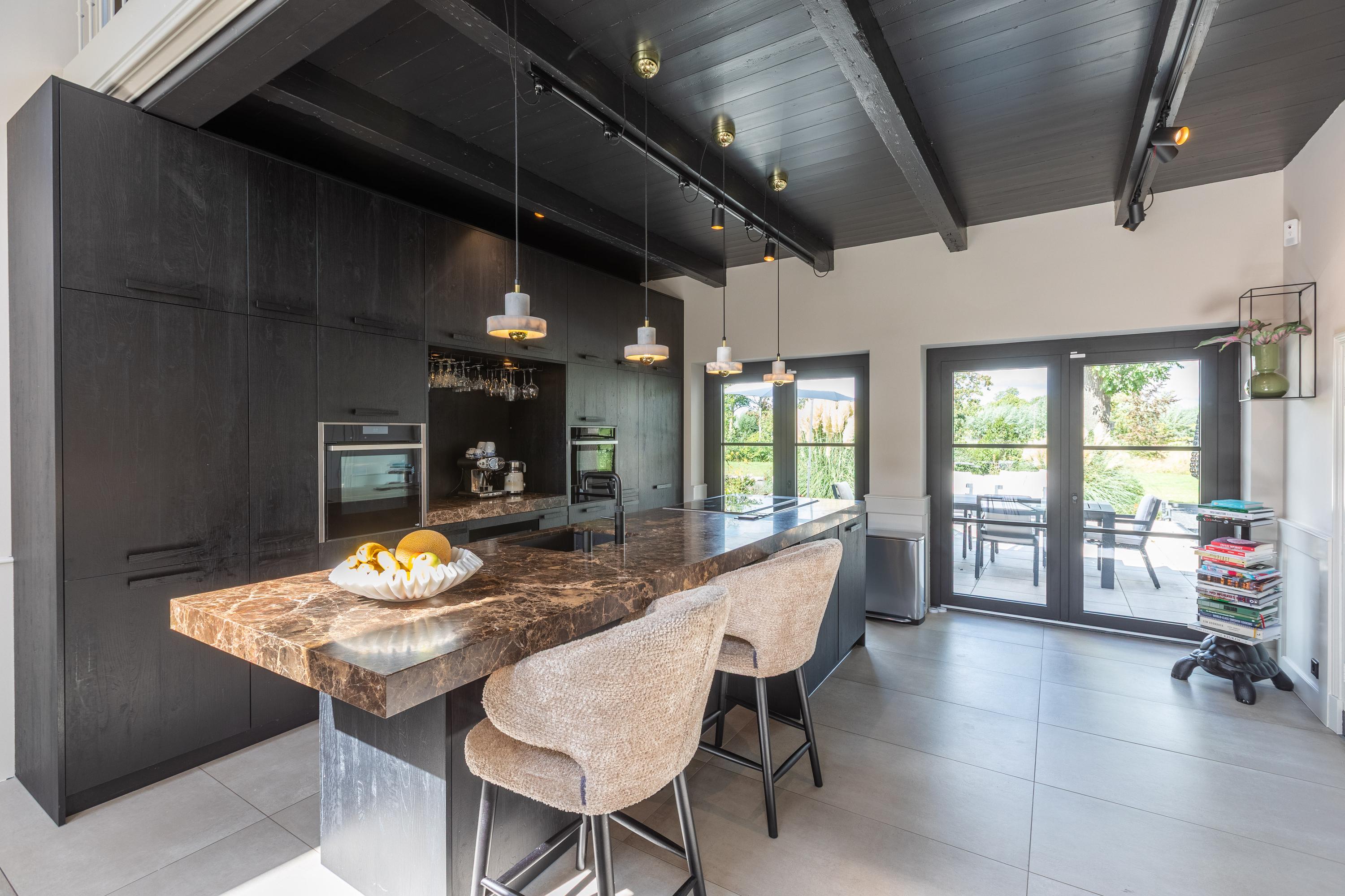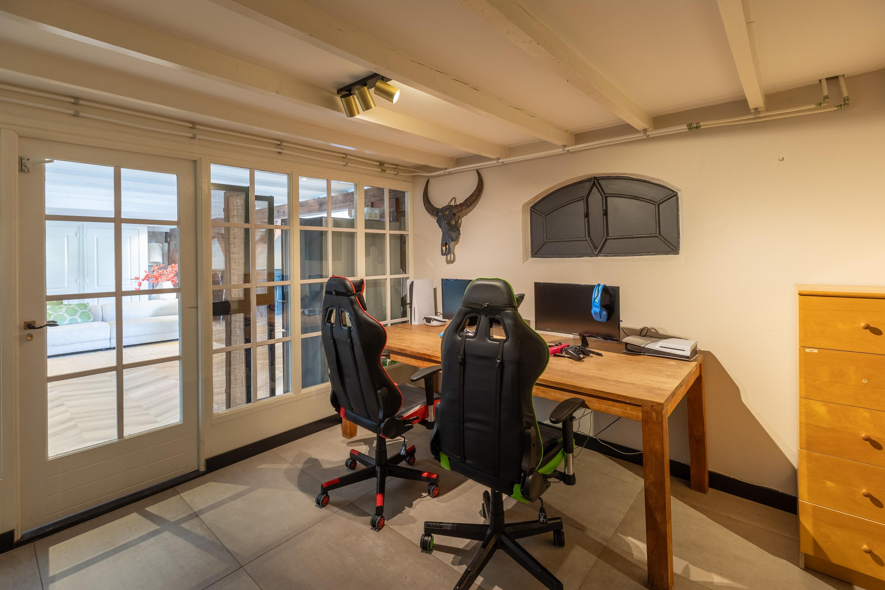 Al atravesar un portón eléctrico, el jardín revela céspedes en terrazas, borduras de plantas maduras y una zona de estar hundida, enmarcando vistas sobre los campos adyacentes de Midden-Delfland. La residencia principal ofrece amplios espacios, incluida una cocina sofisticada con isla de mármol y entresuelo, una serie de salones conectados con vigas auténticas y una sala de cine en la antigua quesería. La zona wellness invita al retiro con jacuzzi, saunas finlandesa e infrarroja, todo ello en una luminosa ampliación.