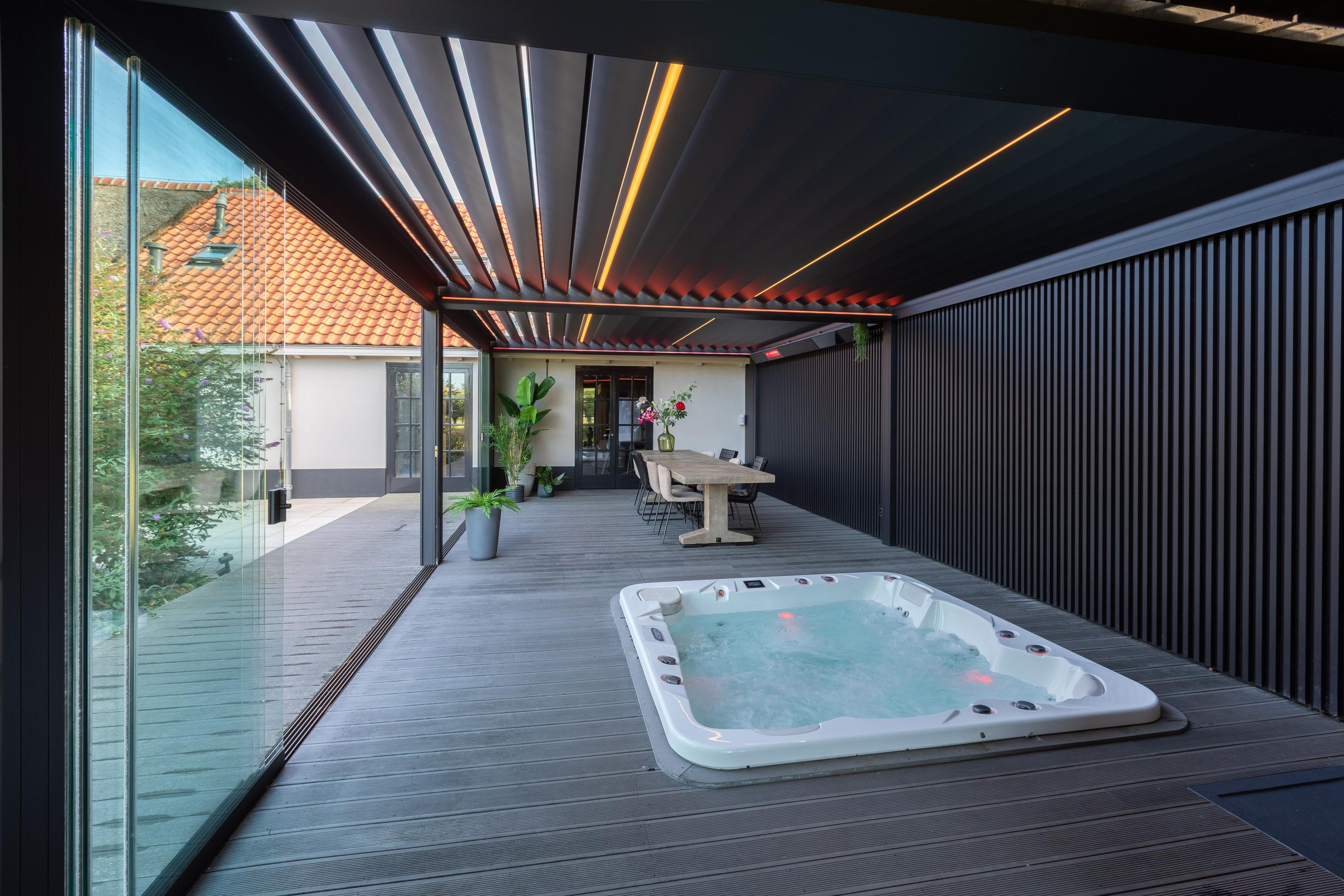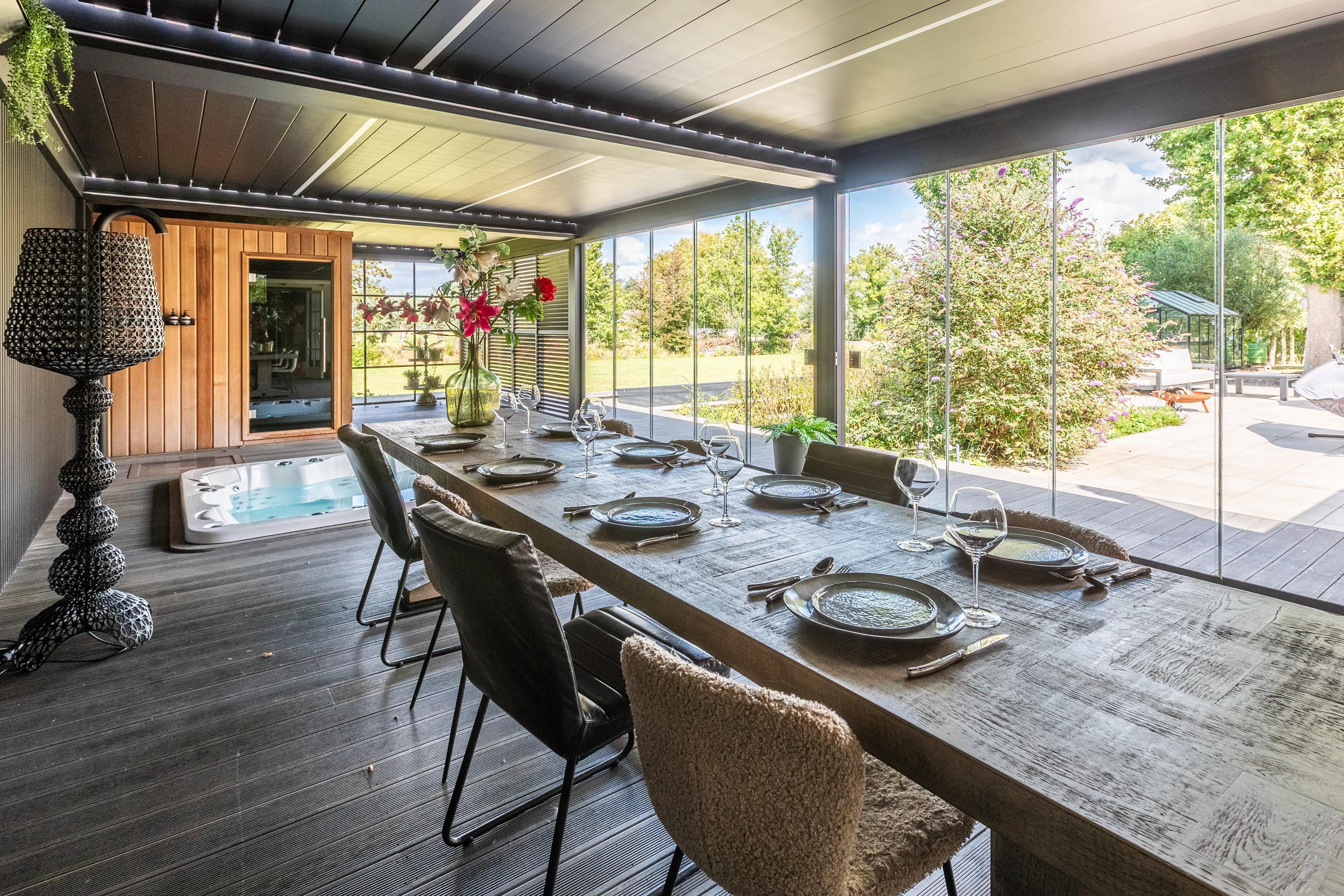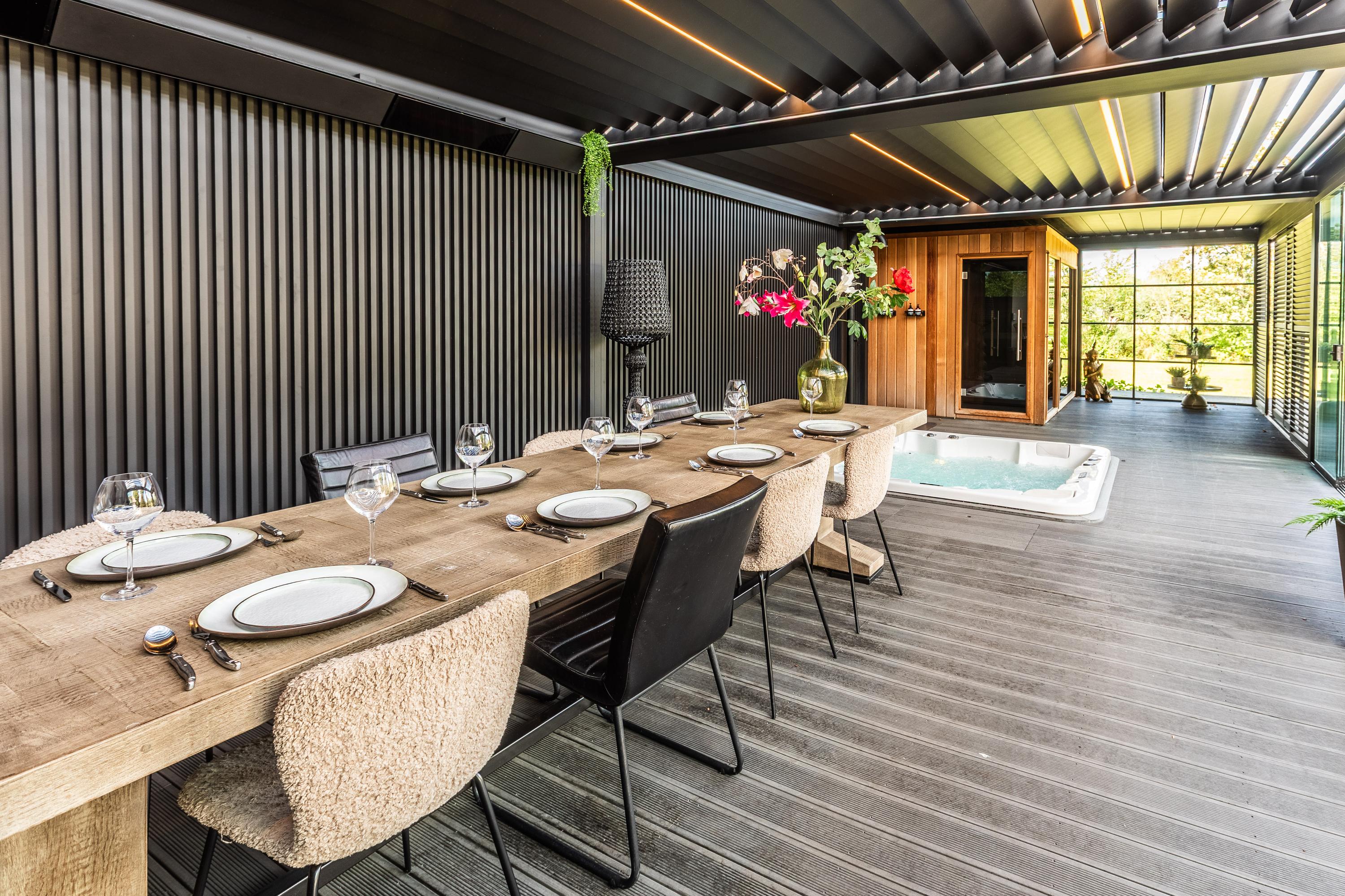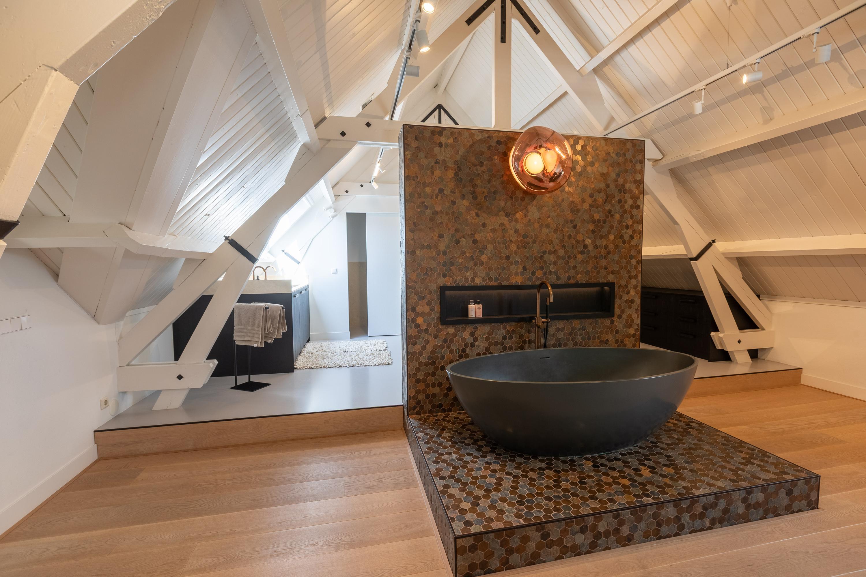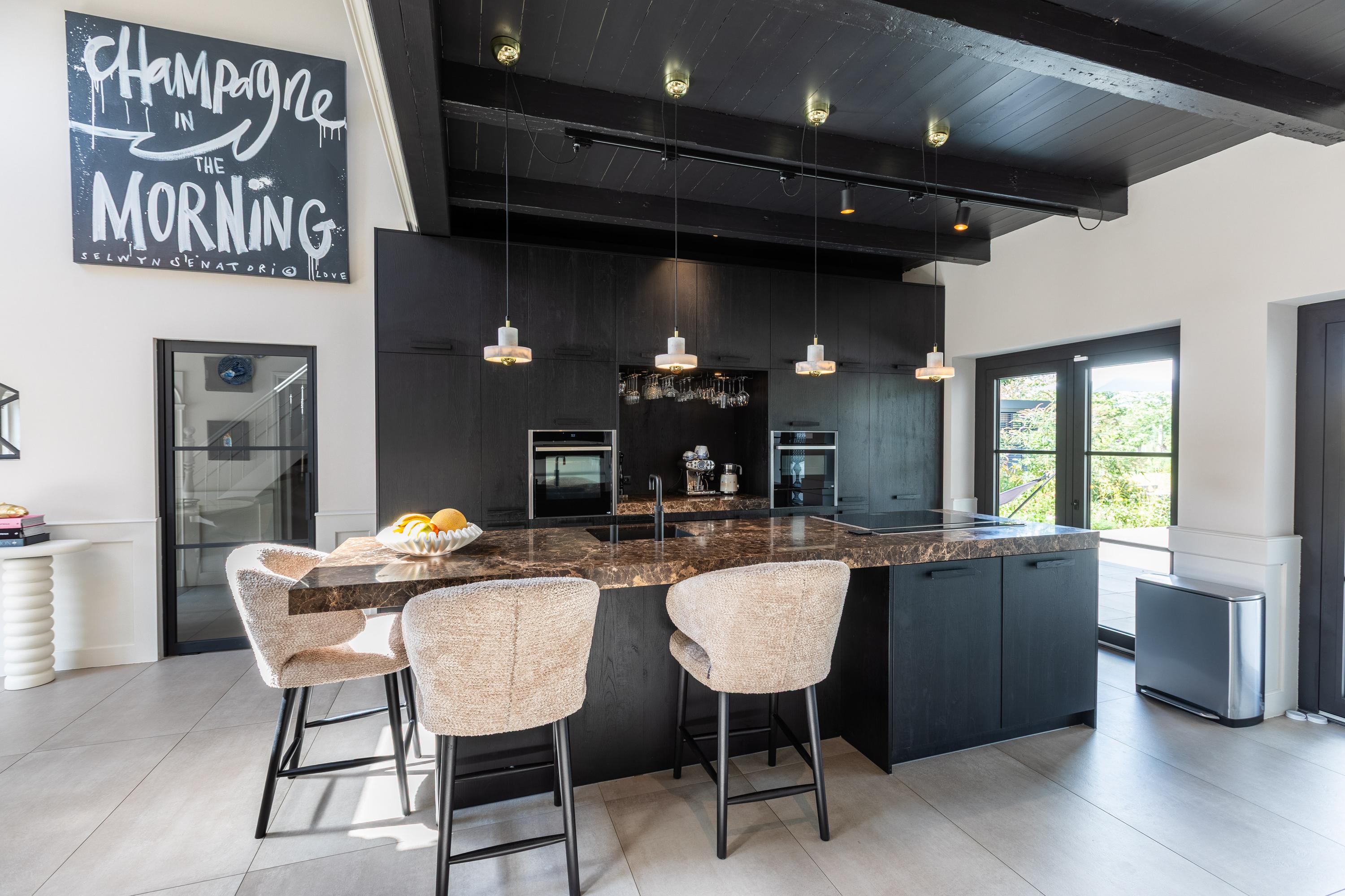 Al atravesar un portón eléctrico, el jardín revela céspedes en terrazas, borduras de plantas maduras y una zona de estar hundida, enmarcando vistas sobre los campos adyacentes de Midden-Delfland. La residencia principal ofrece amplios espacios, incluida una cocina sofisticada con isla de mármol y entresuelo, una serie de salones conectados con vigas auténticas y una sala de cine en la antigua quesería. La zona wellness invita al retiro con jacuzzi, saunas finlandesa e infrarroja, todo ello en una luminosa ampliación.