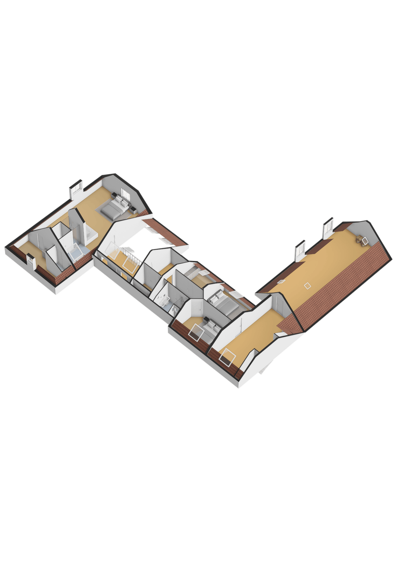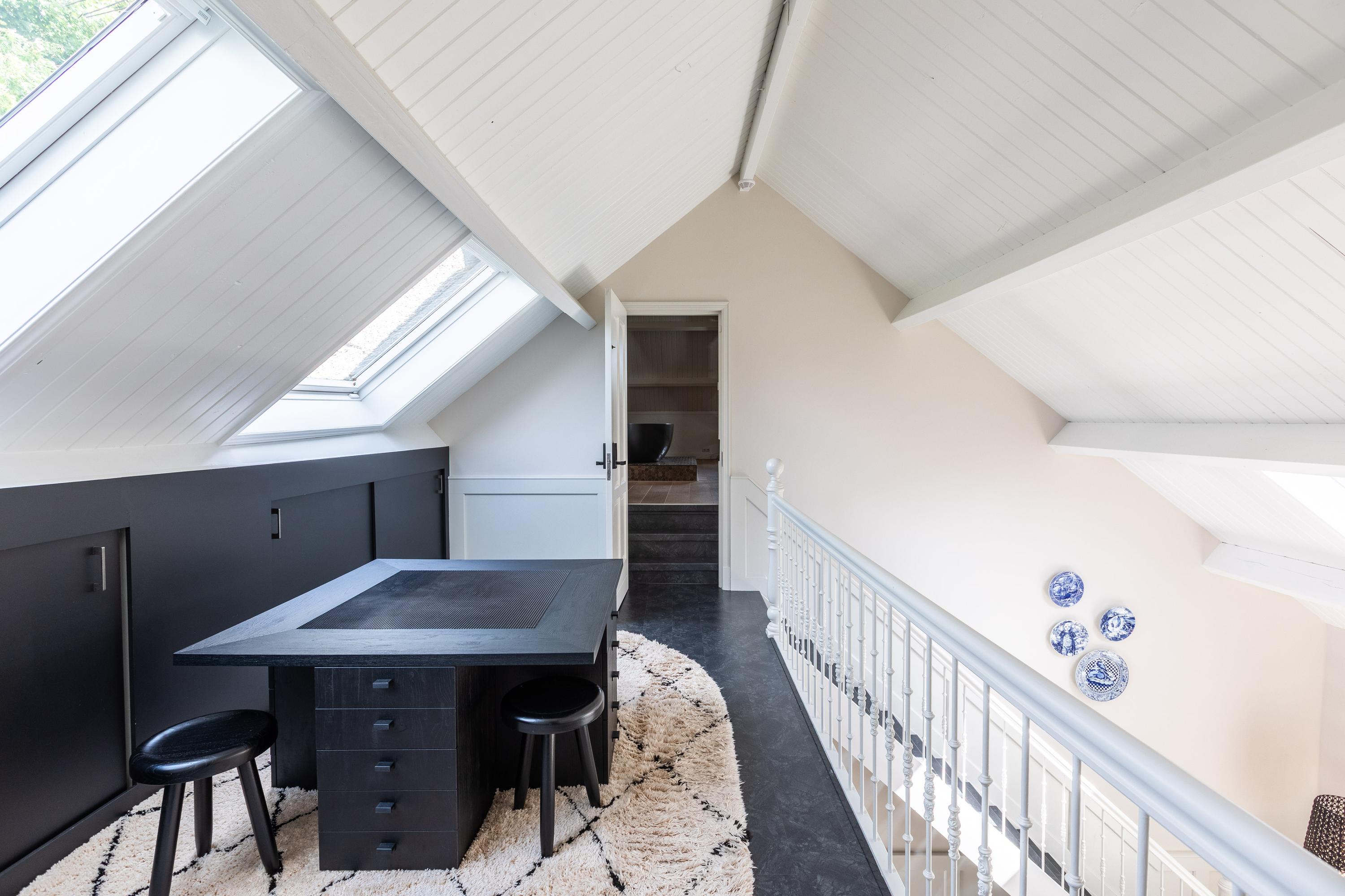 En la planta alta, la suite principal abarca 65 m² con vigas vistas, baño en suite de diseño contemporáneo y vestidor bajo lucernarios. Tres dormitorios adicionales, todos climatizados, están distribuidos cerca de un segundo baño moderno y un despacho independiente. Un ático polivalente, anteriormente parte del establo y el garaje, resulta ideal para alojar invitados o crear un estudio privado. El garaje triple, gimnasio y espacio de establo multifuncional subrayan la versatilidad de esta propiedad.