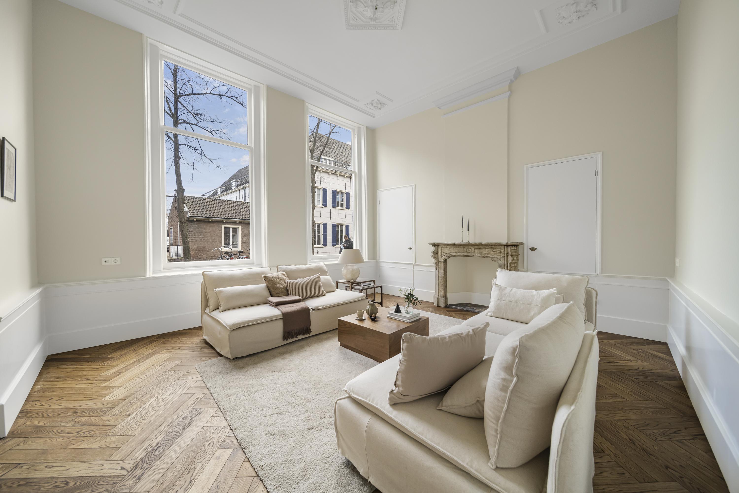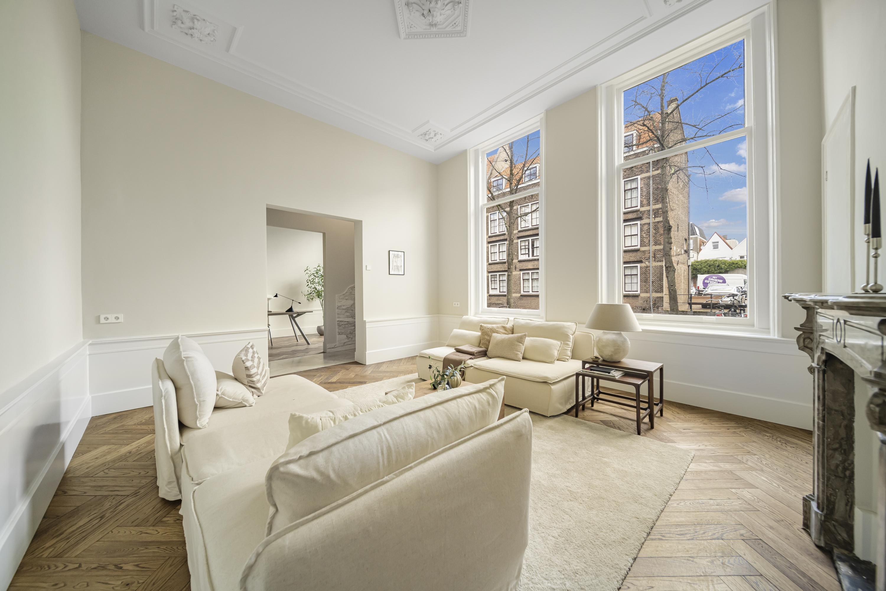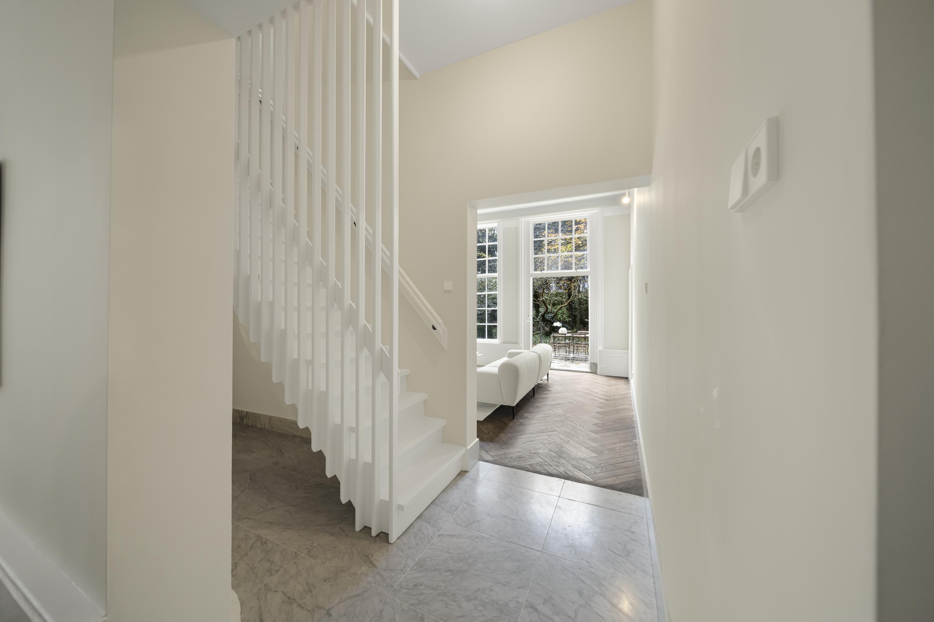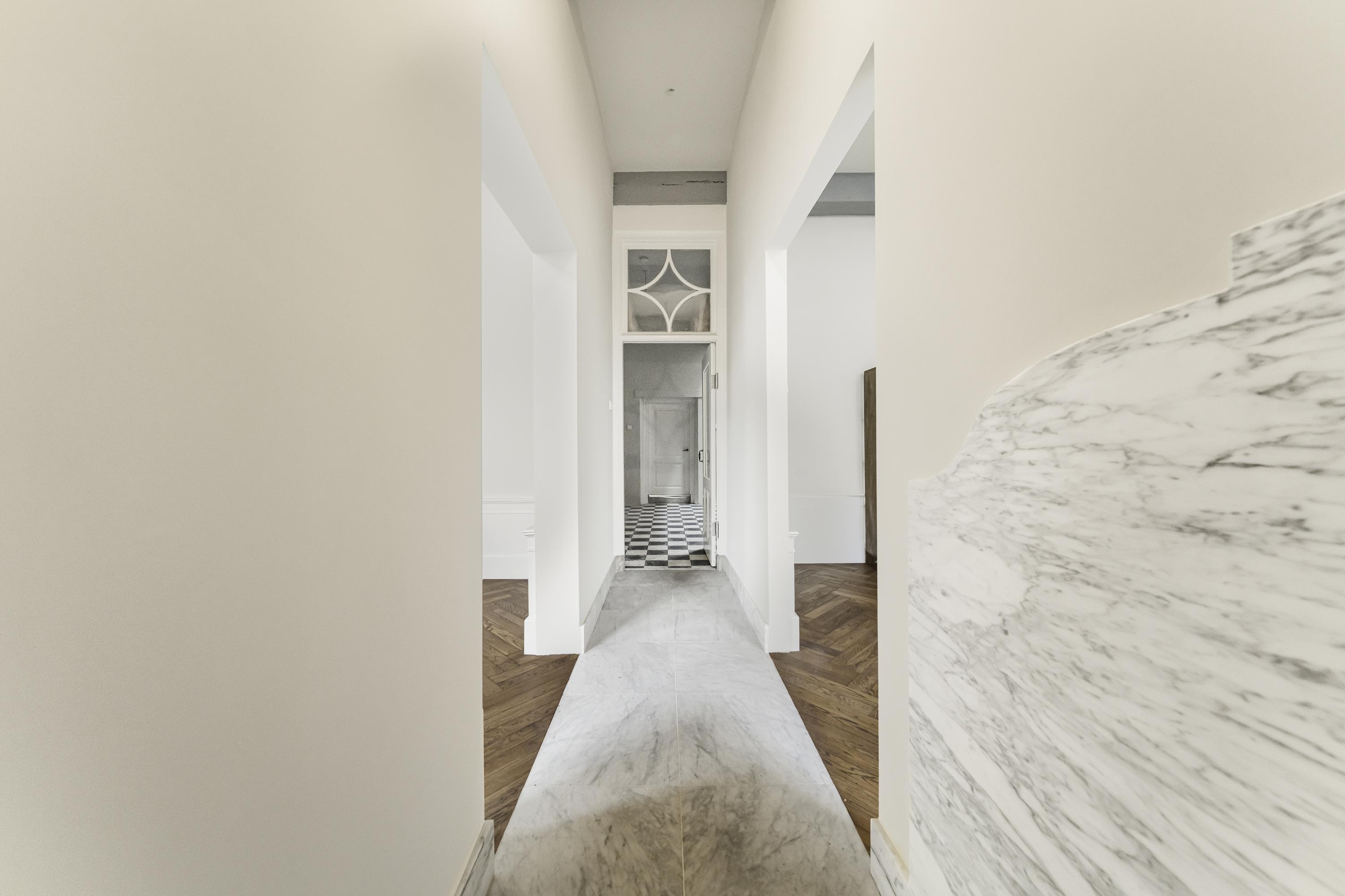 La disposición se extiende a lo largo de cuatro plantas. La planta baja presenta recibidores refinados con suelos de mármol en blanco y negro, espacios habitables y de trabajo flexibles, una luminosa sala de jardín y acceso a un jardín urbano privado en forma de L orientado al suroeste—un oasis poco común en el centro histórico de Delft. Seis dormitorios y cuatro baños distribuidos en las plantas superiores reciben abundante luz natural, además de contar con un altillo y una inspiradora estructura de techo.