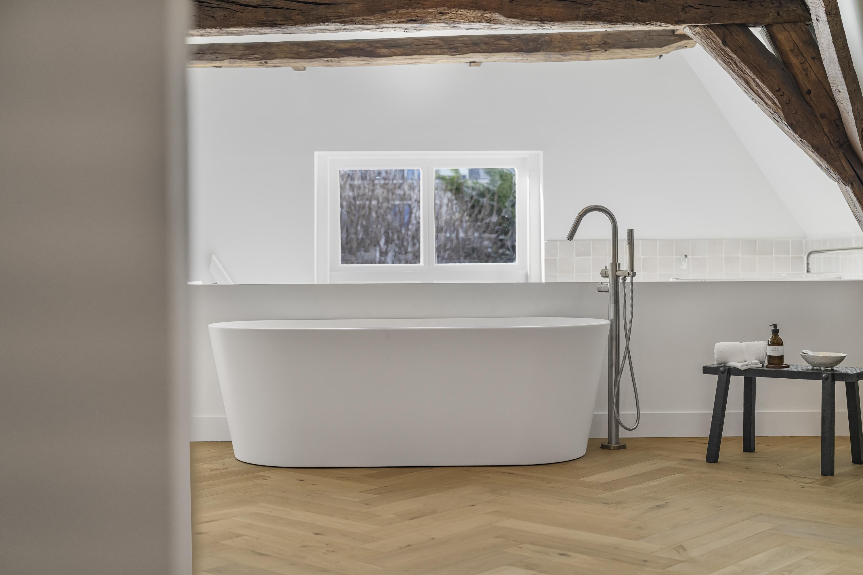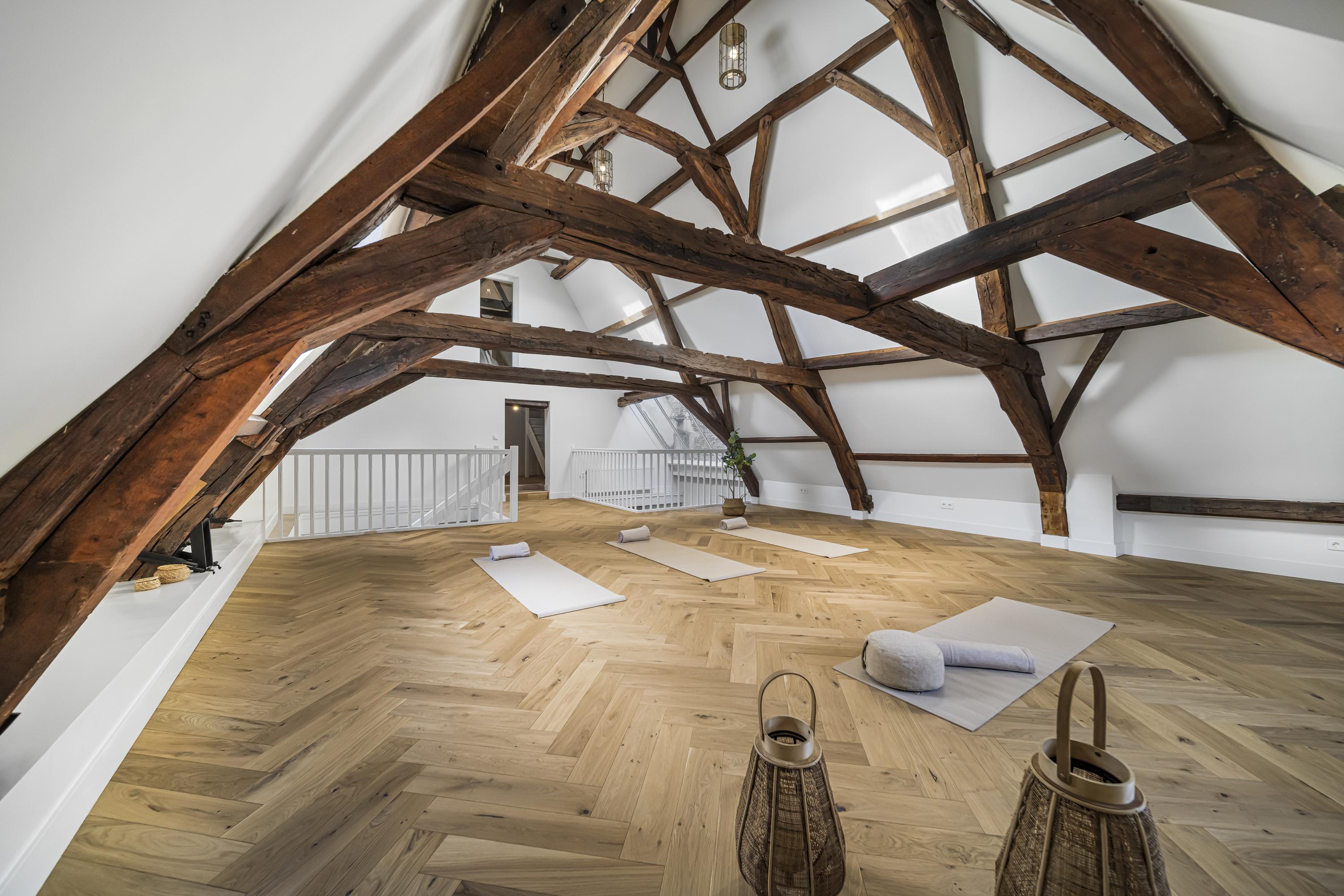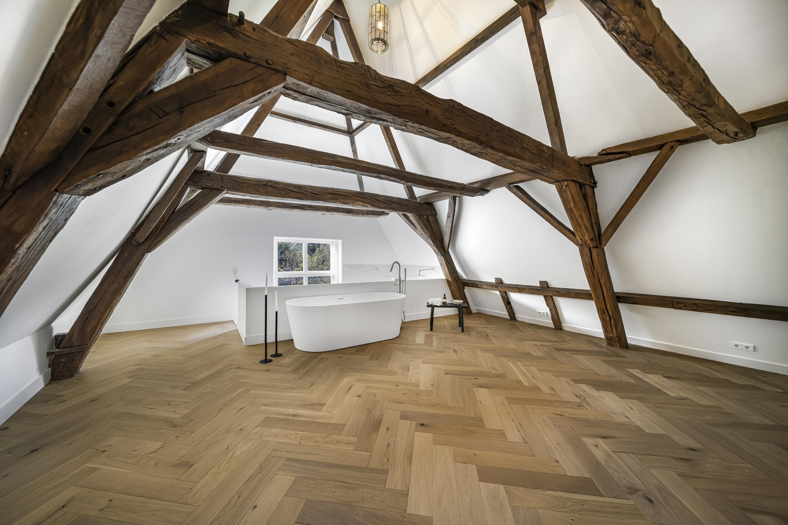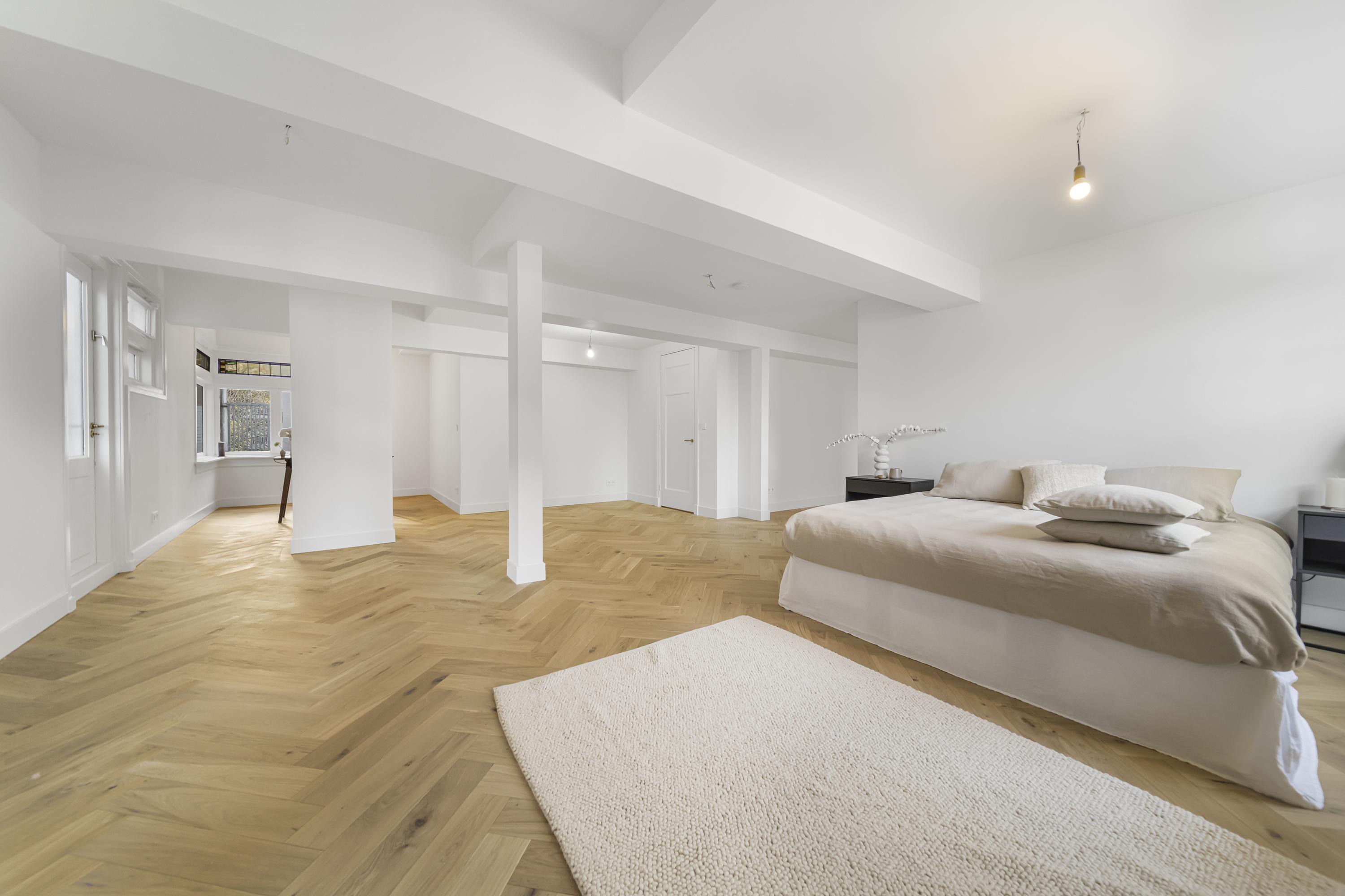 La disposición se extiende a lo largo de cuatro plantas. La planta baja presenta recibidores refinados con suelos de mármol en blanco y negro, espacios habitables y de trabajo flexibles, una luminosa sala de jardín y acceso a un jardín urbano privado en forma de L orientado al suroeste—un oasis poco común en el centro histórico de Delft. Seis dormitorios y cuatro baños distribuidos en las plantas superiores reciben abundante luz natural, además de contar con un altillo y una inspiradora estructura de techo.