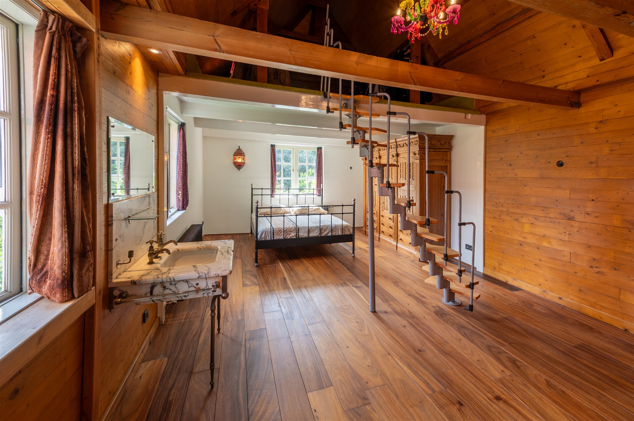 Cinco dormitorios se distribuyen en las plantas superiores, incluyendo una suite en entreplanta con baño de mármol, zona de bienestar con sauna y una luminosa buhardilla de uso flexible, todas beneficiadas por la orientación sur y la tranquilidad preservada de la propiedad. Con etiqueta energética B, avanzada seguridad y equipamiento técnico, esta casa de canal se presenta como una fusión poco habitual entre legado y lujo sostenible en el vibrante centro de Delft.