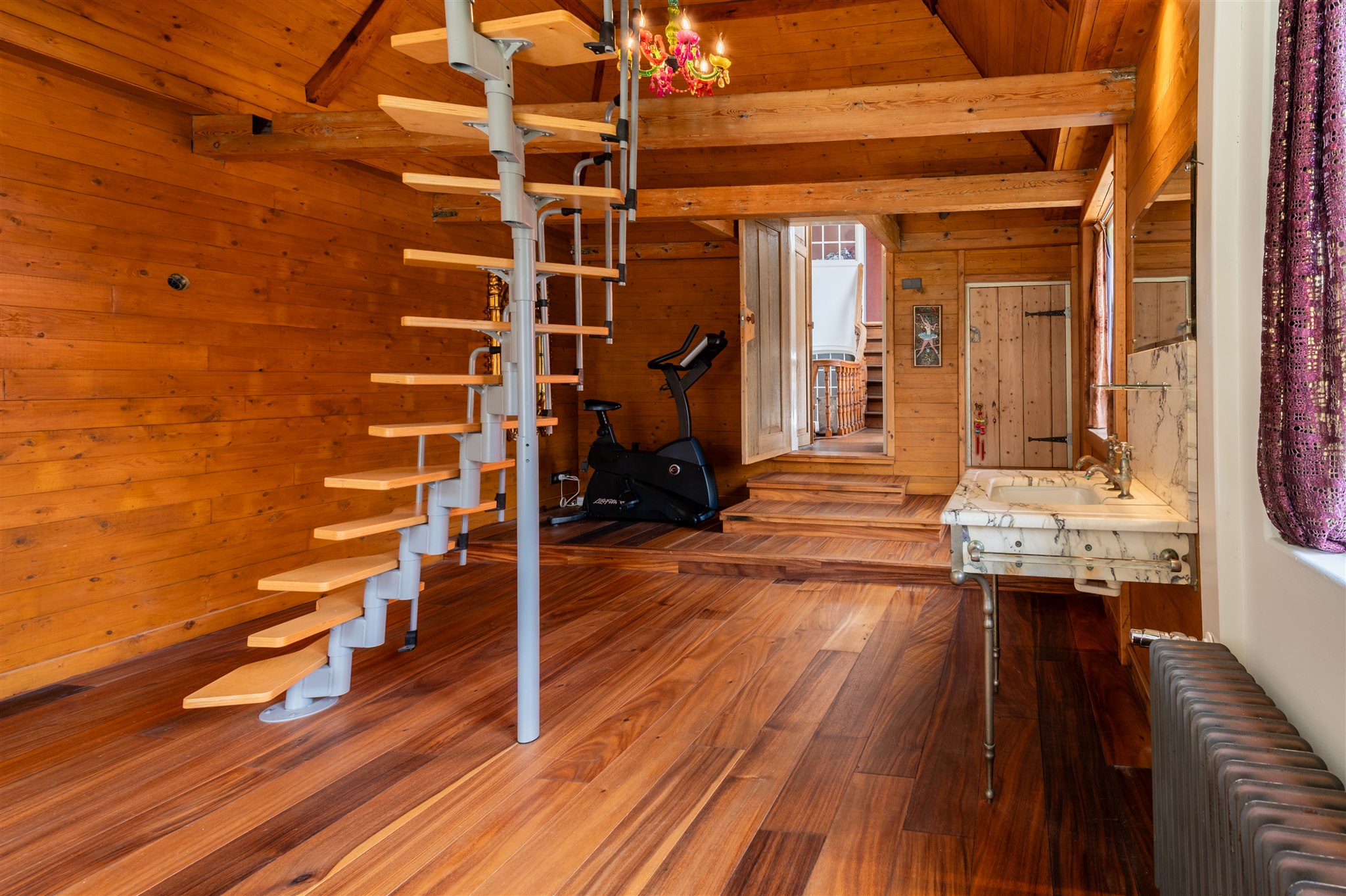 Una reciente restauración preservó meticulosamente los detalles de época, incorporando materiales naturales, acabados orgánicos e innovaciones sostenibles como sistemas de bomba de calor y paneles solares. El resultado es una vivienda distintiva, con texturas táctiles y un clima interior excepcional, realzada por techos altos y elementos decorativos originales.