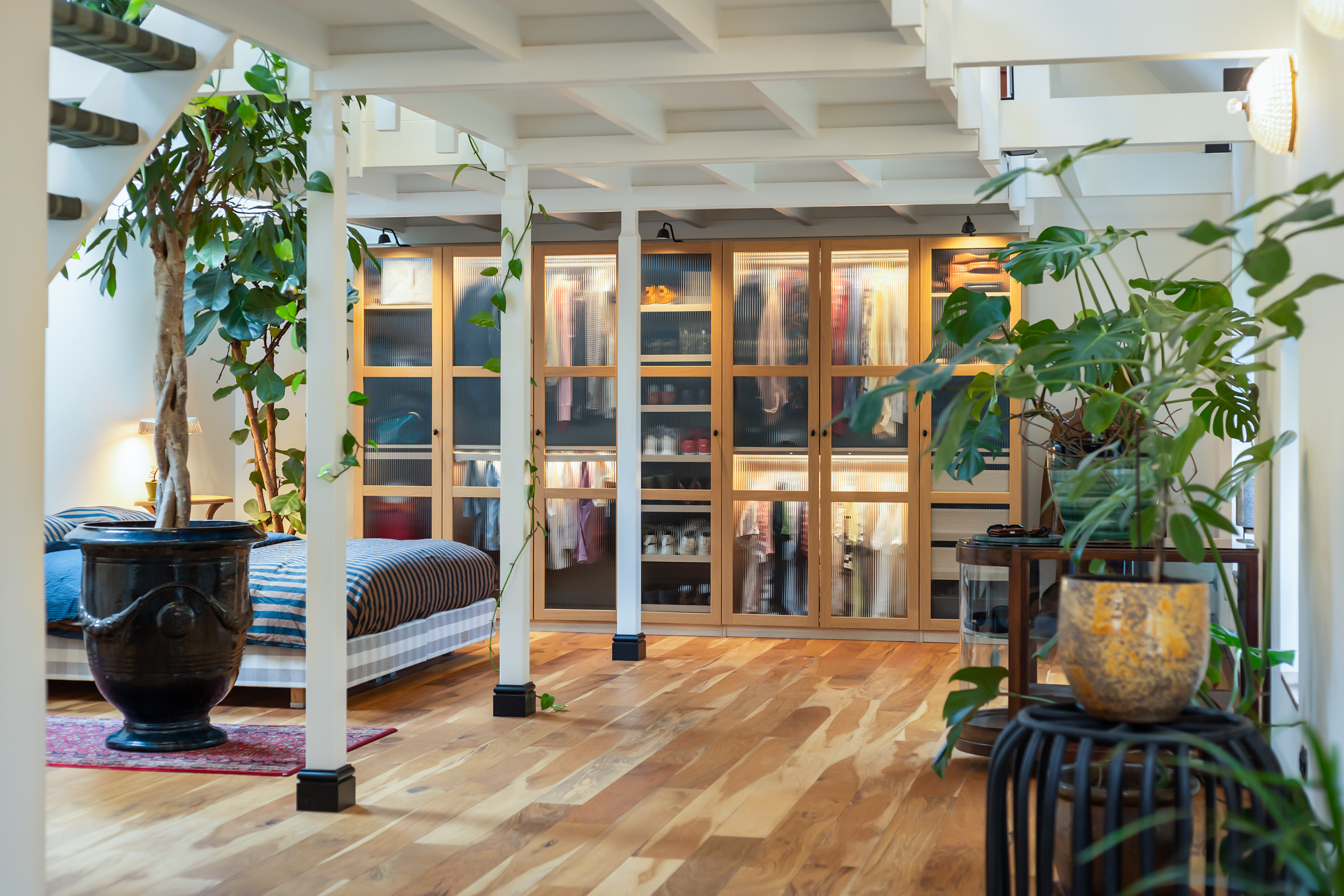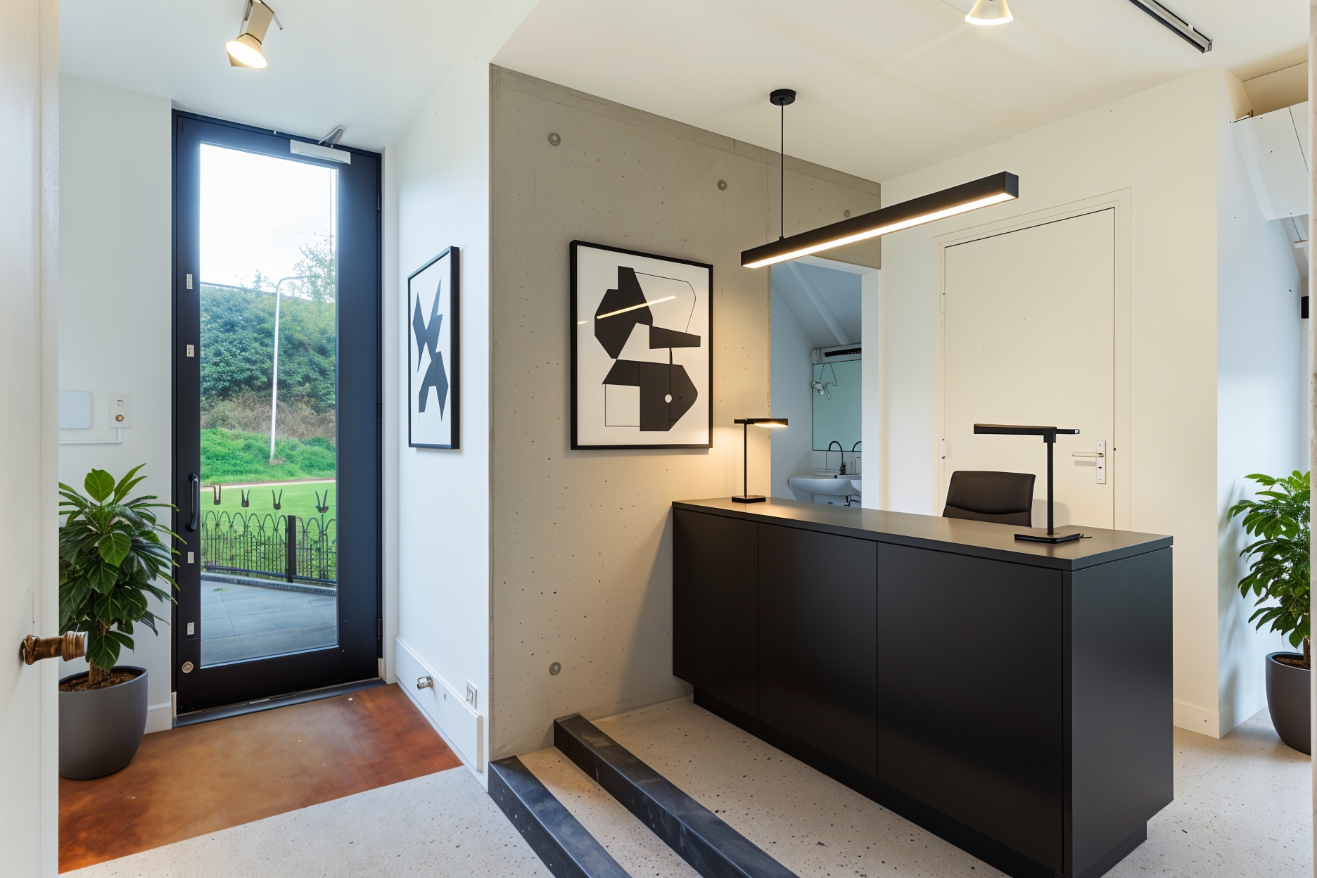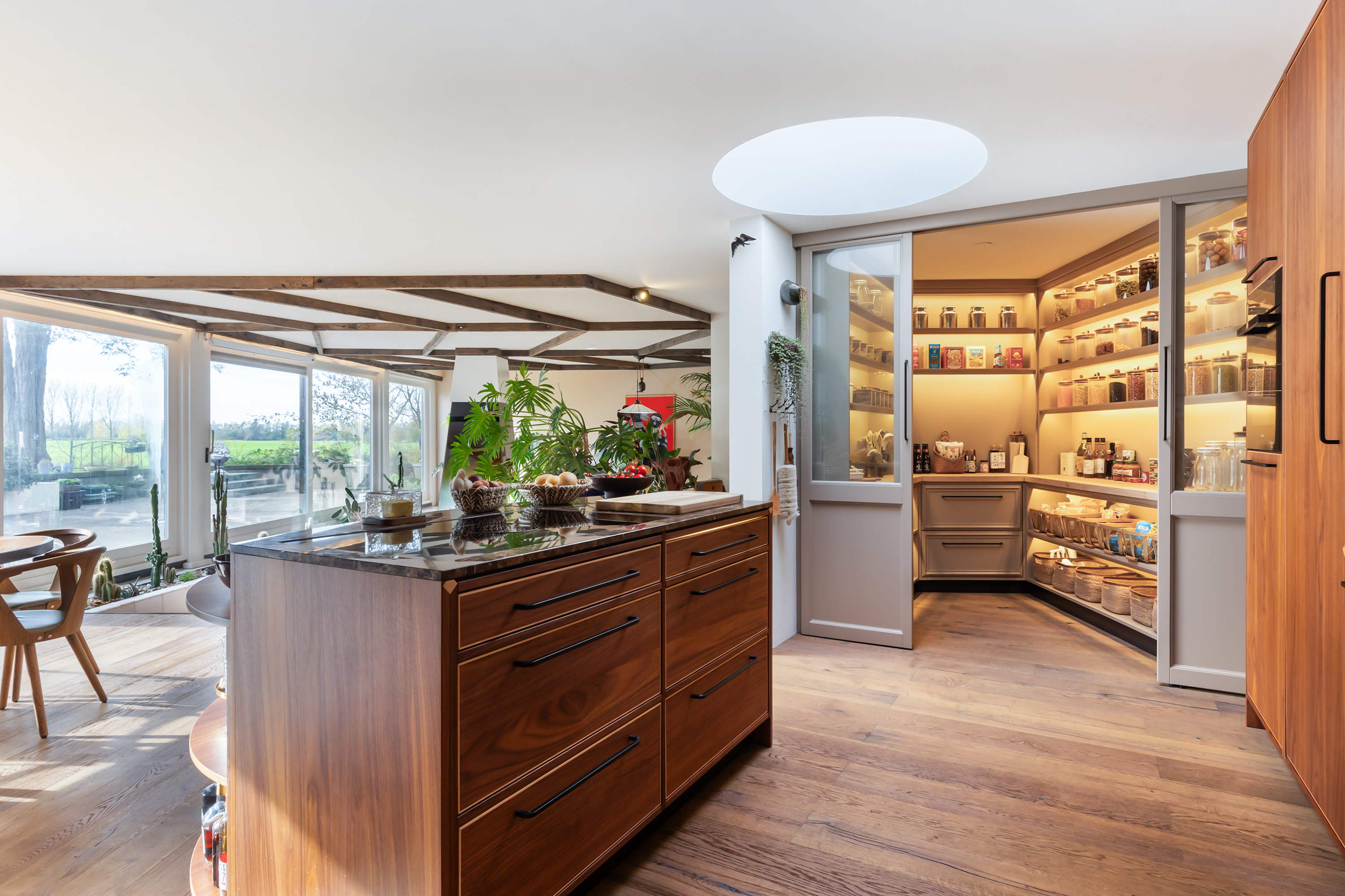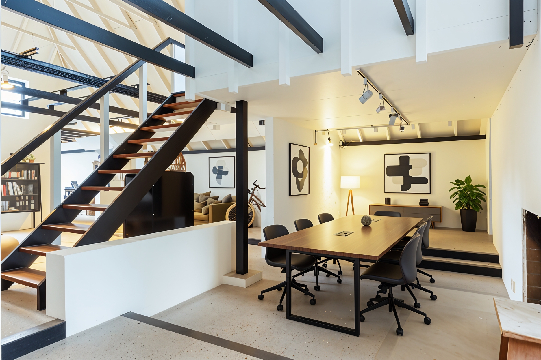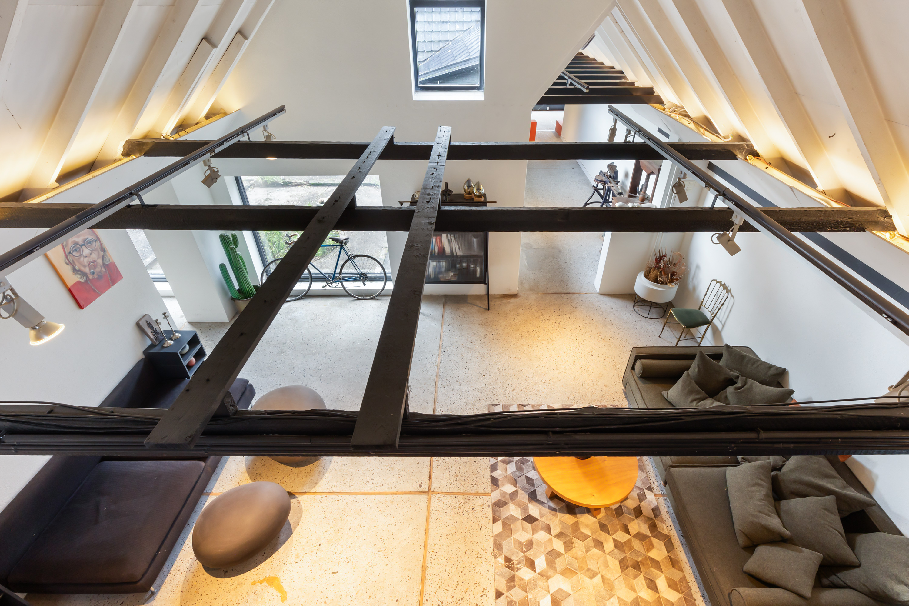 El espacio comercial adyacente ofrece aún más posibilidades para atelier, showroom o alojamiento para invitados, con vigas de madera negra y amplios ventanales que exhiben su artesanía y presencia. En el exterior, el jardín se funde con la naturaleza agrícola e incluye un pabellón, una terraza flotante y una plataforma privada, generando un refugio de intimidad. Árboles maduros y un diseño paisajístico pensado completan la sensación de serenidad.