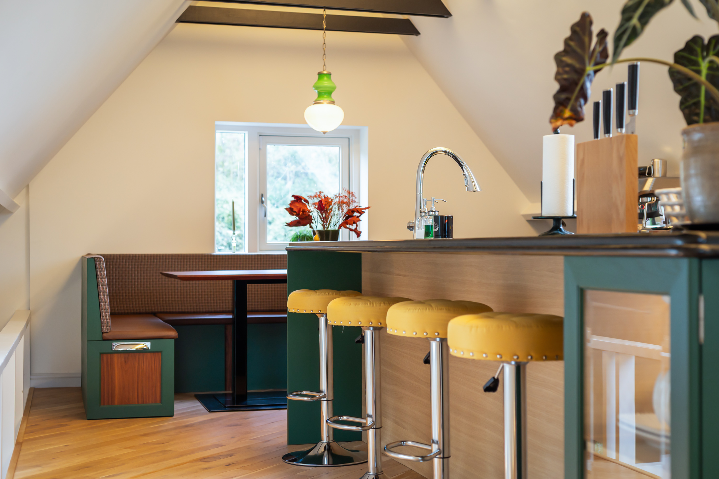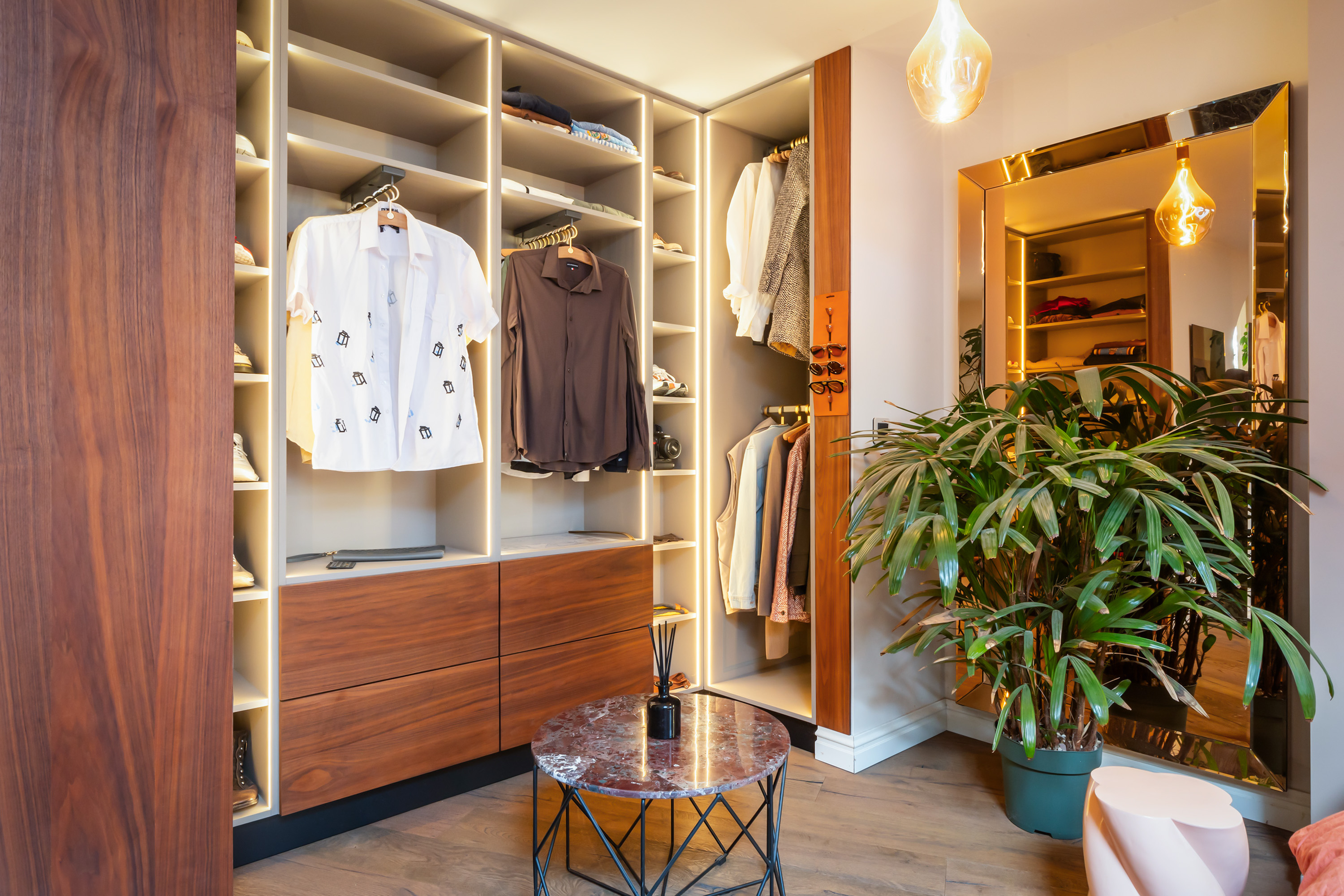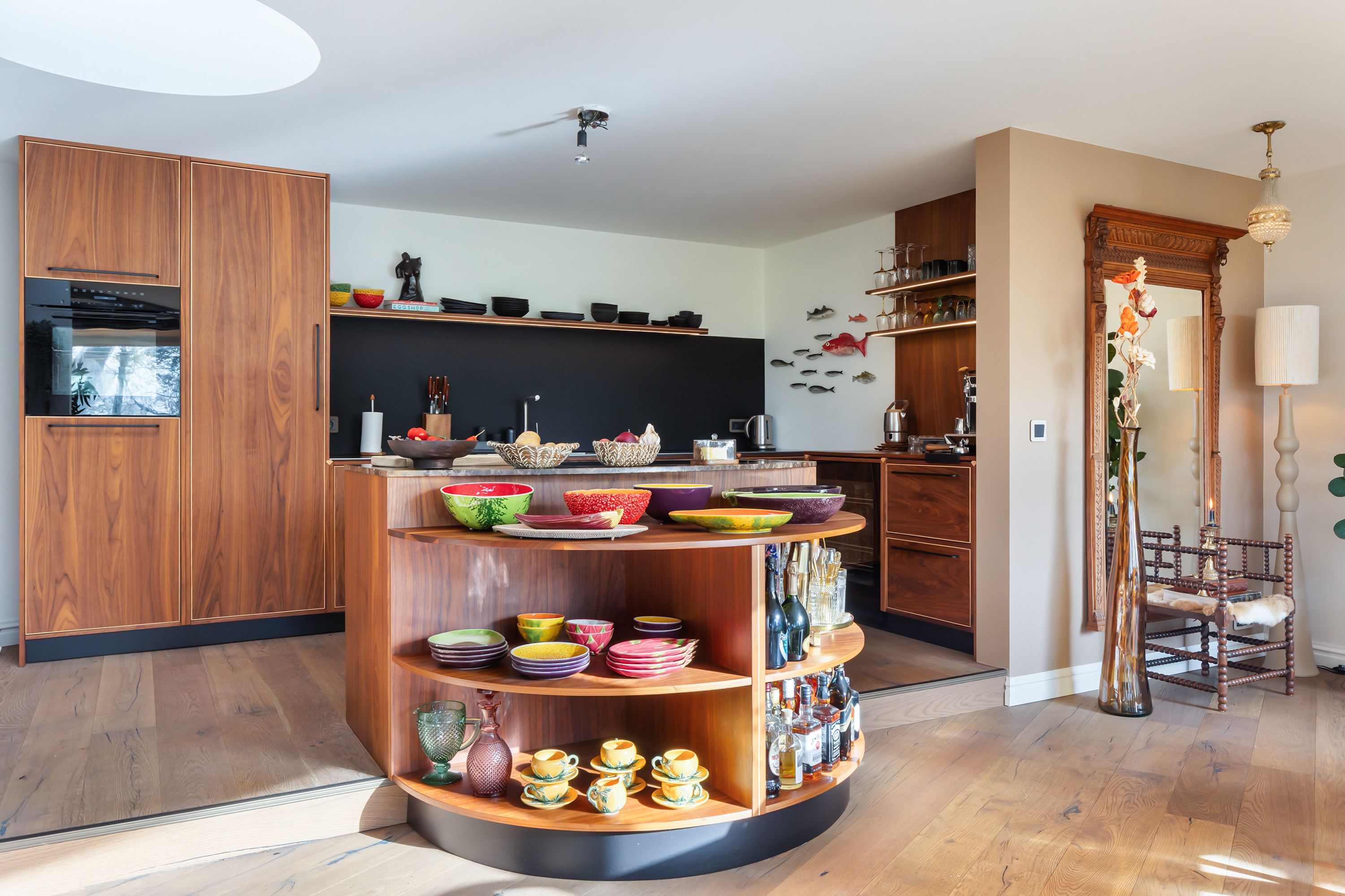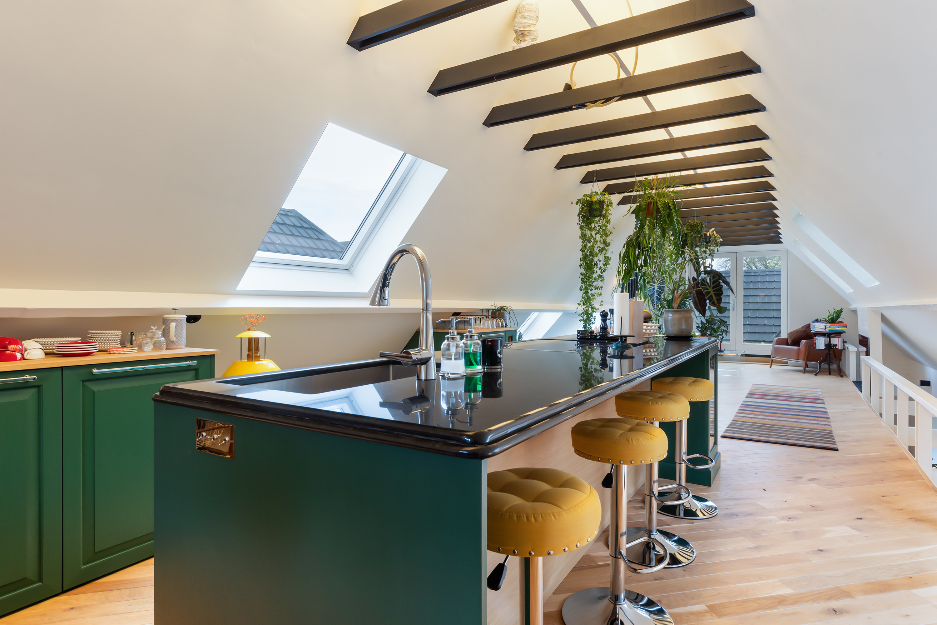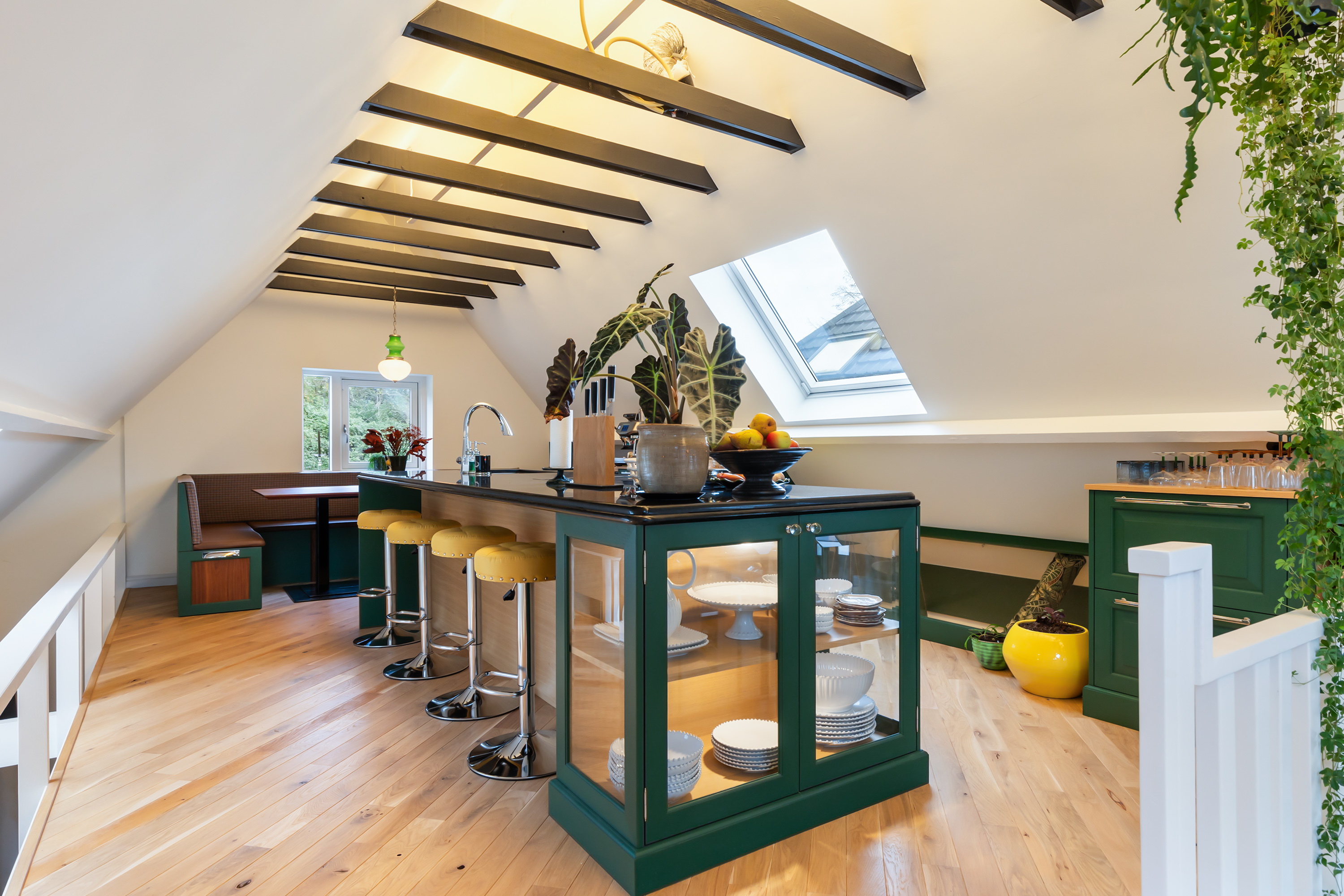 El espacio comercial adyacente ofrece aún más posibilidades para atelier, showroom o alojamiento para invitados, con vigas de madera negra y amplios ventanales que exhiben su artesanía y presencia. En el exterior, el jardín se funde con la naturaleza agrícola e incluye un pabellón, una terraza flotante y una plataforma privada, generando un refugio de intimidad. Árboles maduros y un diseño paisajístico pensado completan la sensación de serenidad.